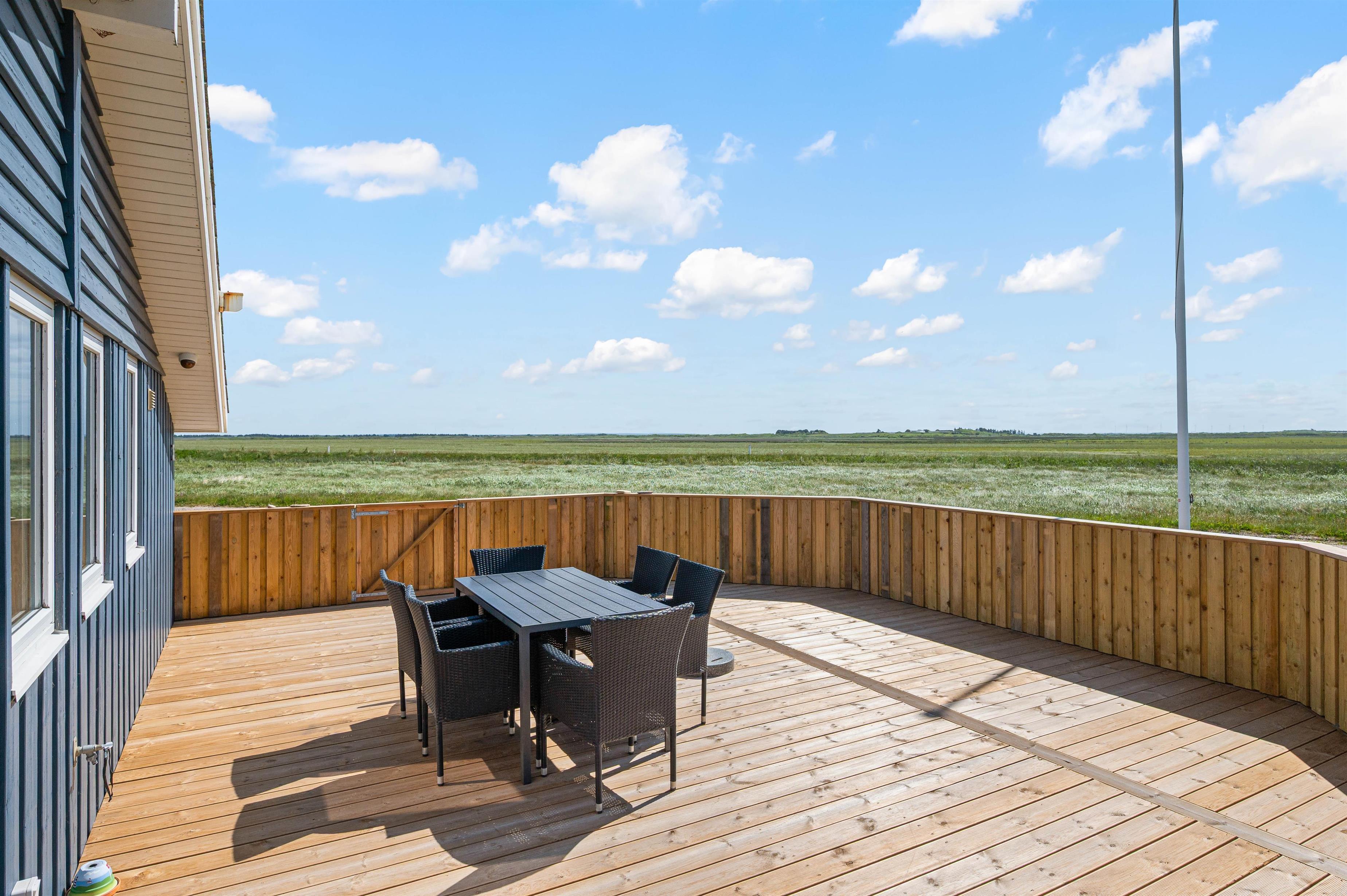 Omkring feriehuset finder I flere gode terrasser, så I har gode muligheder for at finde en plads i både sol og læ. Der er også vildmarksbad, som I kan sidde og slappe af i og lade tankerne flyve. På begge af feriehusets terrasser kan I høre lyden af vesterhavets brusen som baggrundslyd, hvilket er en baggrundslyd som er en fryd for sjælen. En af terrasserne er endda overdækket og afskærmet – helt perfekt til hyggelige grillaftener. I depotrummet finder I et ekstra køleskab.