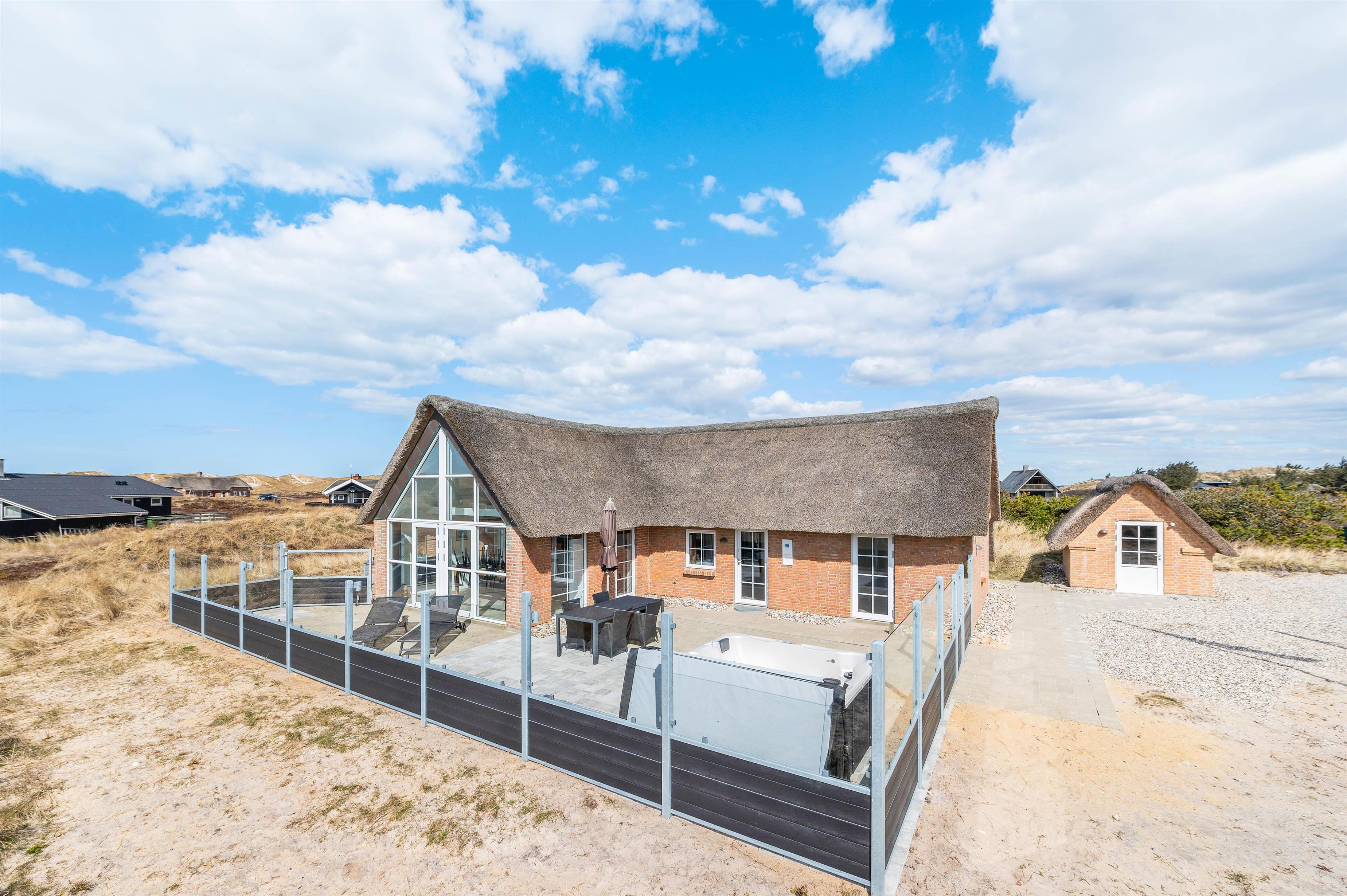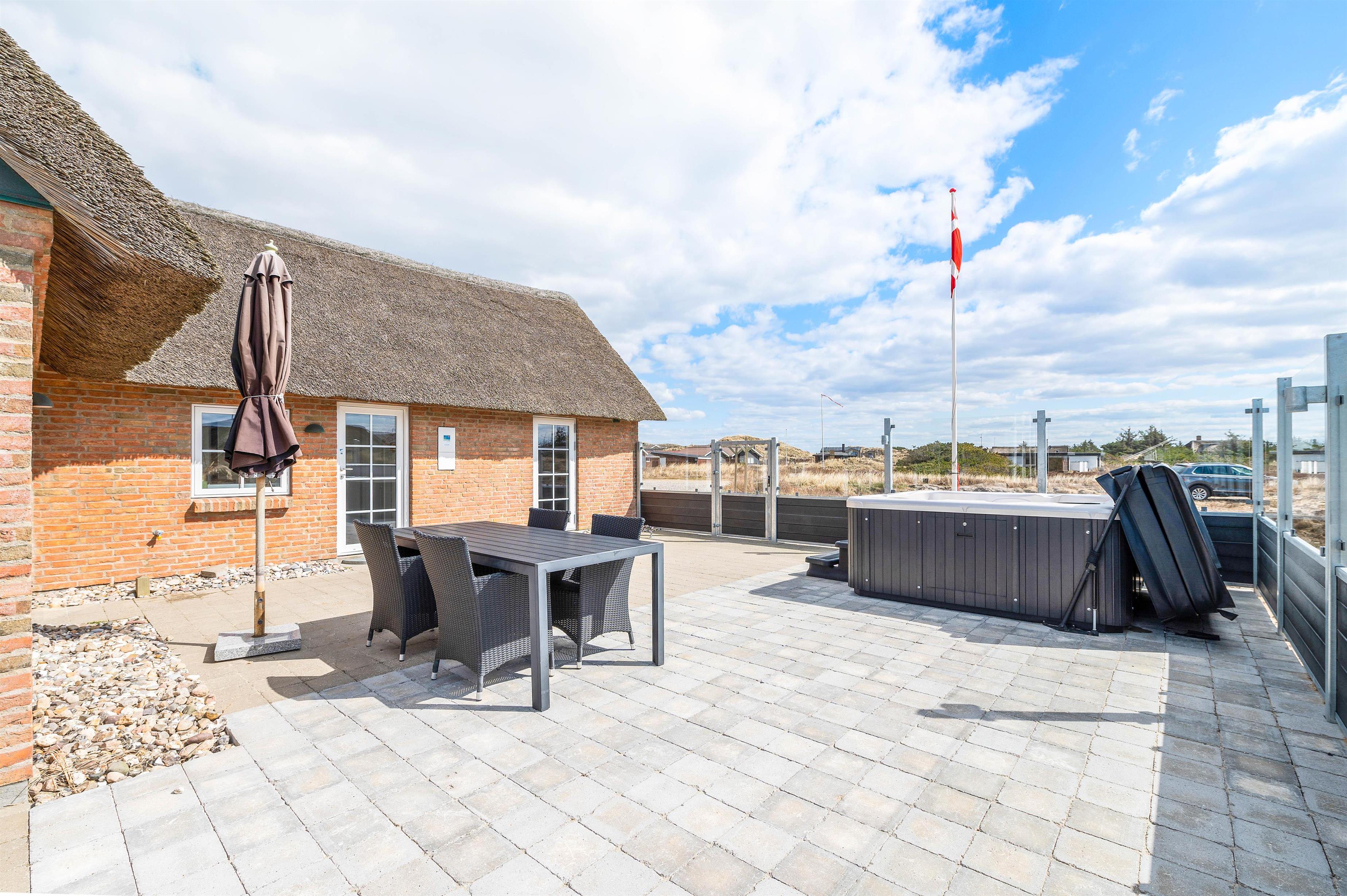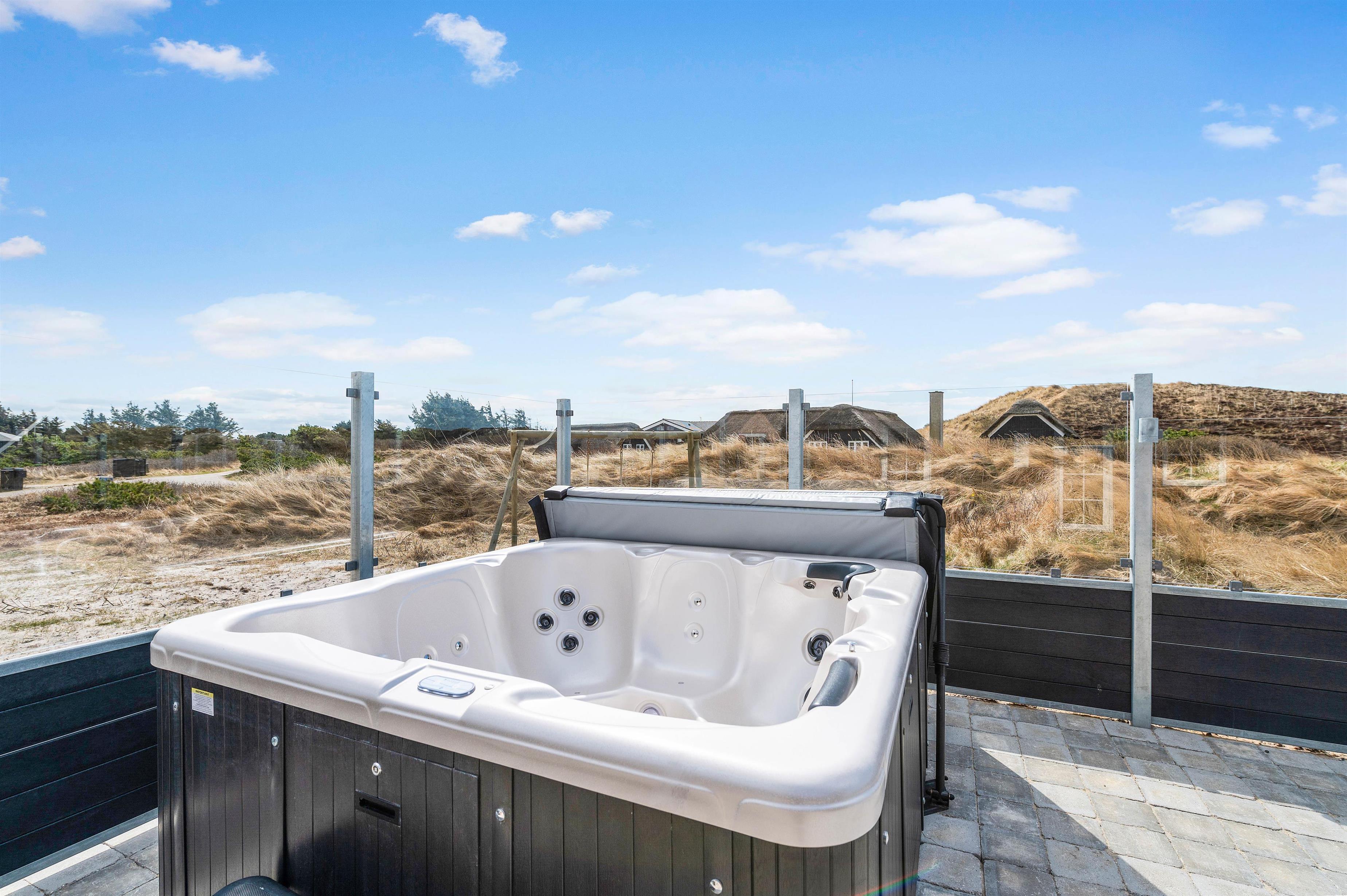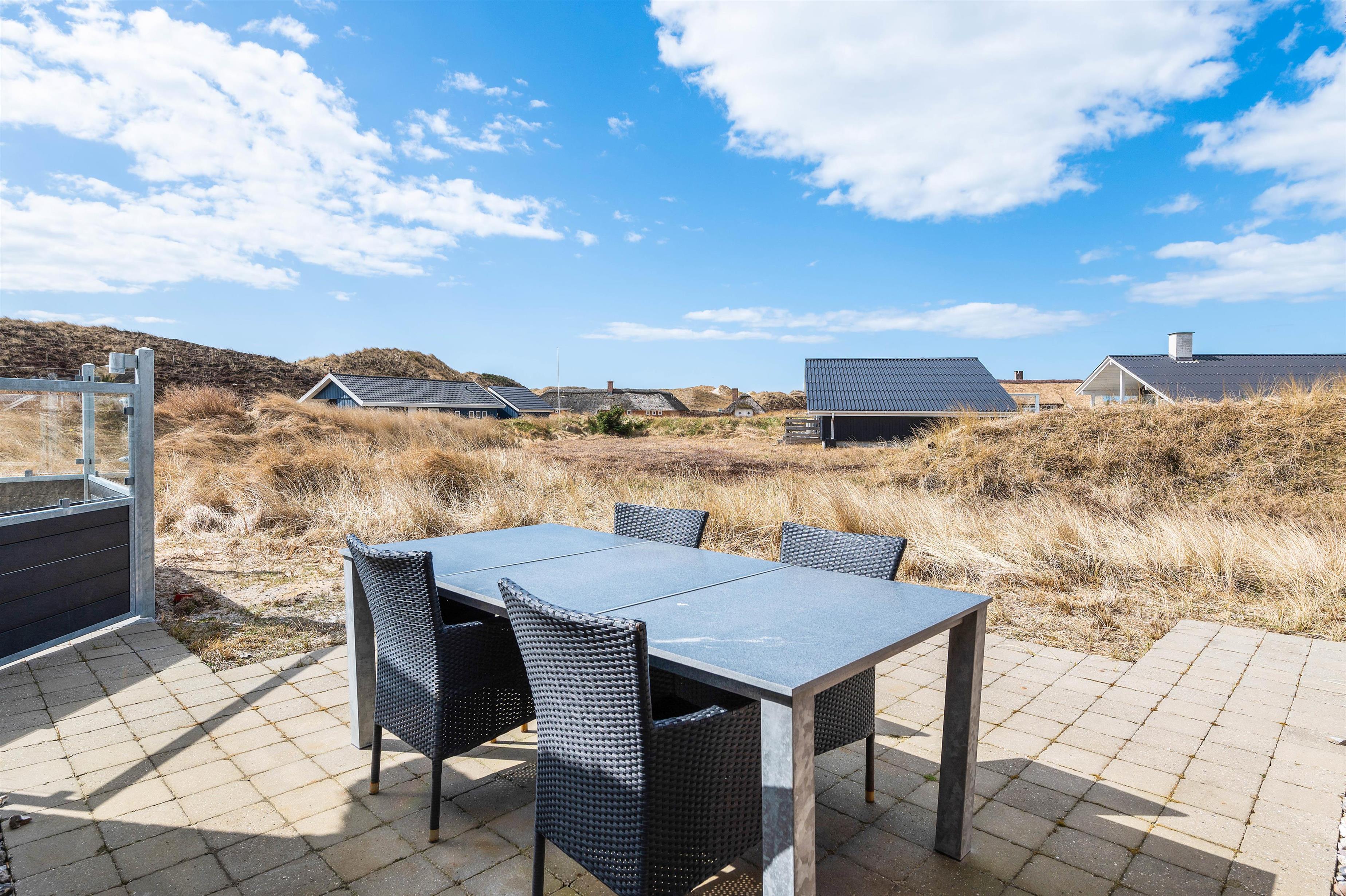 Sommerhuset har en skøn, stor terrasse, hvor I kan finde jer godt til rette i havemøbler og liggestole på de solrige feriedage. På terrassen står der også en lækker udespa, som I kan læne jer godt tilbage i og slappe af under åben himmel med lyden af brændingen i baggrunden. Fra terrassen har I også en skøn udsigt over klitlandskabet.