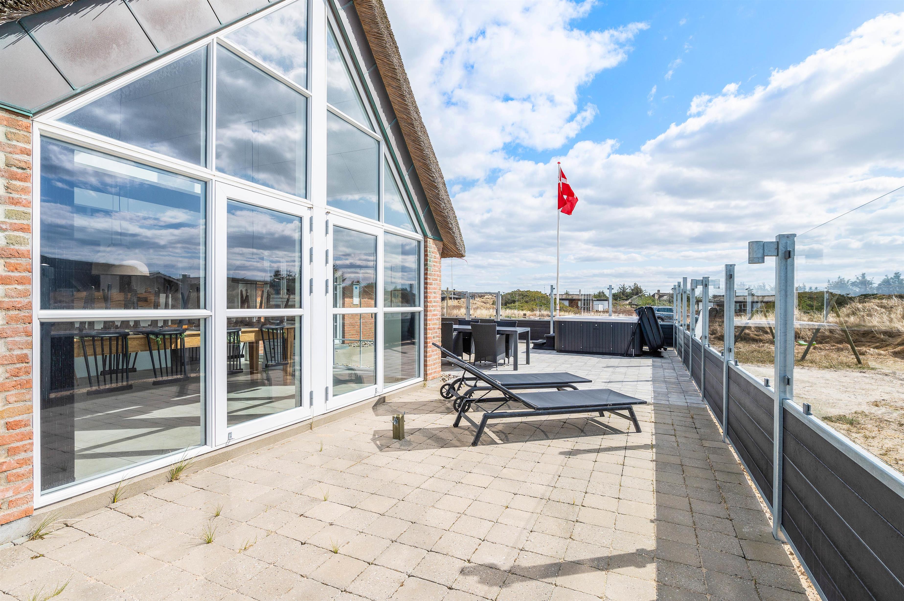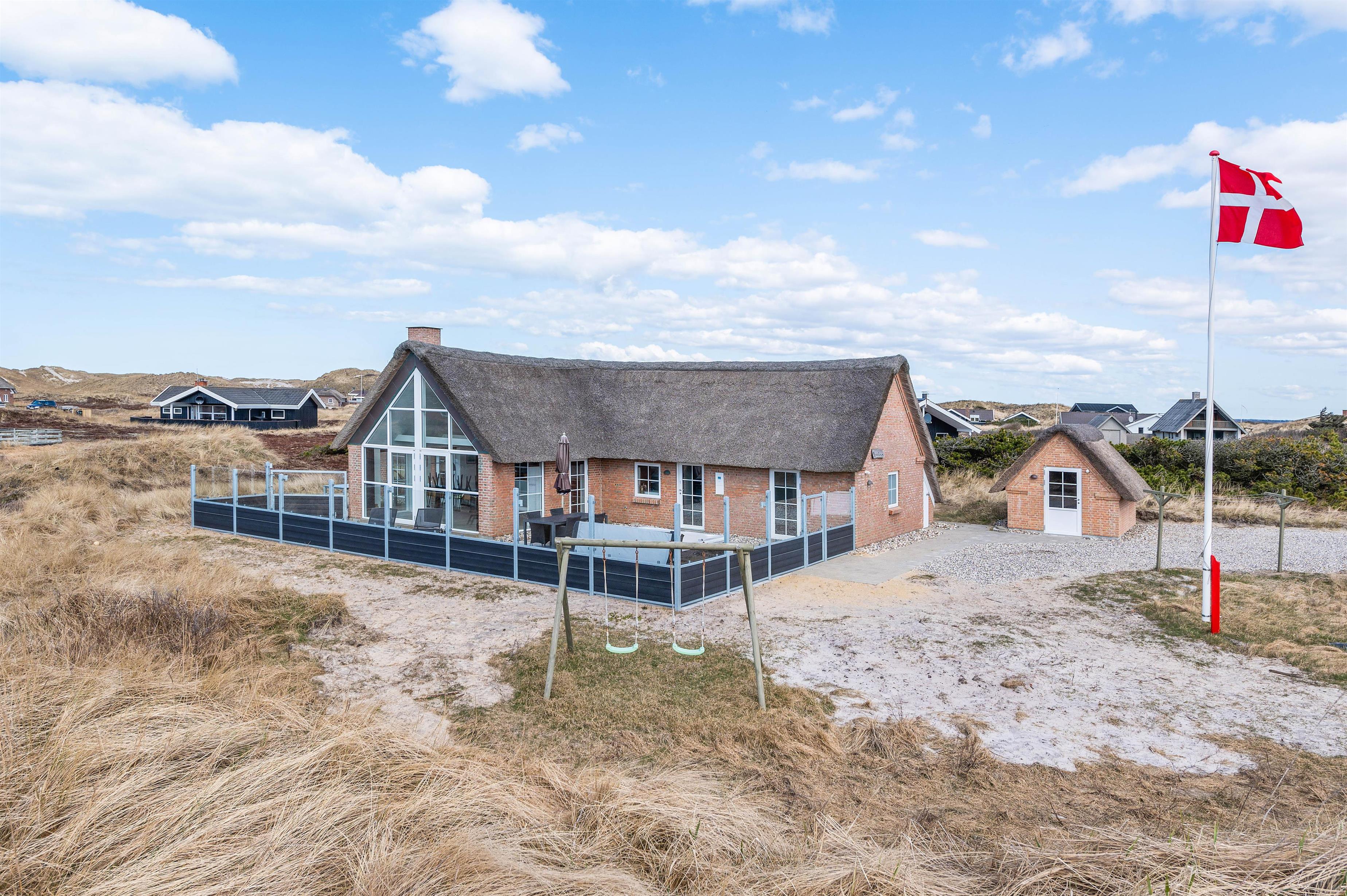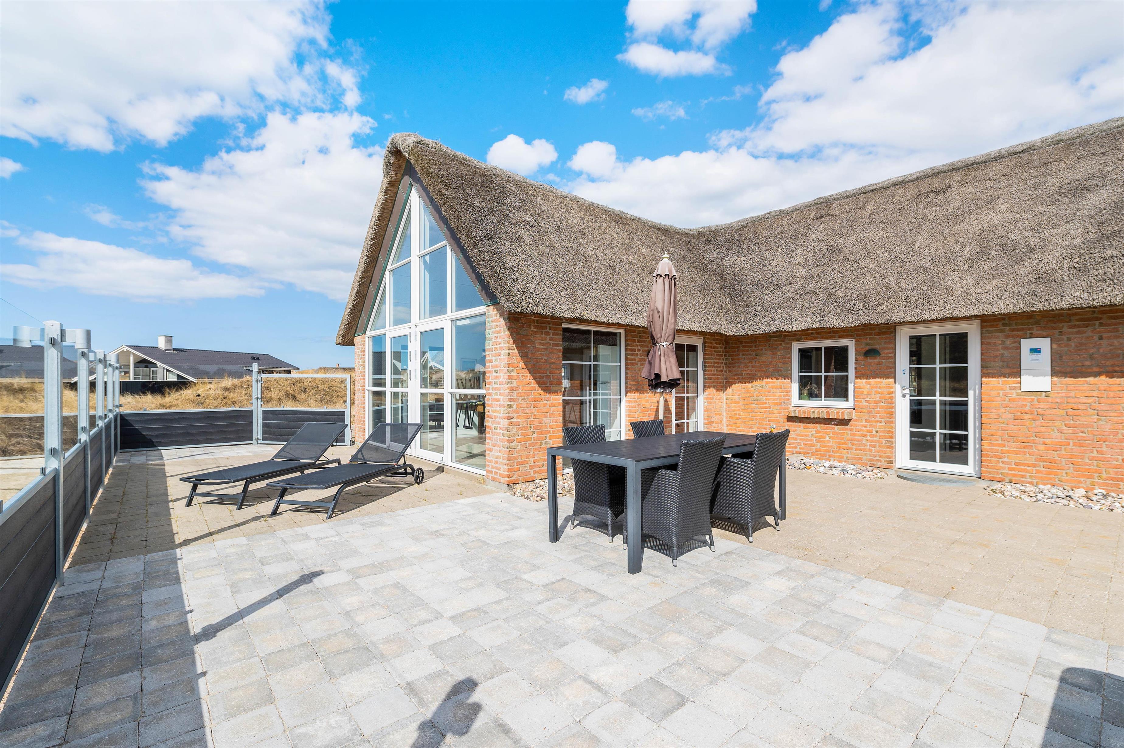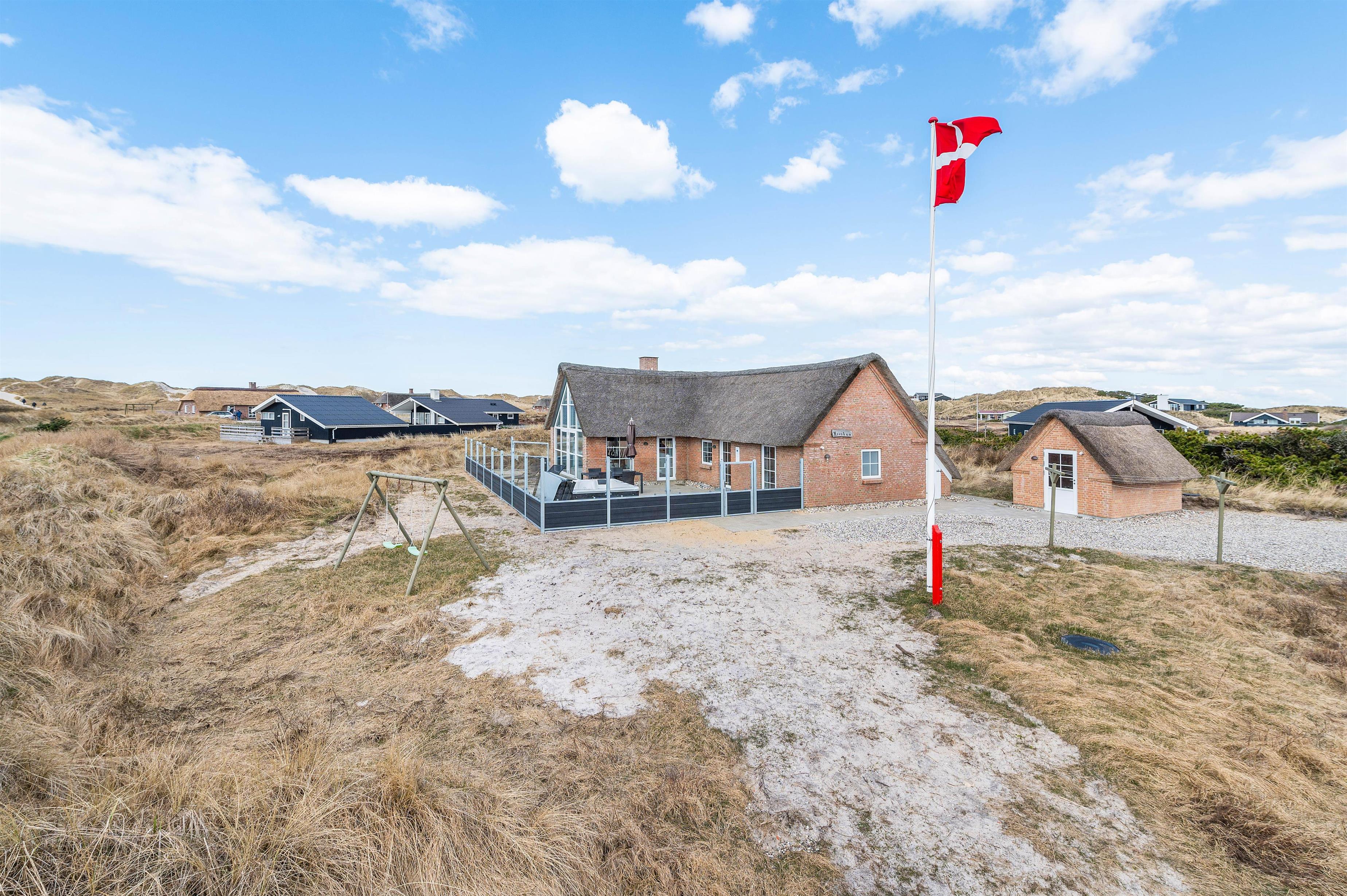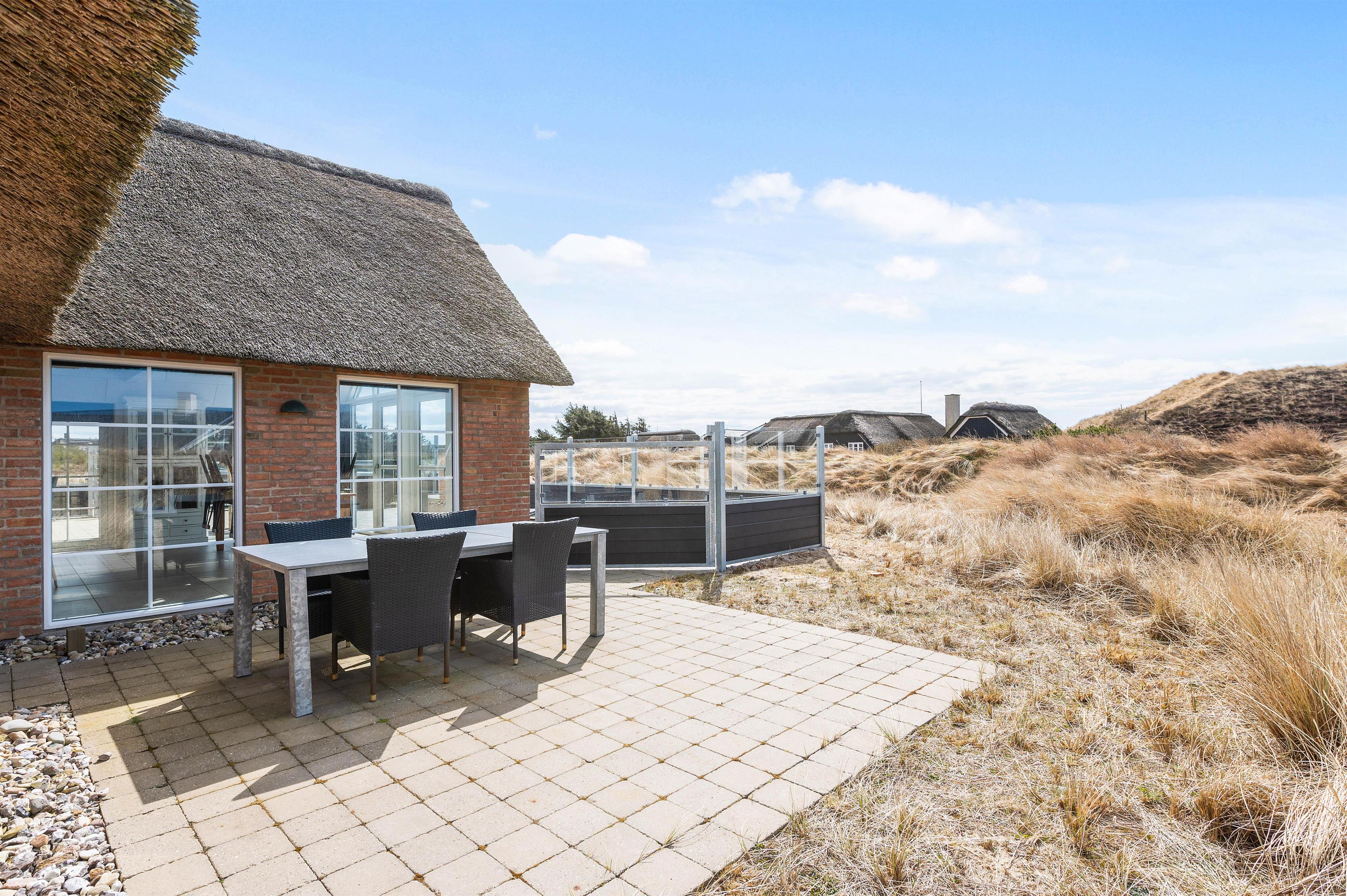 Sommerhuset har en skøn, stor terrasse, hvor I kan finde jer godt til rette i havemøbler og liggestole på de solrige feriedage. På terrassen står der også en lækker udespa, som I kan læne jer godt tilbage i og slappe af under åben himmel med lyden af brændingen i baggrunden. Fra terrassen har I også en skøn udsigt over klitlandskabet.