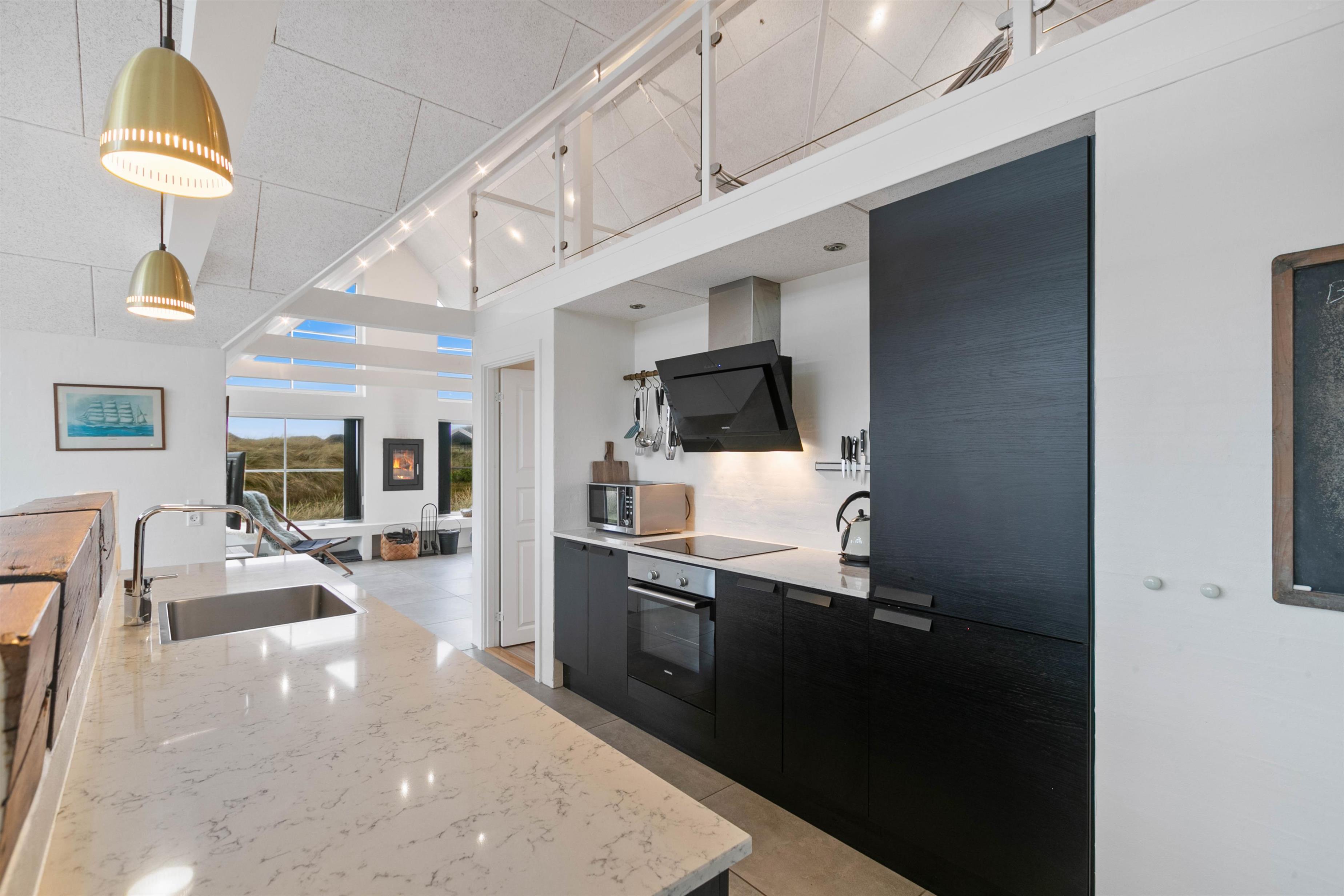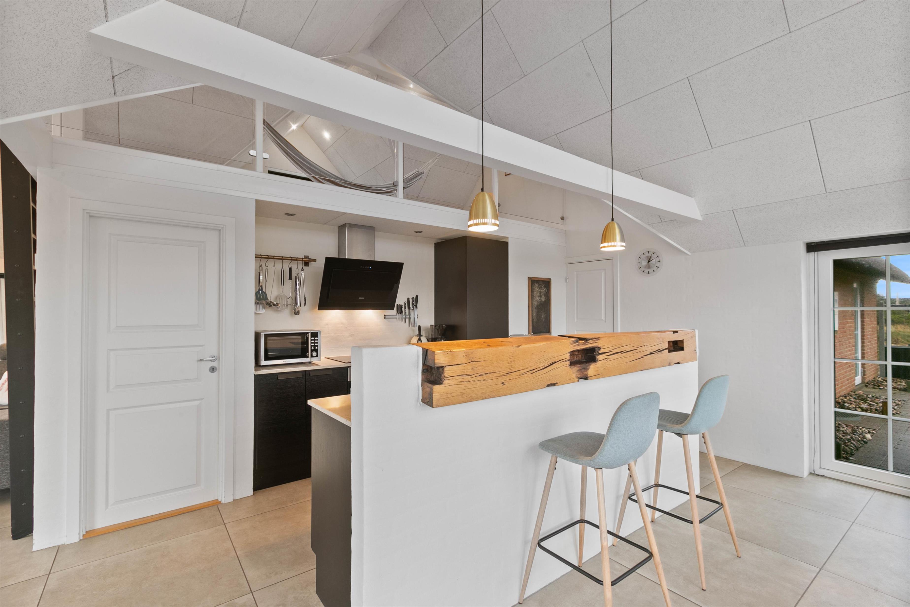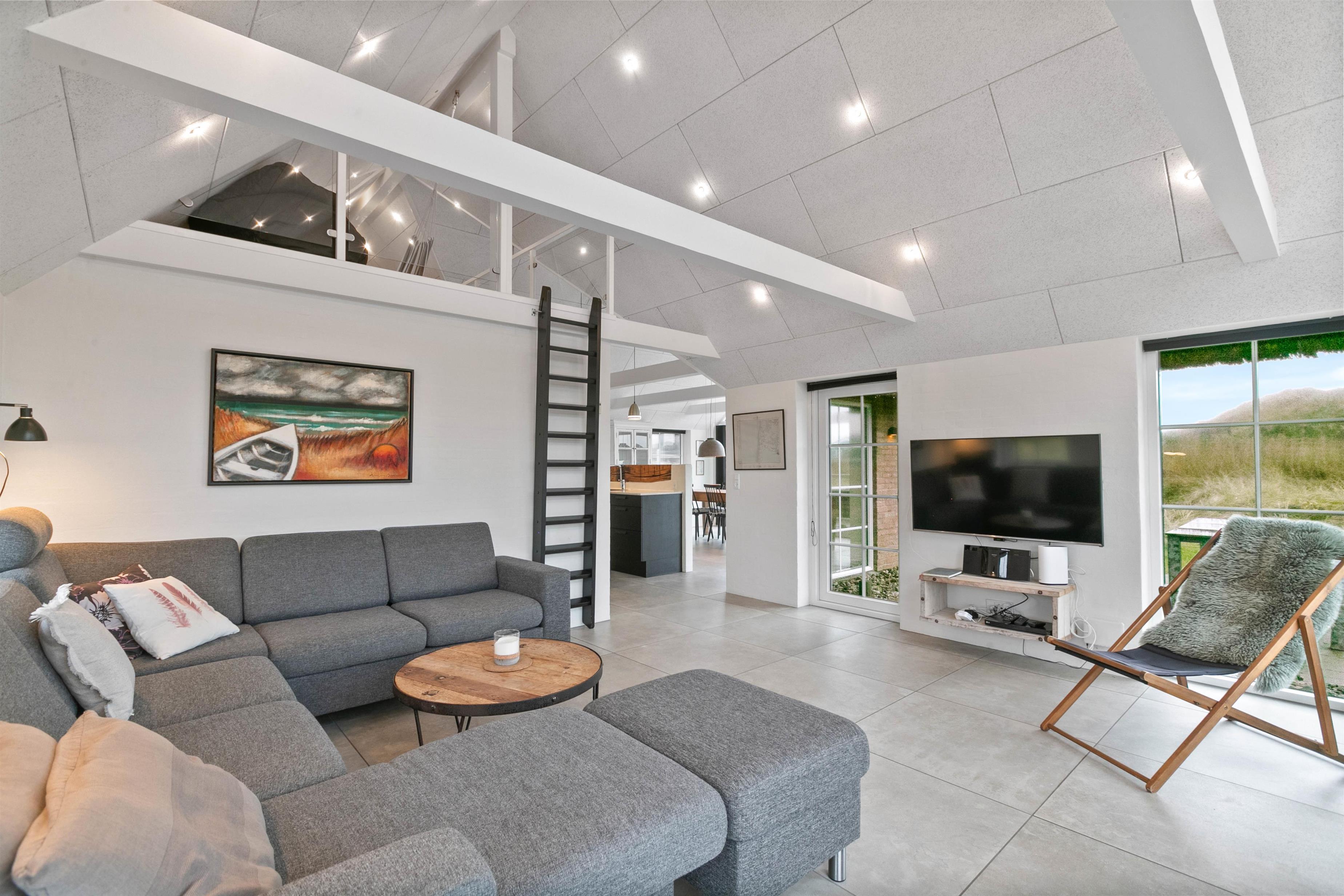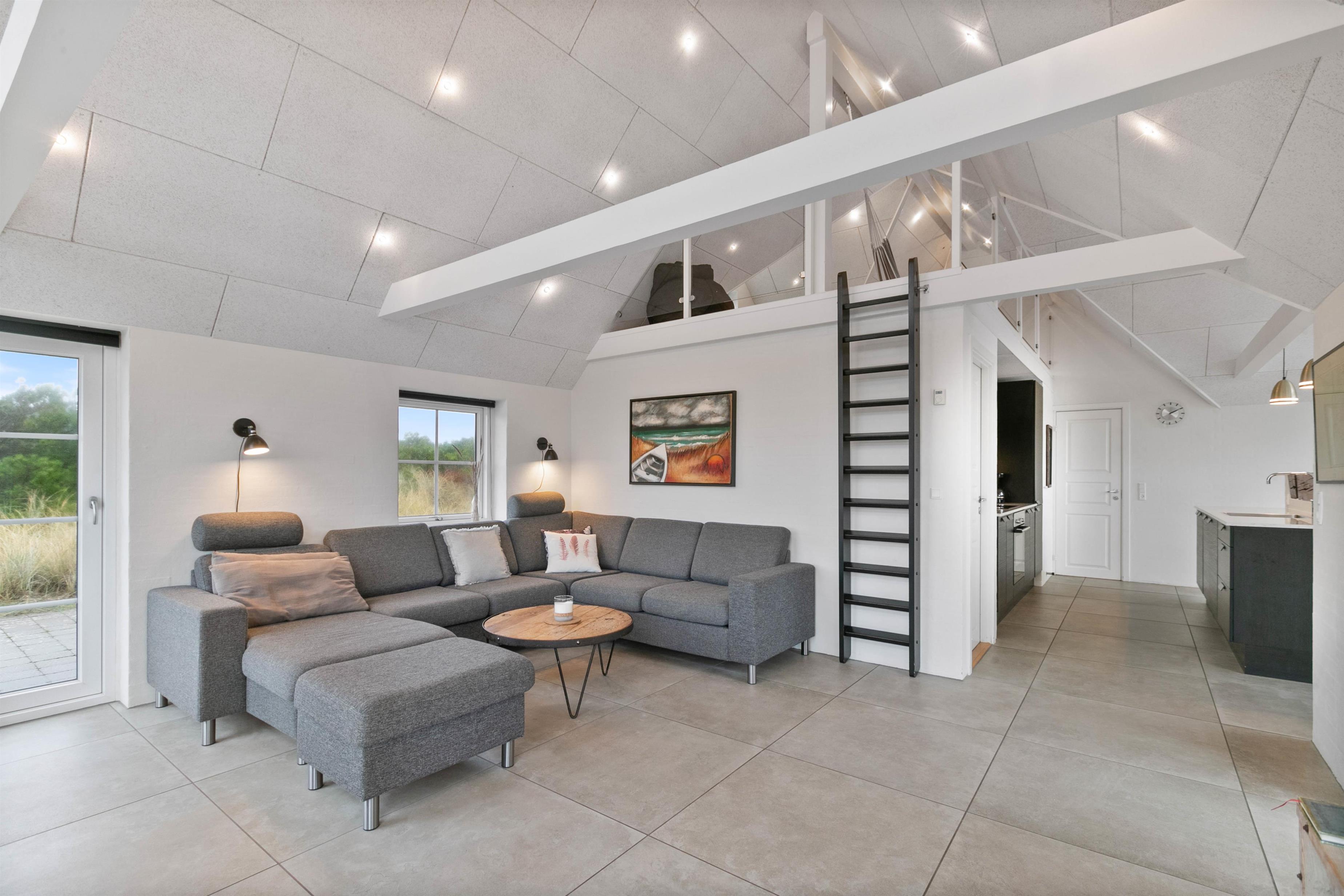 Jeres samlingspunkt på ferien vil uden tvivl være alrummet, hvor stuen ligger i åben forbindelse med køkken og spisestue. I alrummet er der lagt op til mange hyggelige feriestunder med spil, film og god mad. Brændeovnen fuldender feriestemningen med sin knitren i baggrunden, og den spreder samtidig god varme.