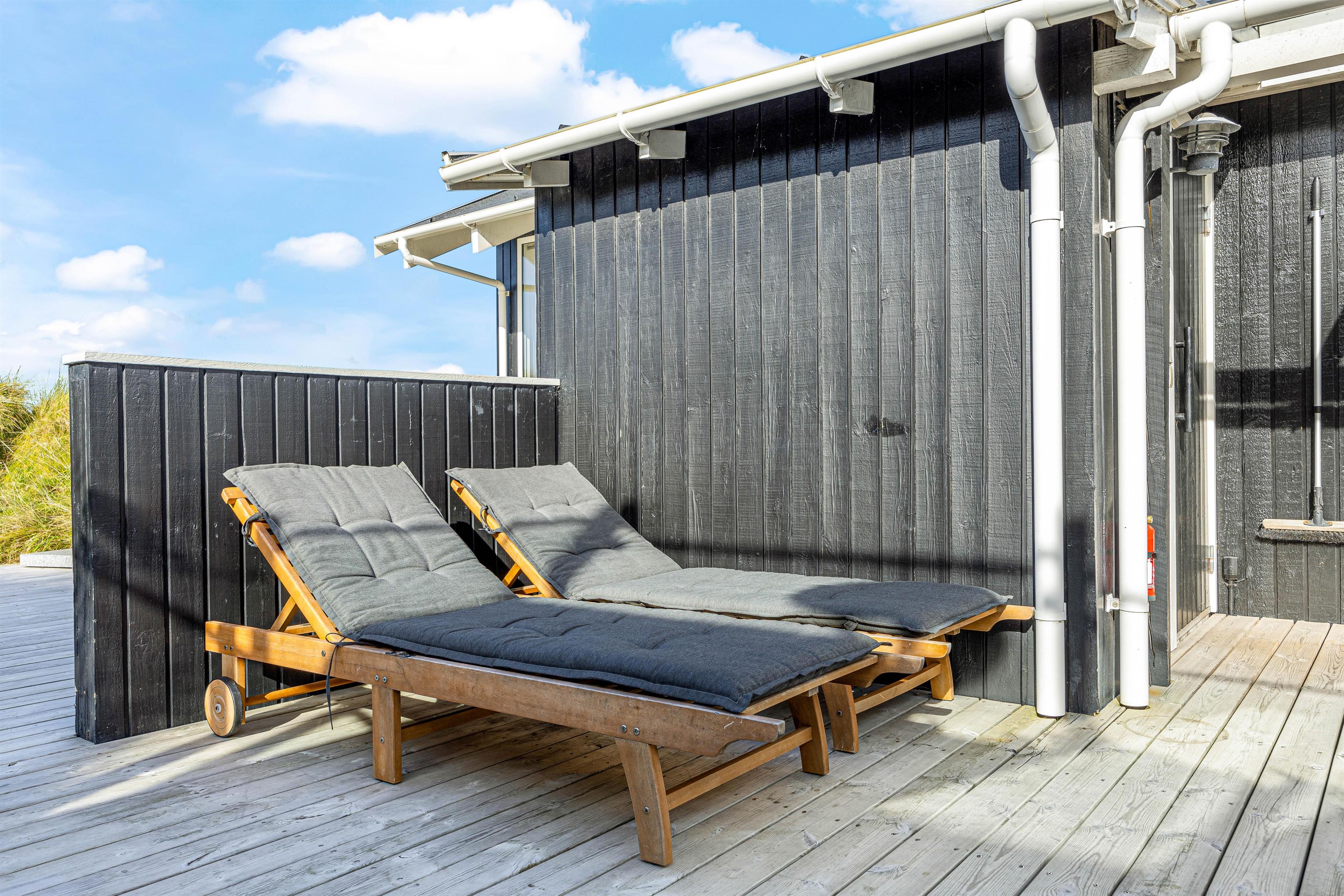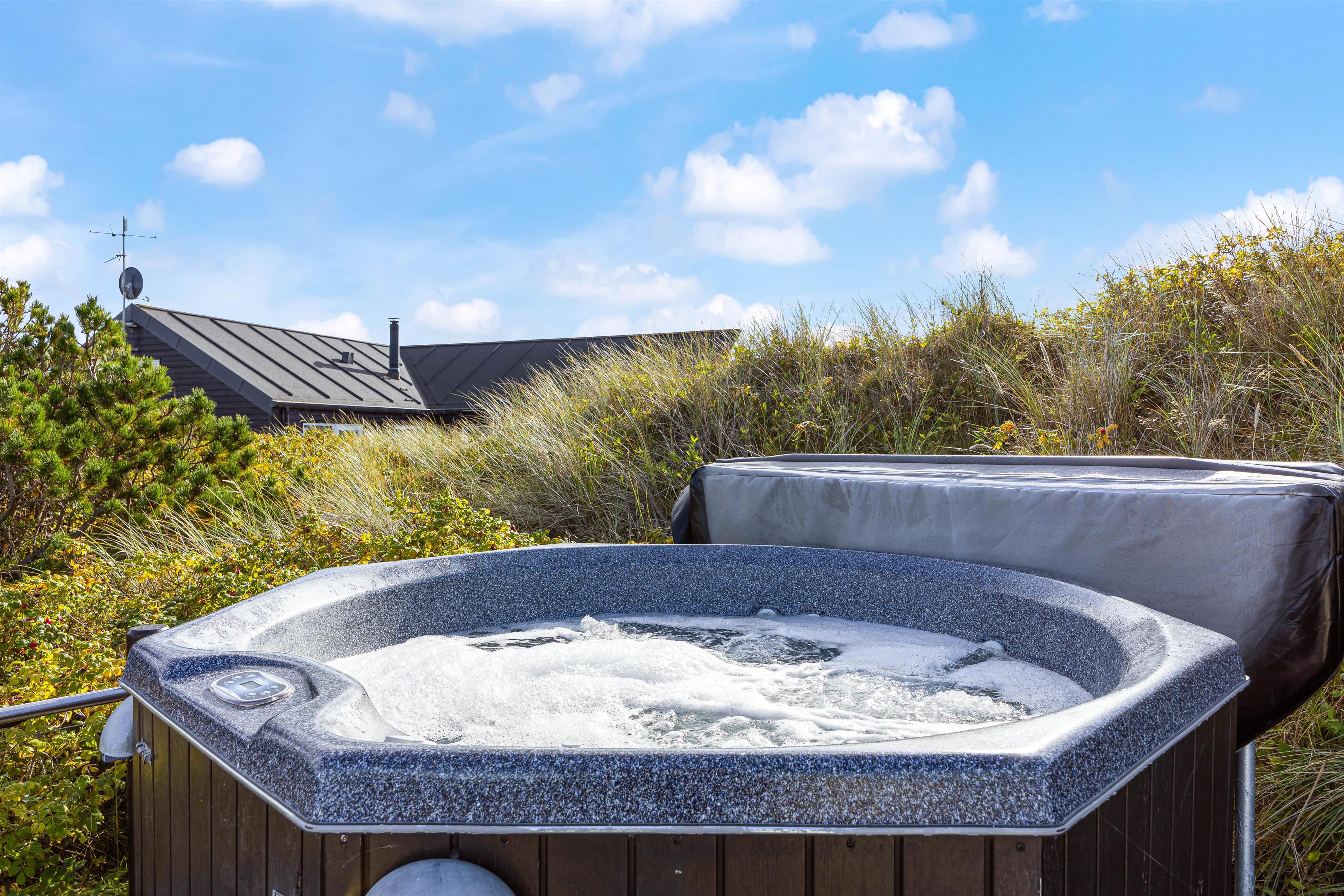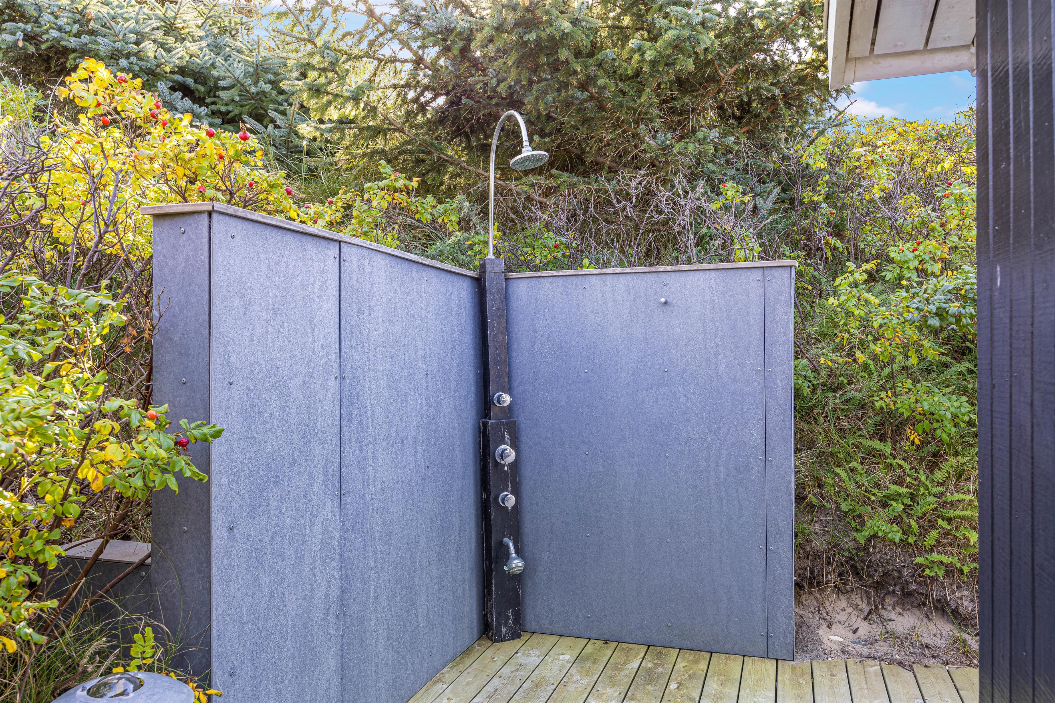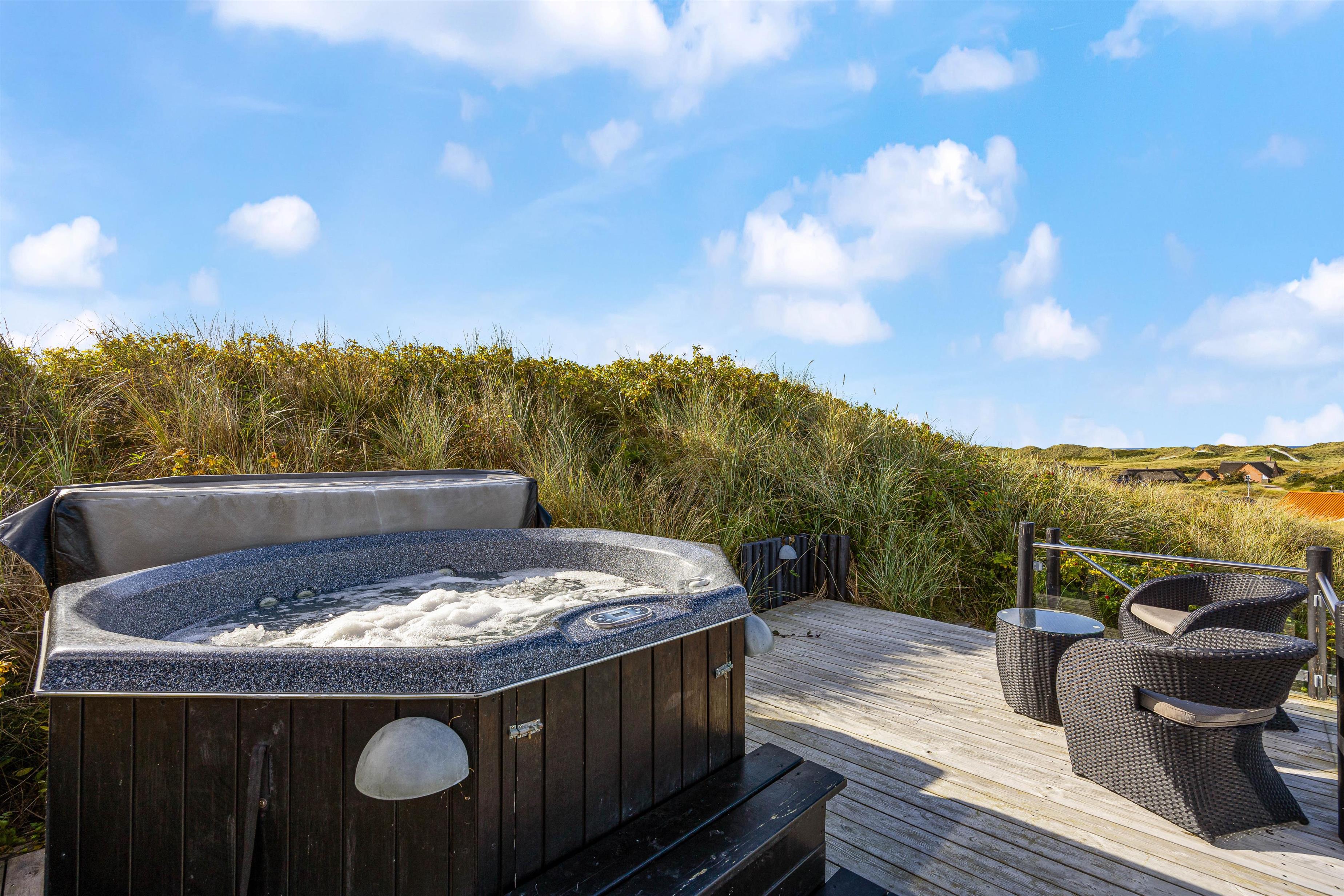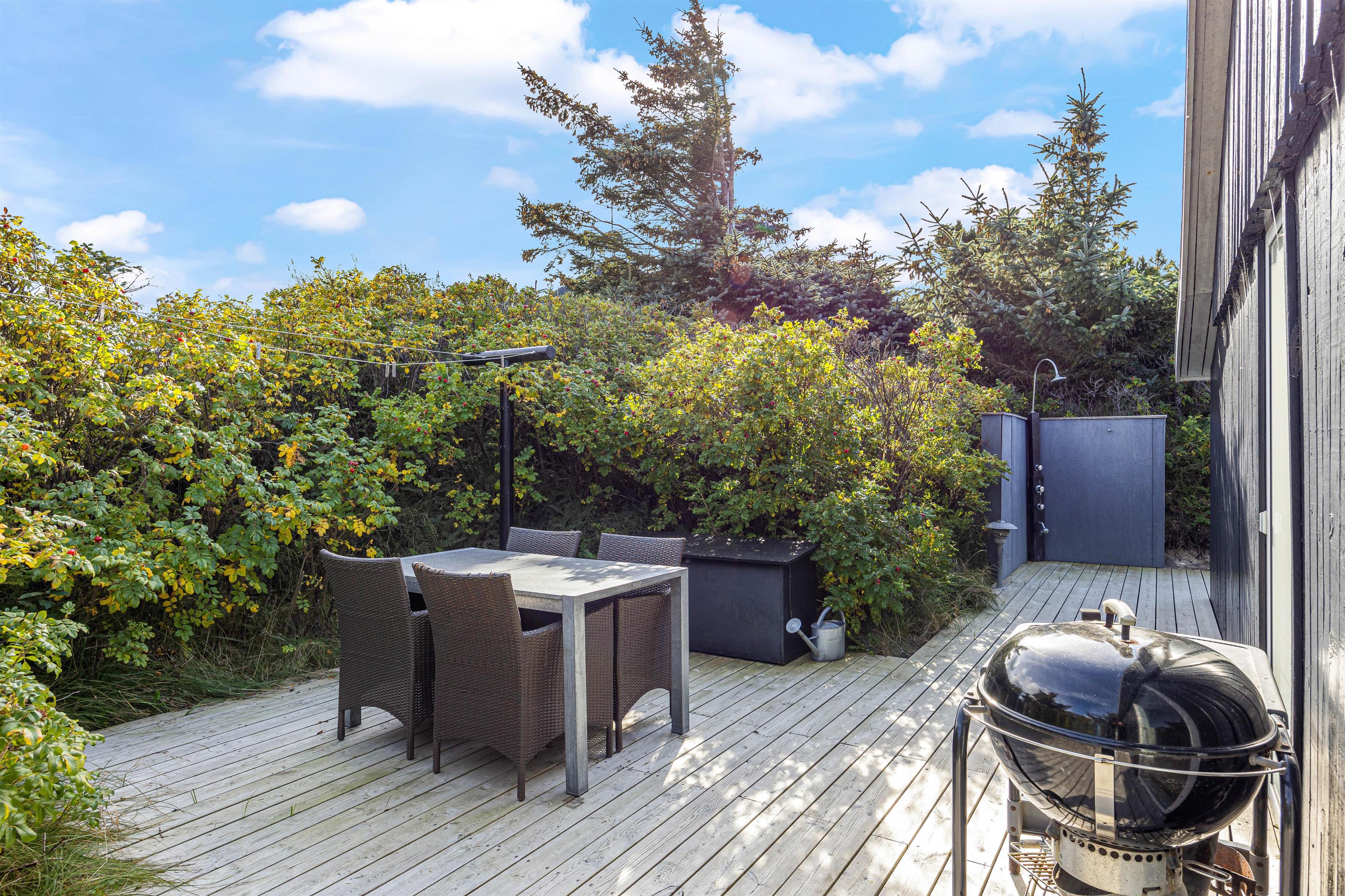 Det er også på terrassen I finder feriehusets udespa, udesauna og udebruser, som bidrager til at I kan blive varmet godt igennem, slappe helt af, og bare nyde at I har ferie sammen. Udebruseren kan benyttes fra april til og med uge 42.