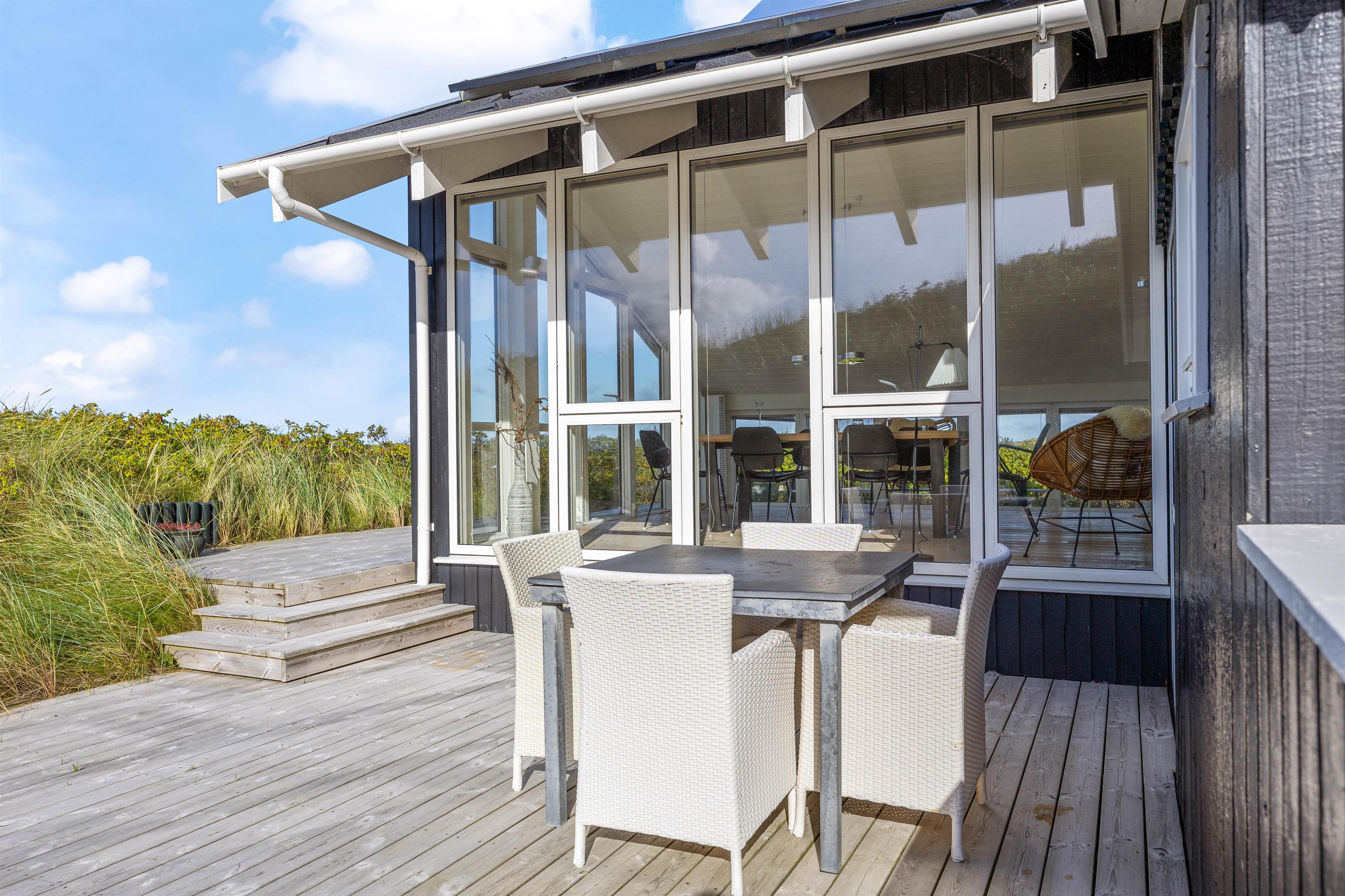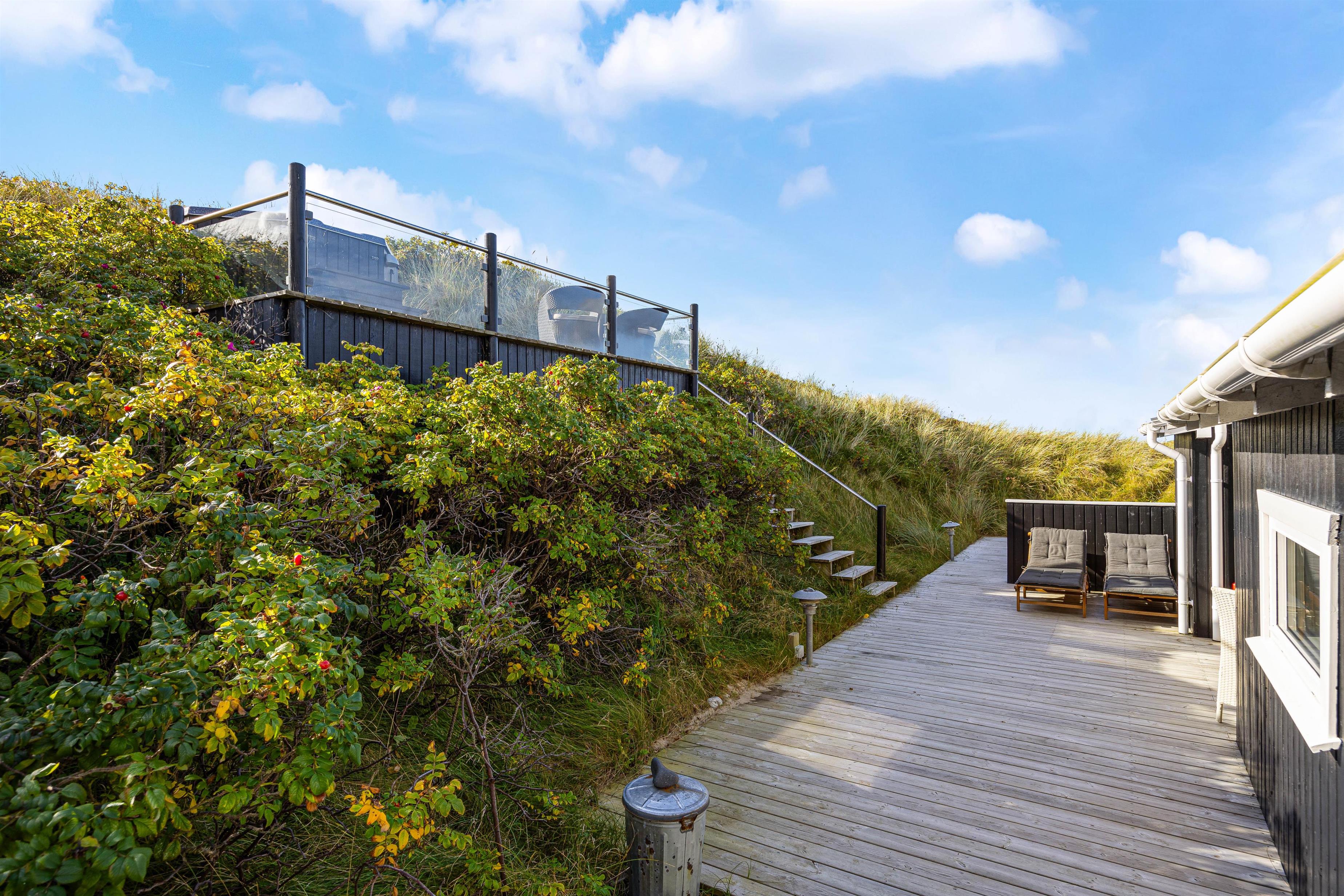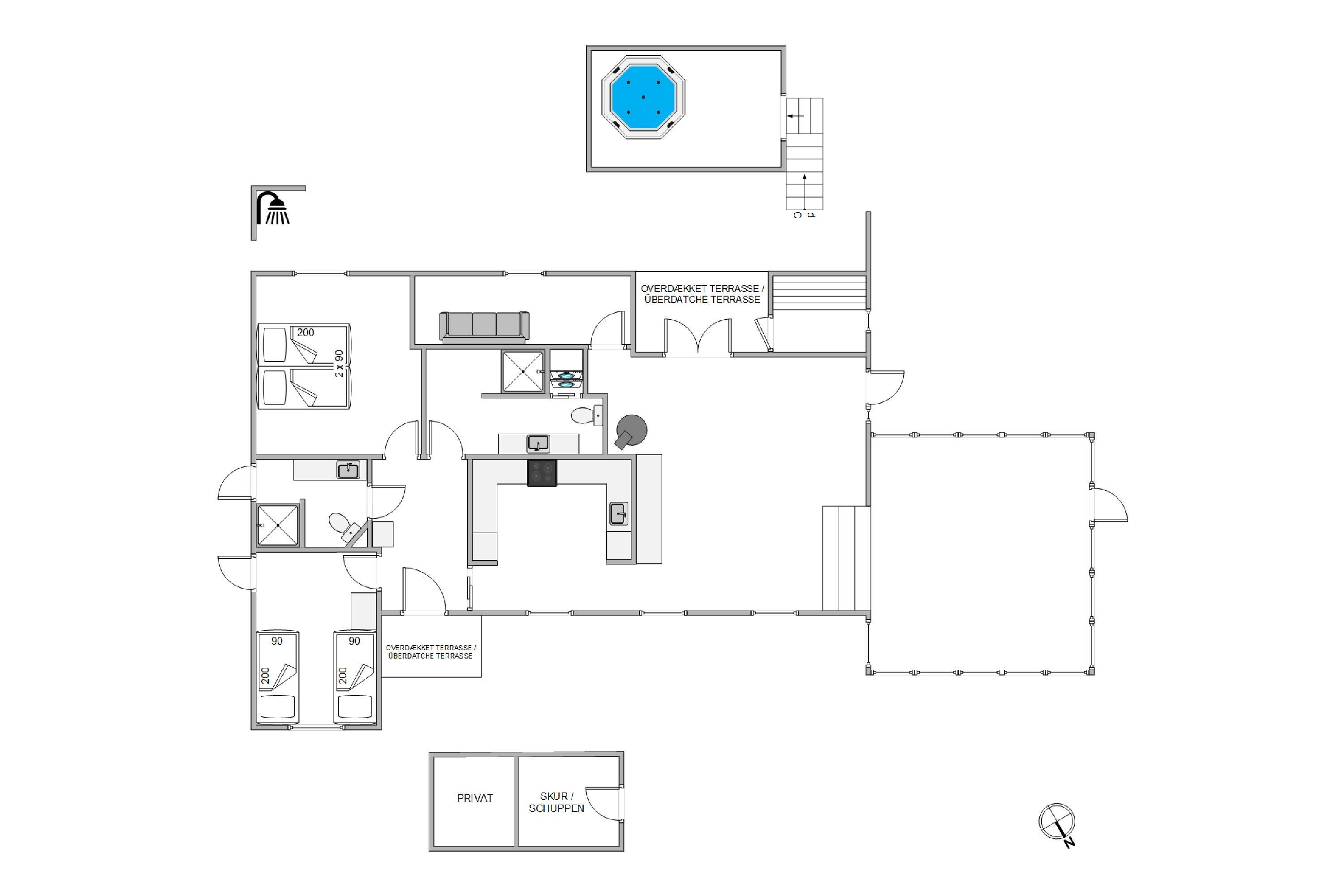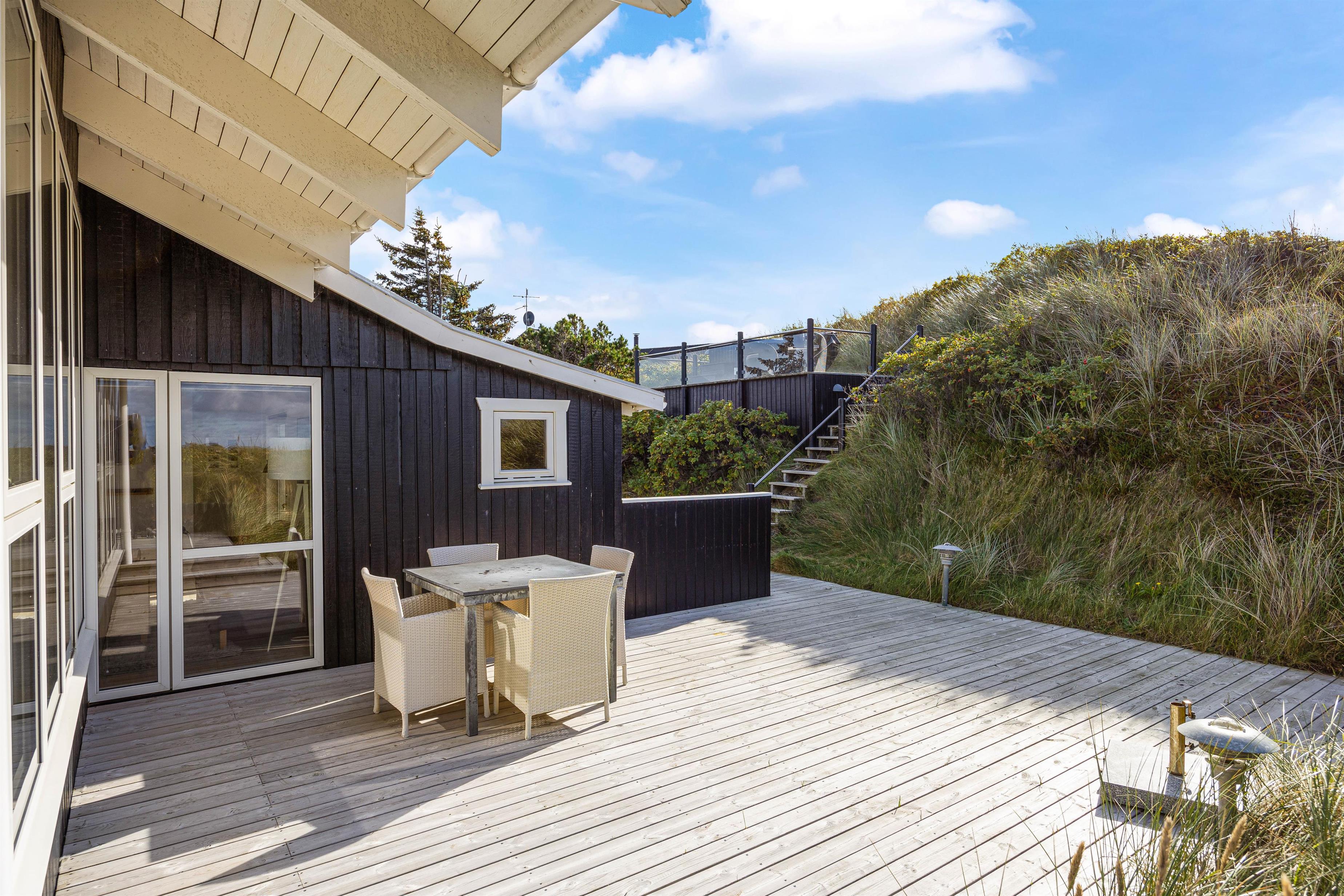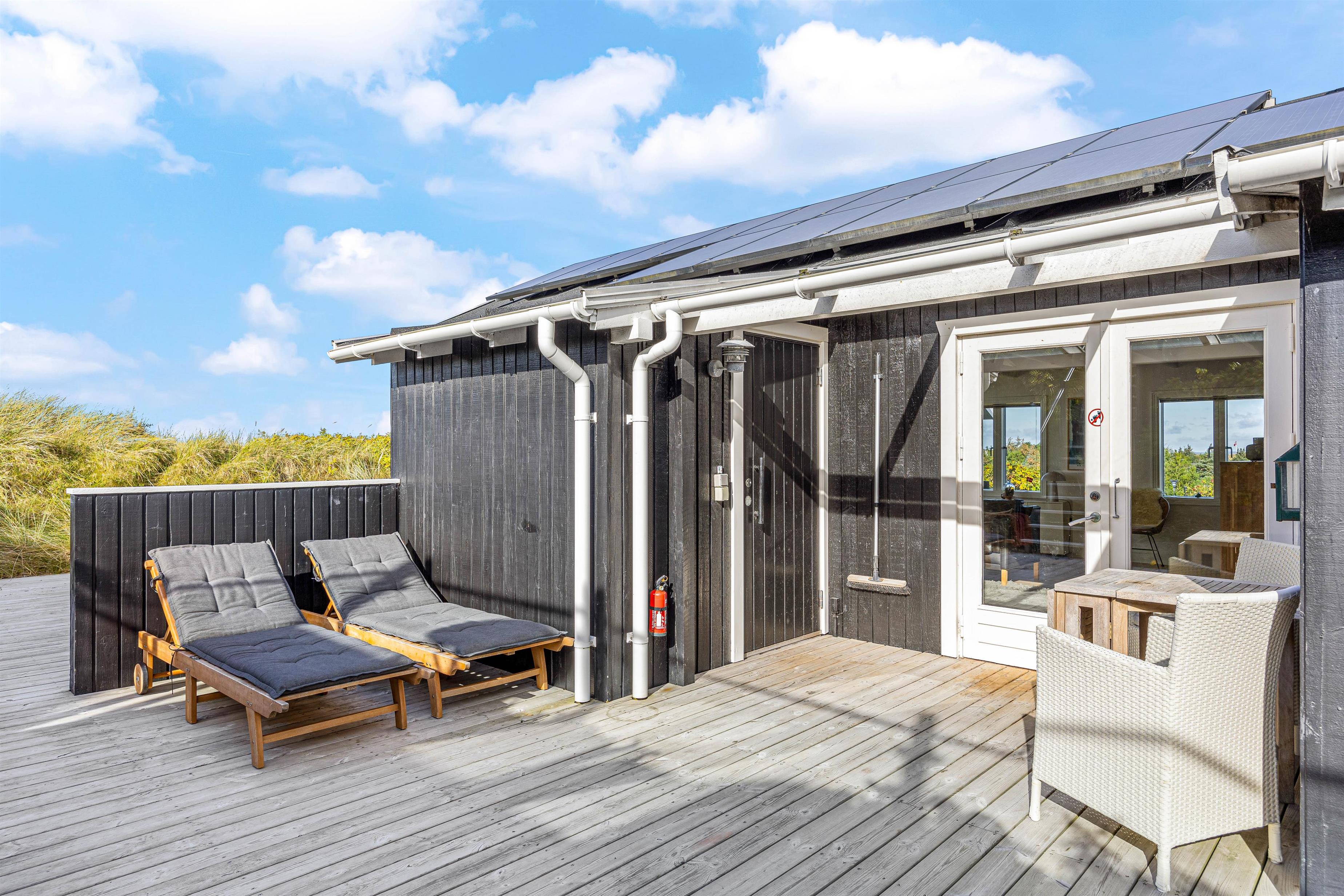 Det er også på terrassen I finder feriehusets udespa, udesauna og udebruser, som bidrager til at I kan blive varmet godt igennem, slappe helt af, og bare nyde at I har ferie sammen. Udebruseren kan benyttes fra april til og med uge 42.