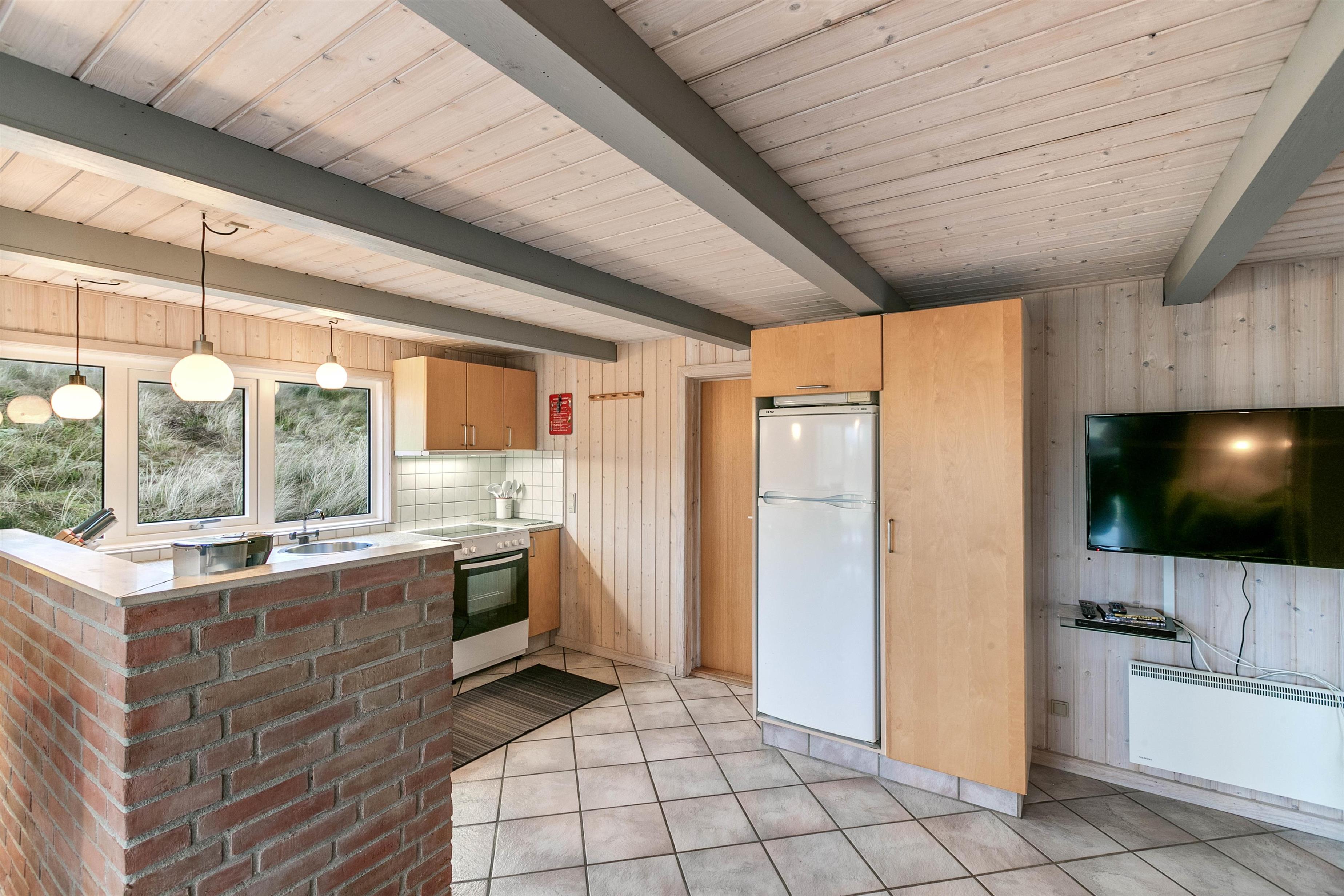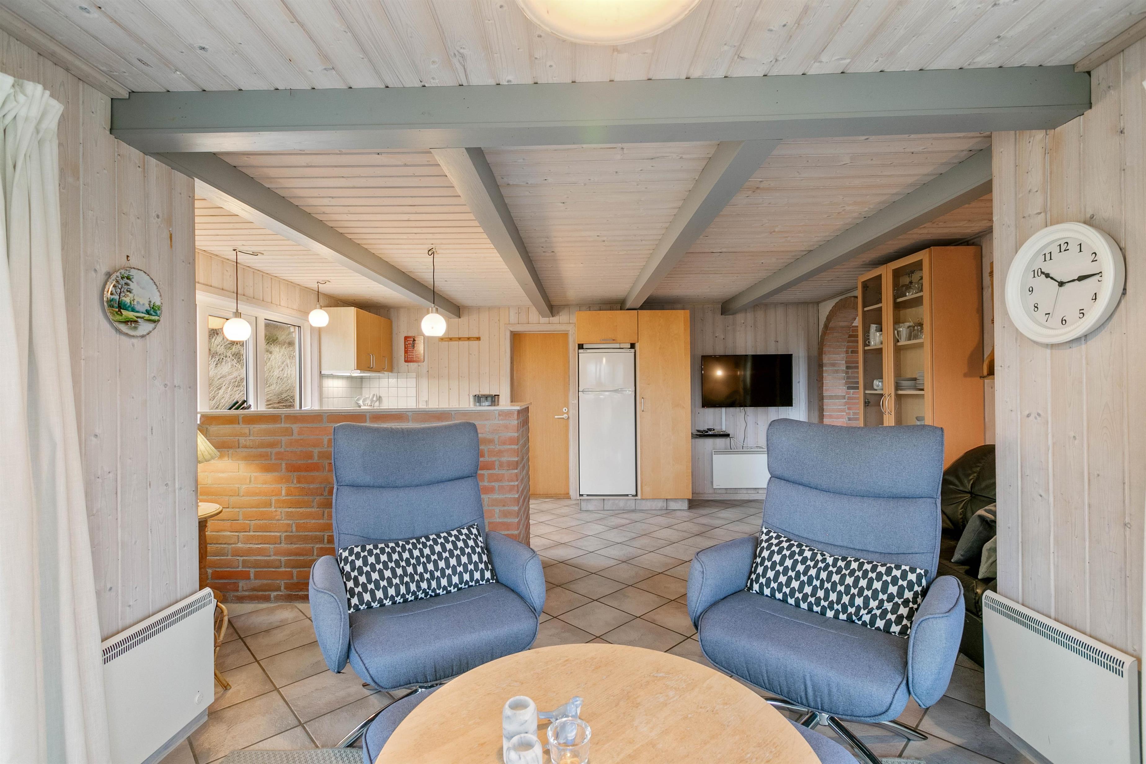 Et chamerende og hyggeligt feriehus med rolig beliggenhed på en dejlig klitgrund kun to kilometer fra Søndervig. 200 meter herfra finder I det smukke og vilde Vesterhav og strand så langt øjet rækker. Sommerhuset er oplagt til parret eller den lille familie, som søger et feriehus med en autentisk sommerhusstemning med en god beliggenhed