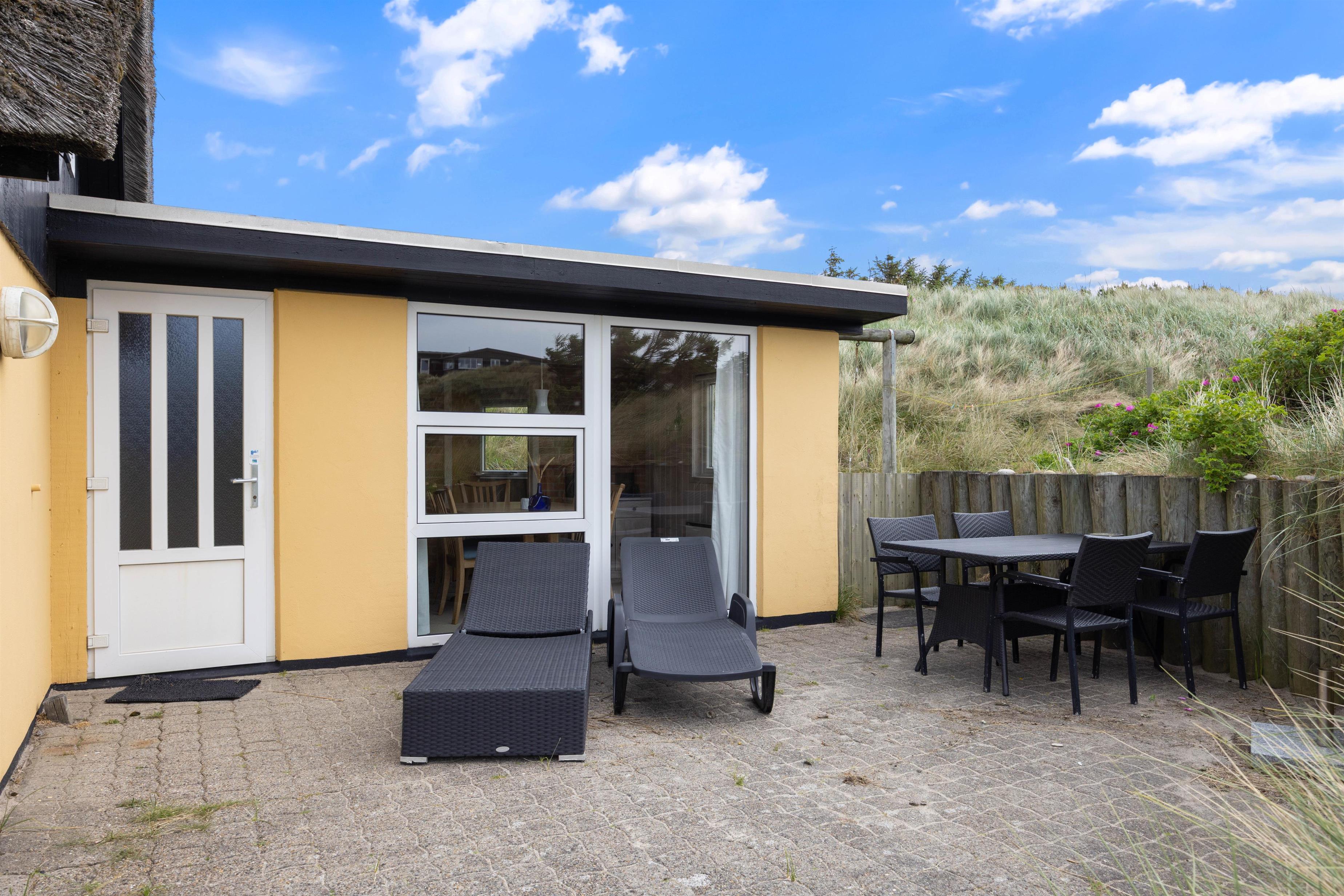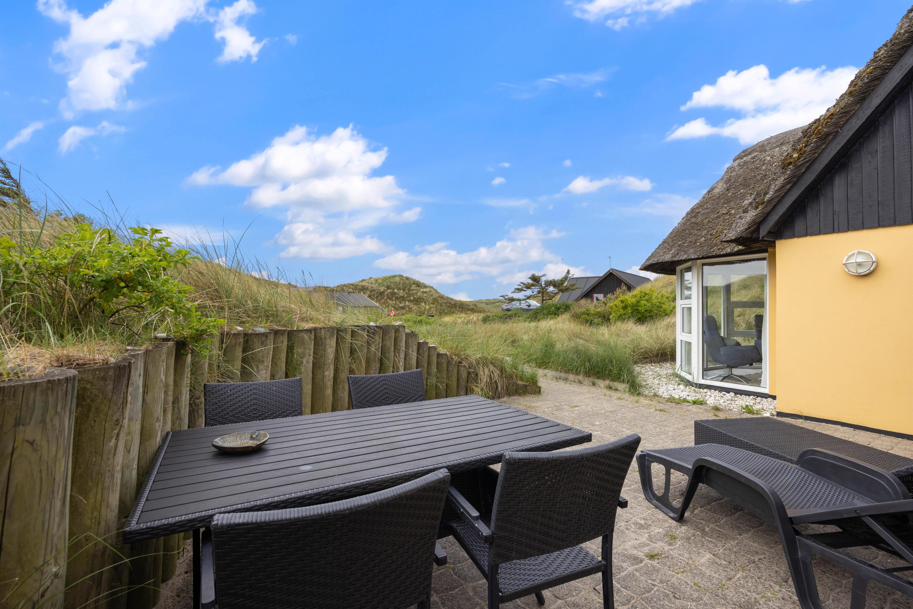 Tag en dyb indånding og mærk hvordan den friske luft fra Vesterhavet gør jer godt. Nyd solen på huset hyggelige terrasse og om aftenen kan I grille og nyde den rolige beliggenhed mens mørket langsomt sænker sig. Lyden af Vesterhavets brusen kan helt sikkert også høres fra husets terrasse, og det en lyd der med sikkerhed vil få jer til at slappe af og nyde jeres ferie.