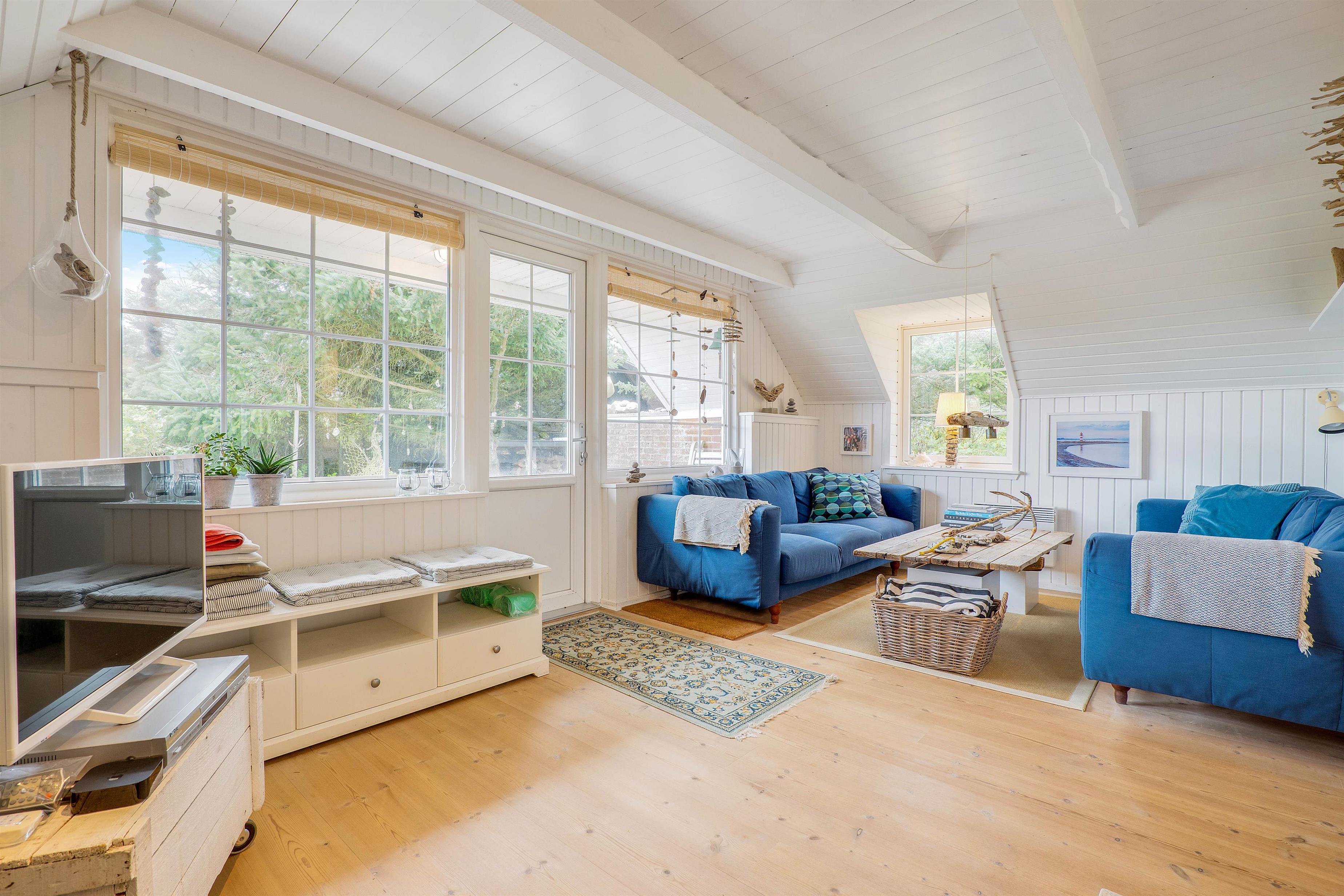 Sommerhuset på Klitdalen 36 emmer af hygge og er fyldt med fund fra hav og strand. Selve ferieboligen består af et ”hovedhus” og en ekstra bygning, der også har eget bad. Sommerhuset er fordelt på 5 sovepladser, heraf 4 soverum, hvoraf det ene er i annekset. De 2 soverum er med dobbeltsenge, og de 3 andre har enkeltsenge. Der er 2 badeværelser i alt - det ene i annekset.