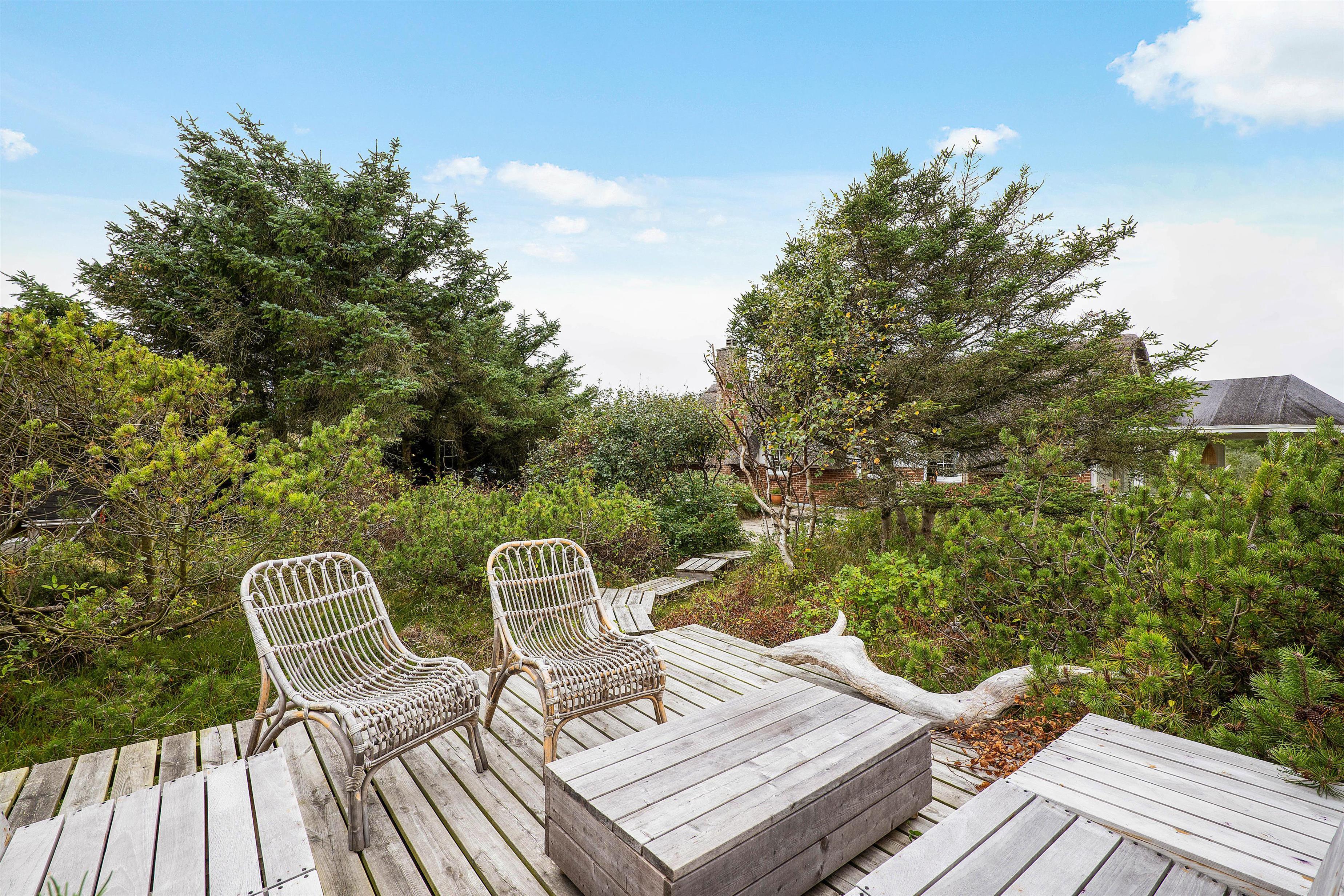 Der findes flere dejlige terrasser på grunden, så det er altid muligt at finde læ for vestenvinden og nye udsyn over landskabet. De sjove træstier på grunden fører hen til terrasserne, som udgør anderledes hot-spots til afslapning og fordybelse.