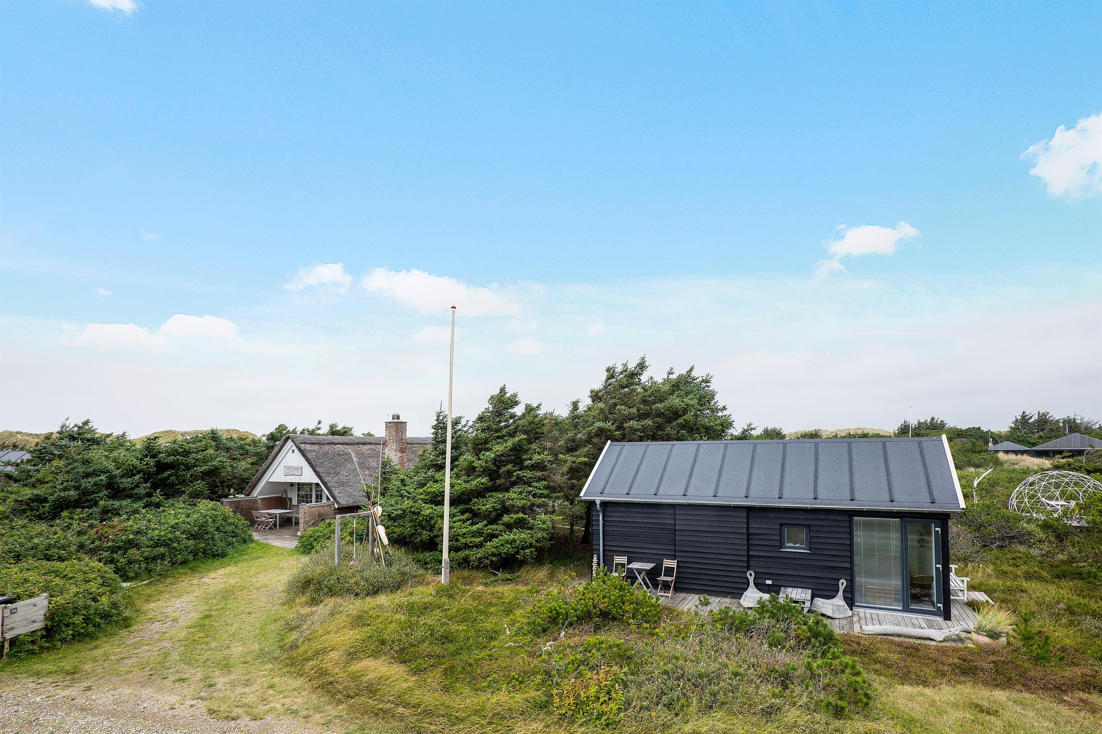 Sommerhuset Klitdalen 36 ligger midt i den jyske hede, omgivet af det smukke klitlandskab med grantræer og marehalm og kun 200 meter fra Vesterhavet. Der er en lille sti lige fra feriehuset, som fører direkte ned til havet, hvor det er oplagt at tage en forfriskende dukkert eller gå lange ture langs vandet. Når I har været en tur i vandet, har I mulighed for at benytte jer af feriehusets udebruser, for at skylle det værste sand af kroppen. OBS. Udebruseren er åben i perioden april-november.