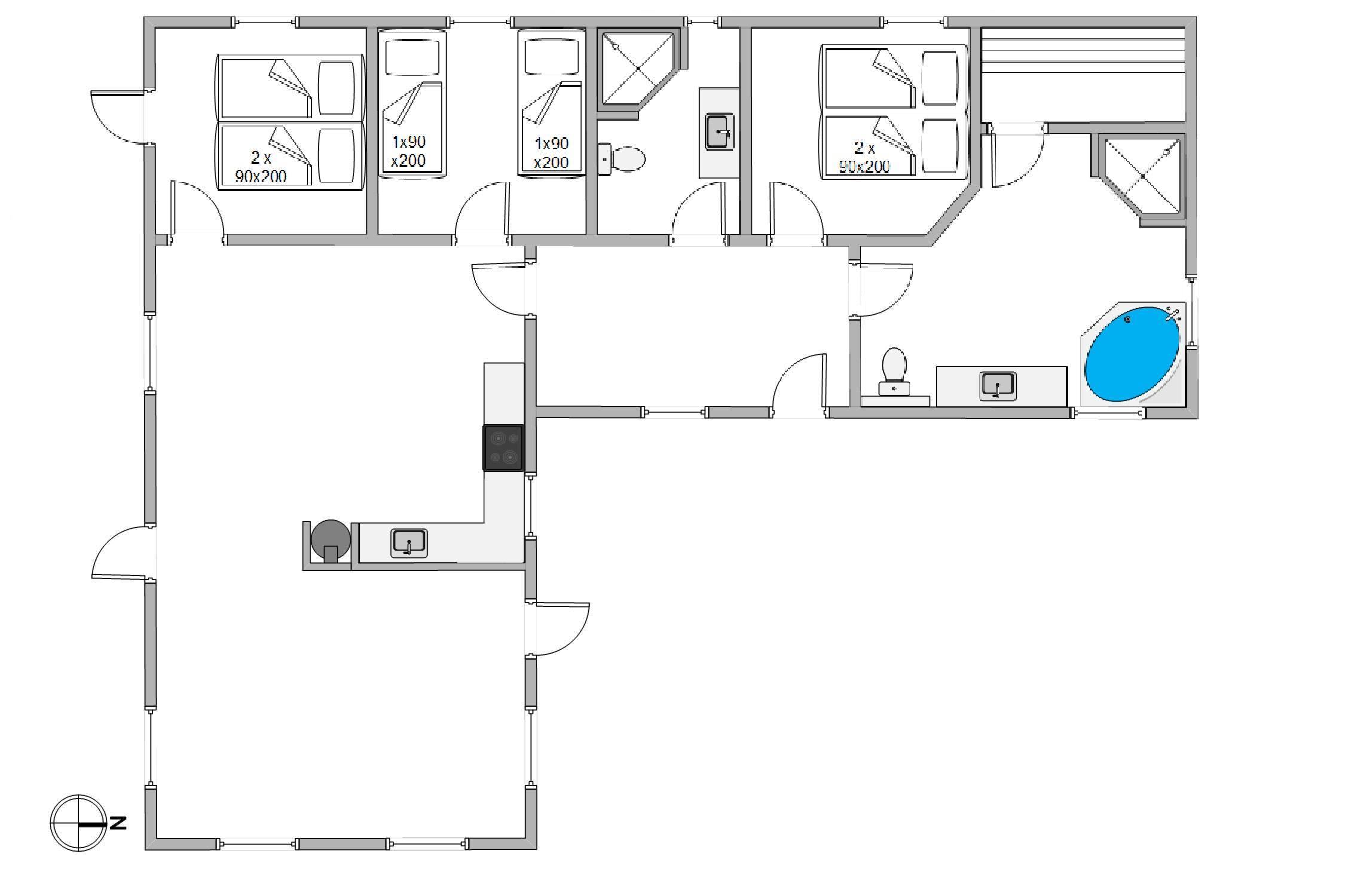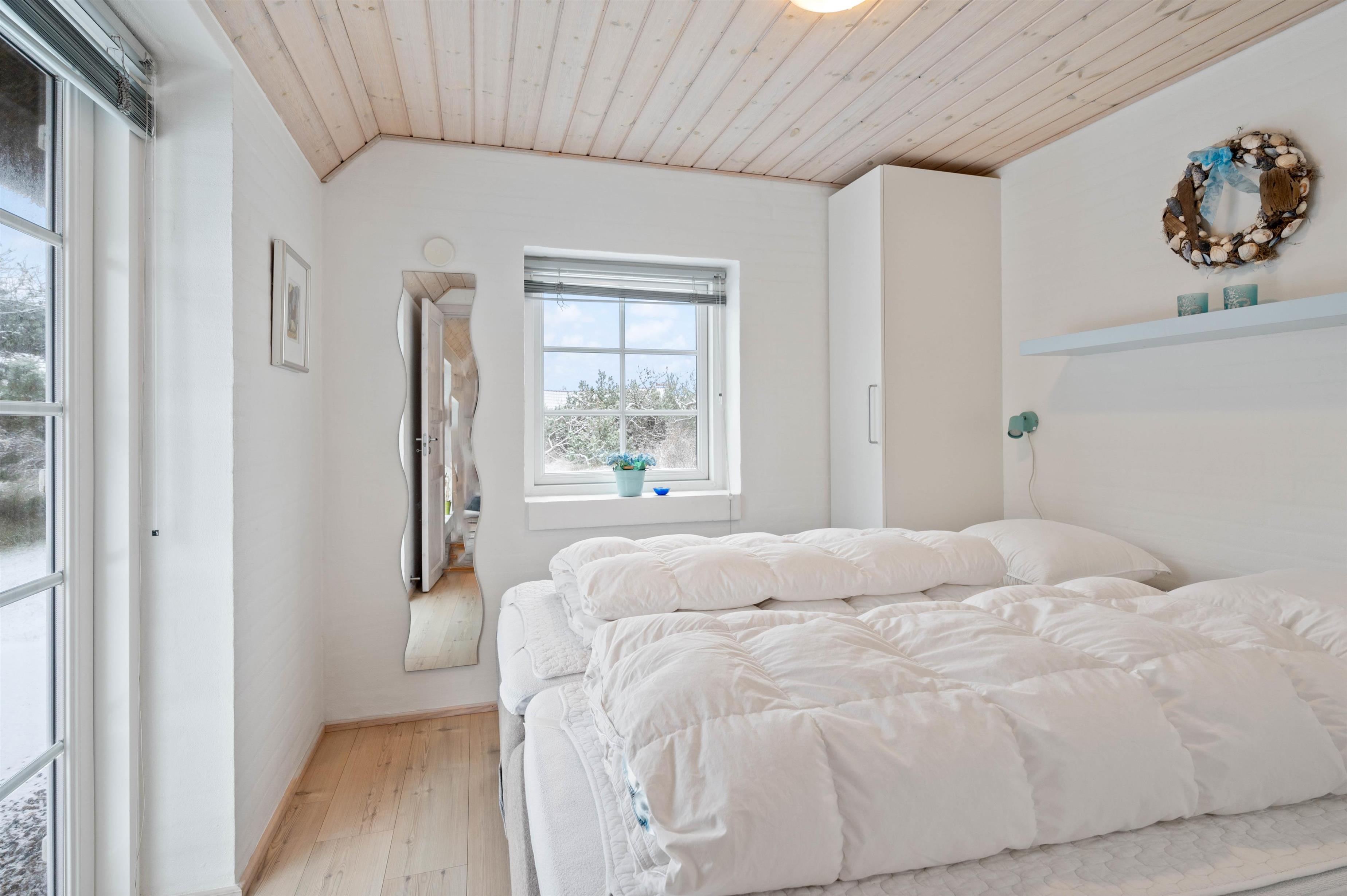 Sommerhuset er indrettet med 3 gode soveværelser – der er dobbeltseng på 2 af soveværelserne, og der er 2 enkeltsenge på det tredje soveværelse. Derudover er der 2 gode badeværelser i sommerhuset, der begge er udstyret med gulvvarme.