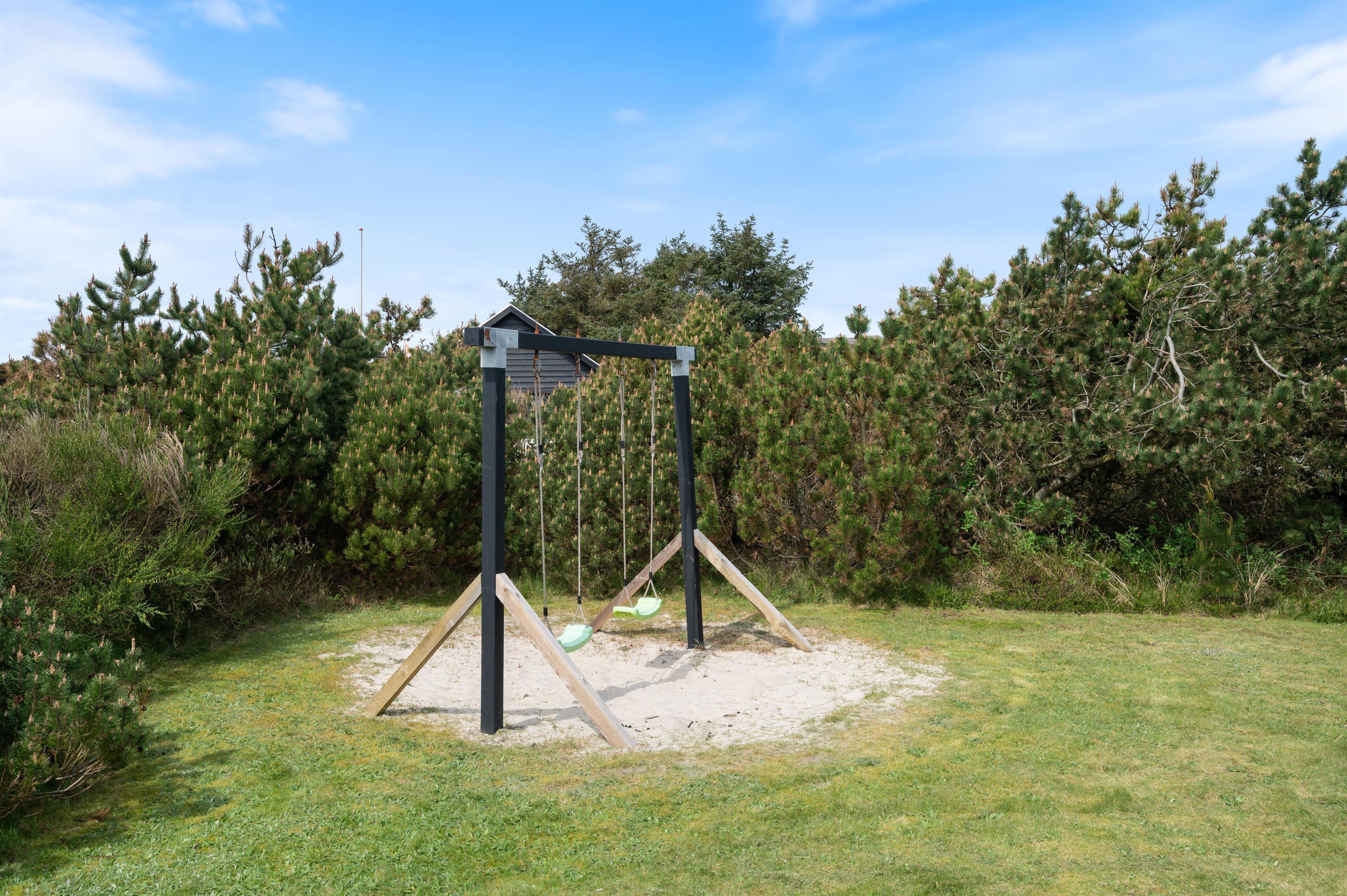 Sommerhuset på Skovdalen 15 har et dejligt udeområde, hvor I kan tilbringe feriens solrige og varme dage. På udeområdet er der både noget for store og små. Til børnene er der en sandkasse og et gyngestativ, hvor de kan lege, mens de voksne kan slappe af og se til fra terrassen, hvor der er havemøbler og liggestole til rådighed.