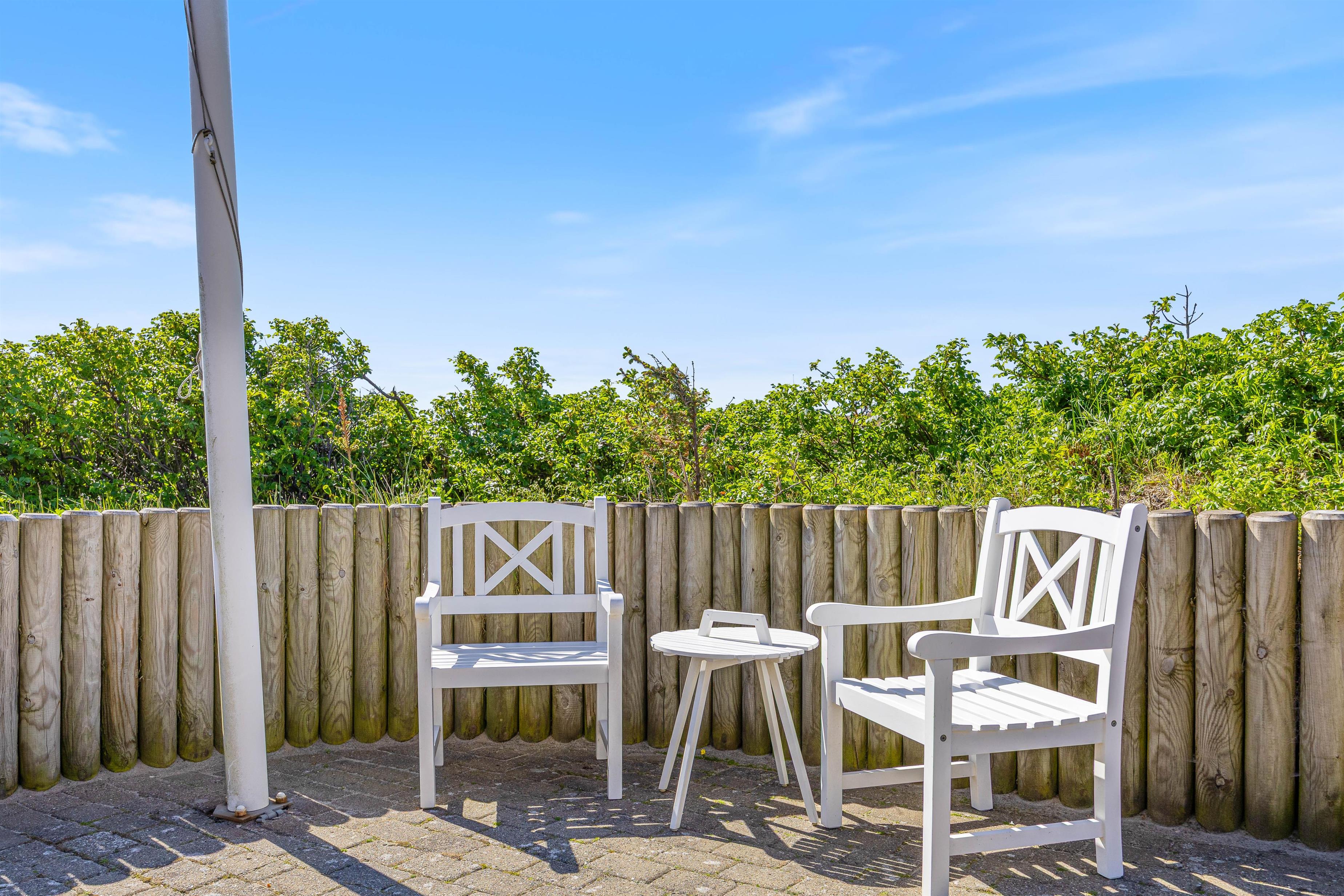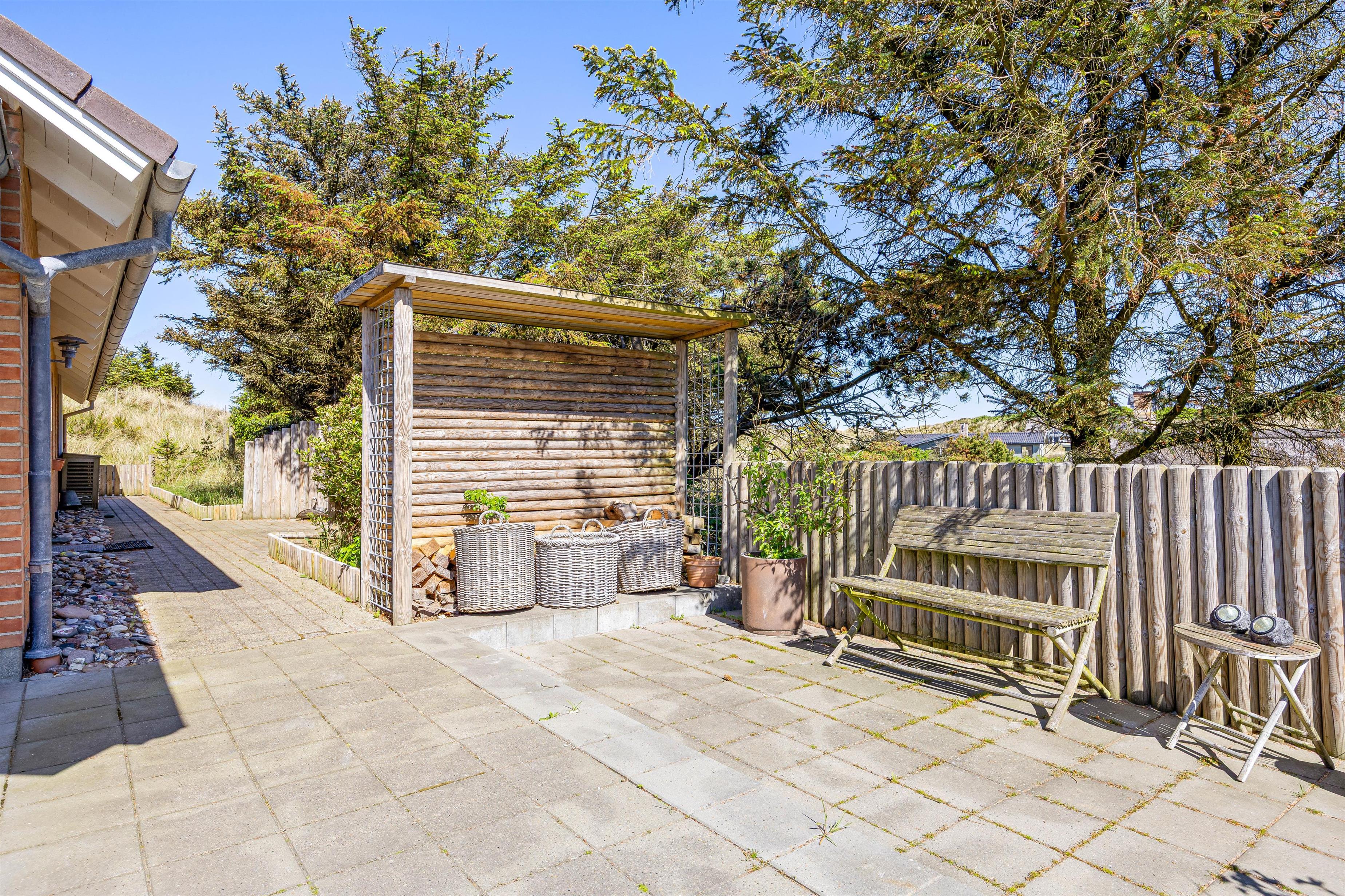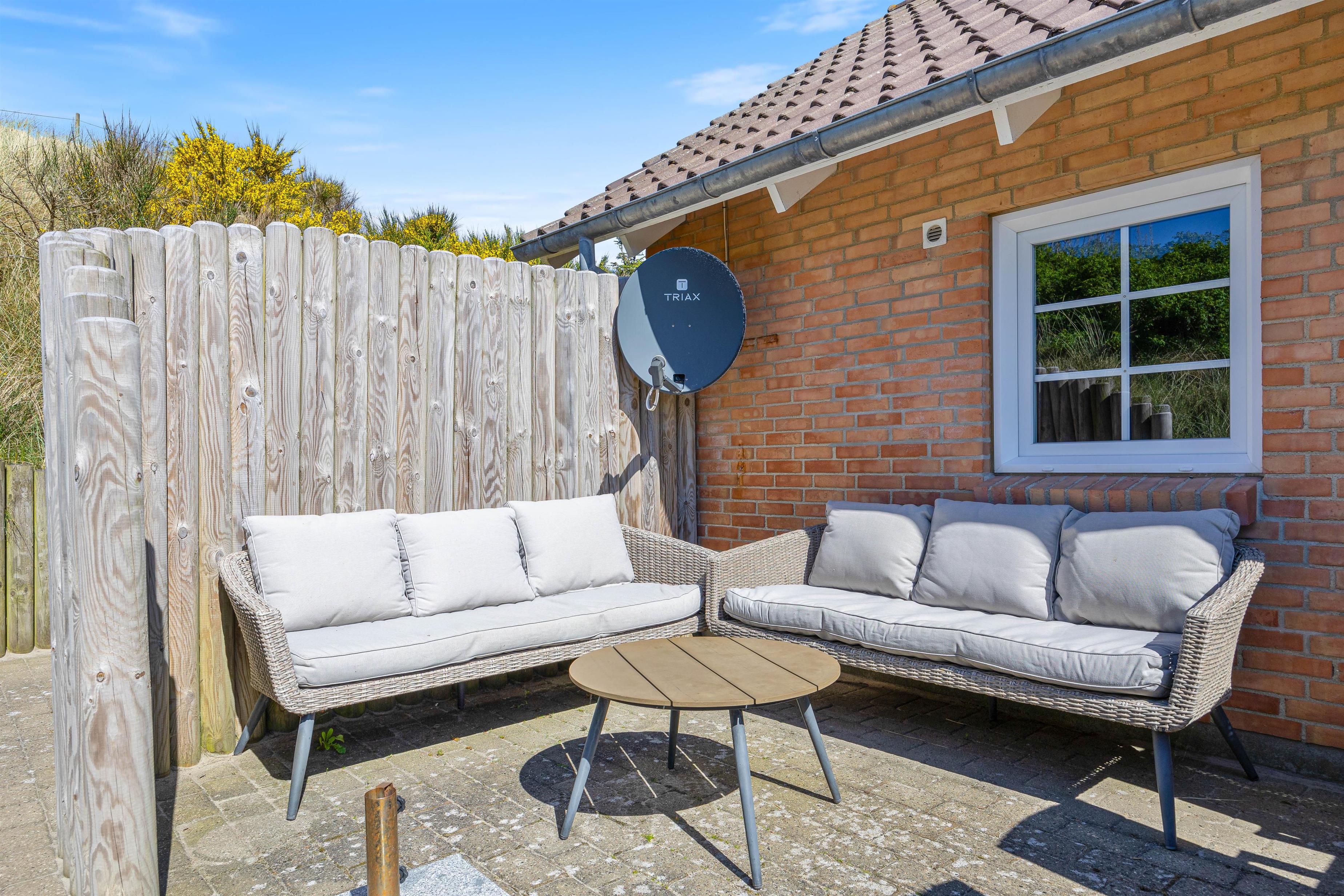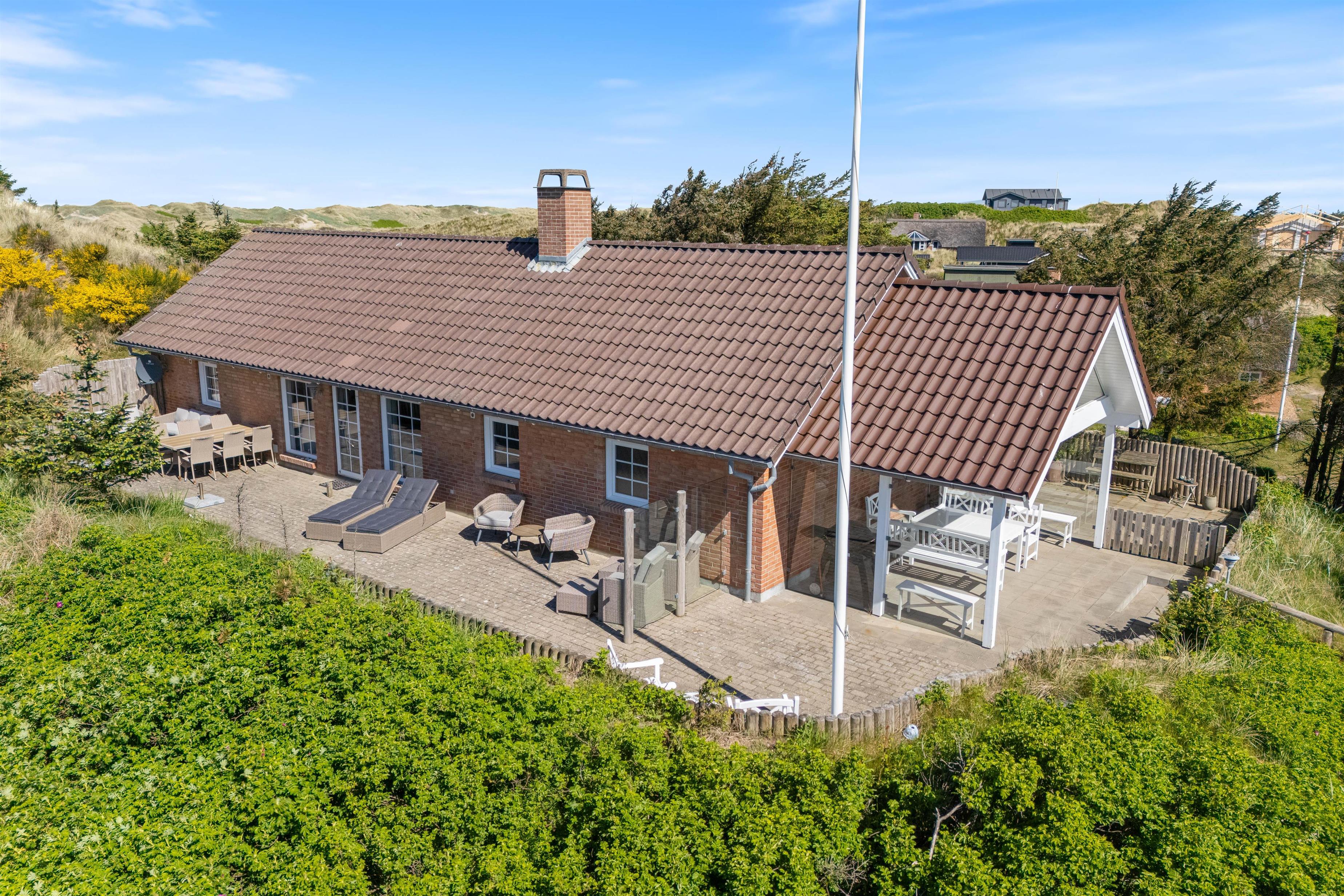 Noget helt unikt ved sommerhuset er den enestående beliggenhed. Det ligger i første klitrække og har flere terrasser, hvor I kan nyde den danske natur. I kan slappe af i solen på den afskærmede eller overdækkede terrasse, hvor havemøblerne står klar til et måltid tilberedt på grillen.