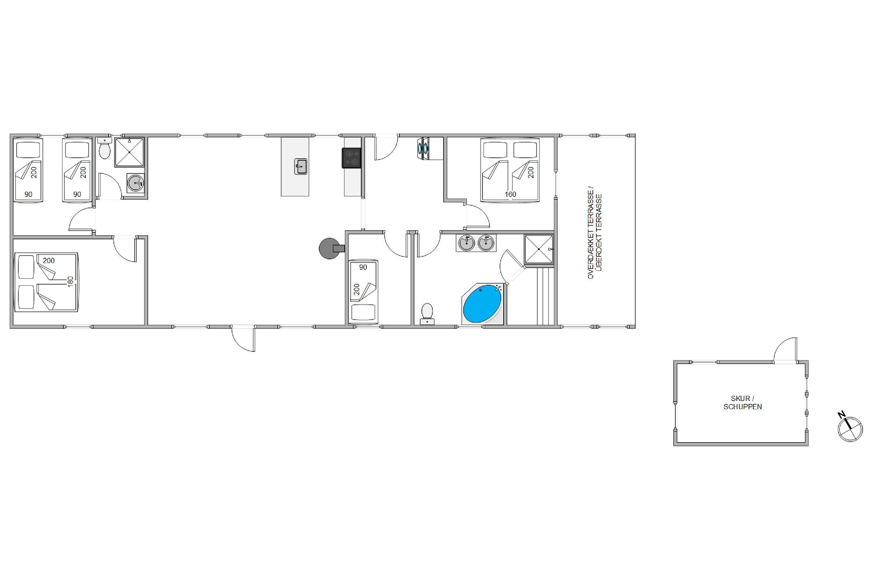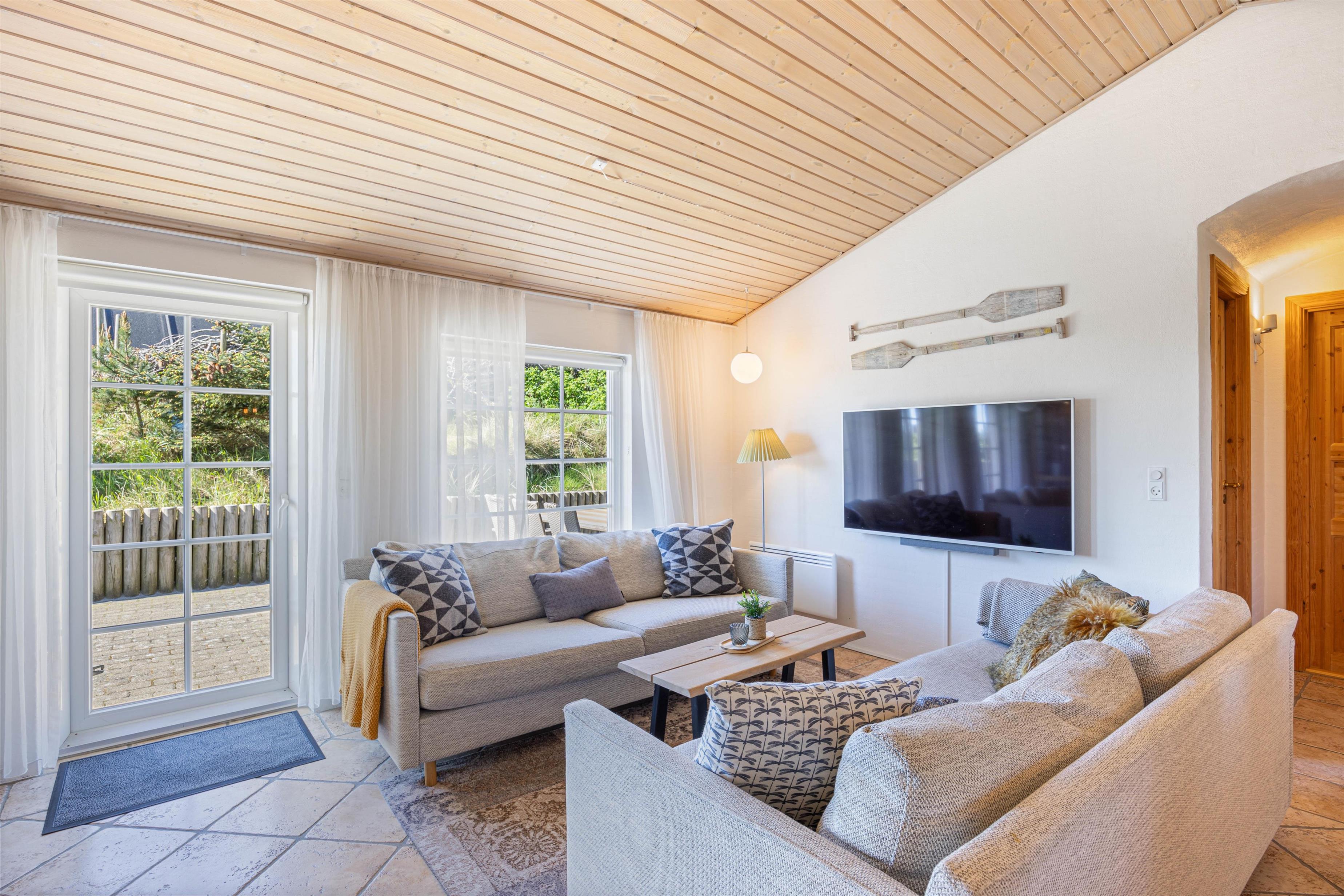 Sommerhuset på Troldedalen 67 er indrettet med alt, hvad I nogensinde skulle få brug for til en uforglemmelig ferie. Med 4 soverum, hvoraf 2 af værelserne har dobbeltsenge, kan I nyde en god nats søvn efter en dag fyldt med aktiviteter. For at tilgodese jeres komfort byder sommerhuset på 2 badeværelser, hvoraf det ene inkluderer en sauna eller et dejligt badekar – perfekt til afslapning efter en dag på stranden eller en gåtur i klitterne.