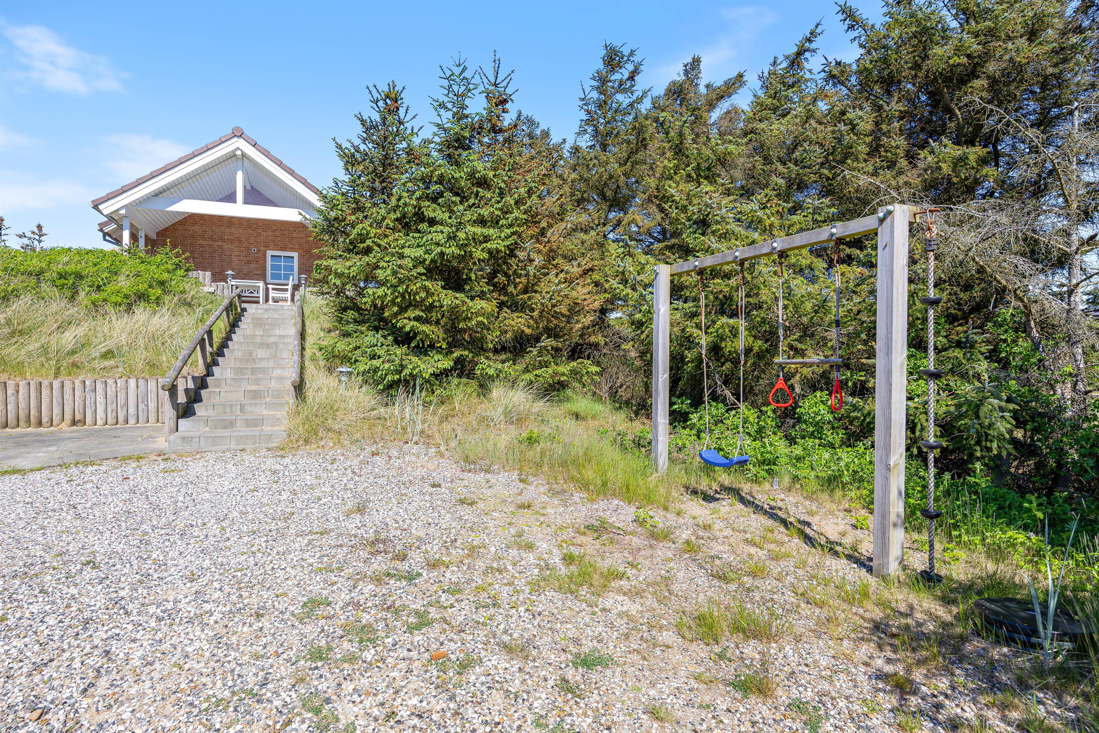 Fordi grunden omkring sommerhuset er så godt afskærmet, vil I her opleve masser af privatliv og læ. Børnene kan lege på gyngen i den store klitgrund på 1.311 kvadratmeter, mens I nyder den friske havluft.