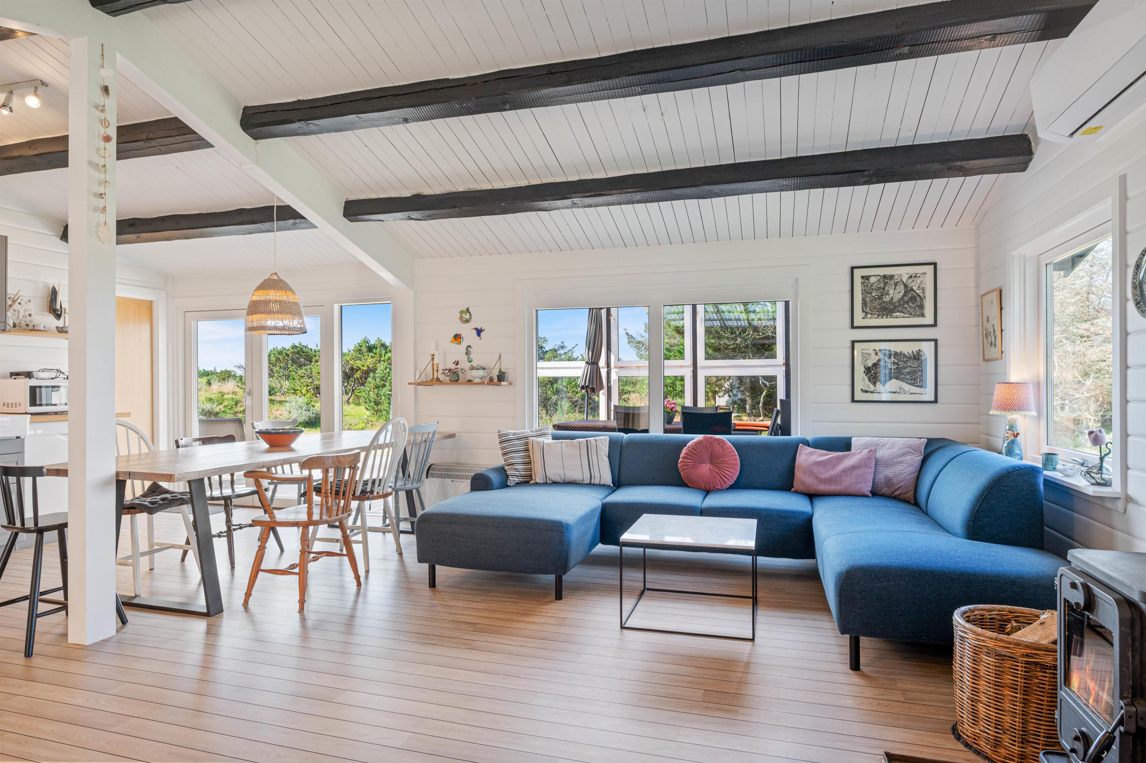 Der er ingen tvivl om, at Sneppedalen 56 er noget ganske særligt. Og straks I træder ind ad døren, vil I mærke den specielle stemning, der formår at kombinere den klassiske sommerhusatmosfære med en moderne New Yorker-vibe. Det er næsten noget storby-taglejlighed over sommerhuset – selvom det ligger i det vestjyske hedelandskab.