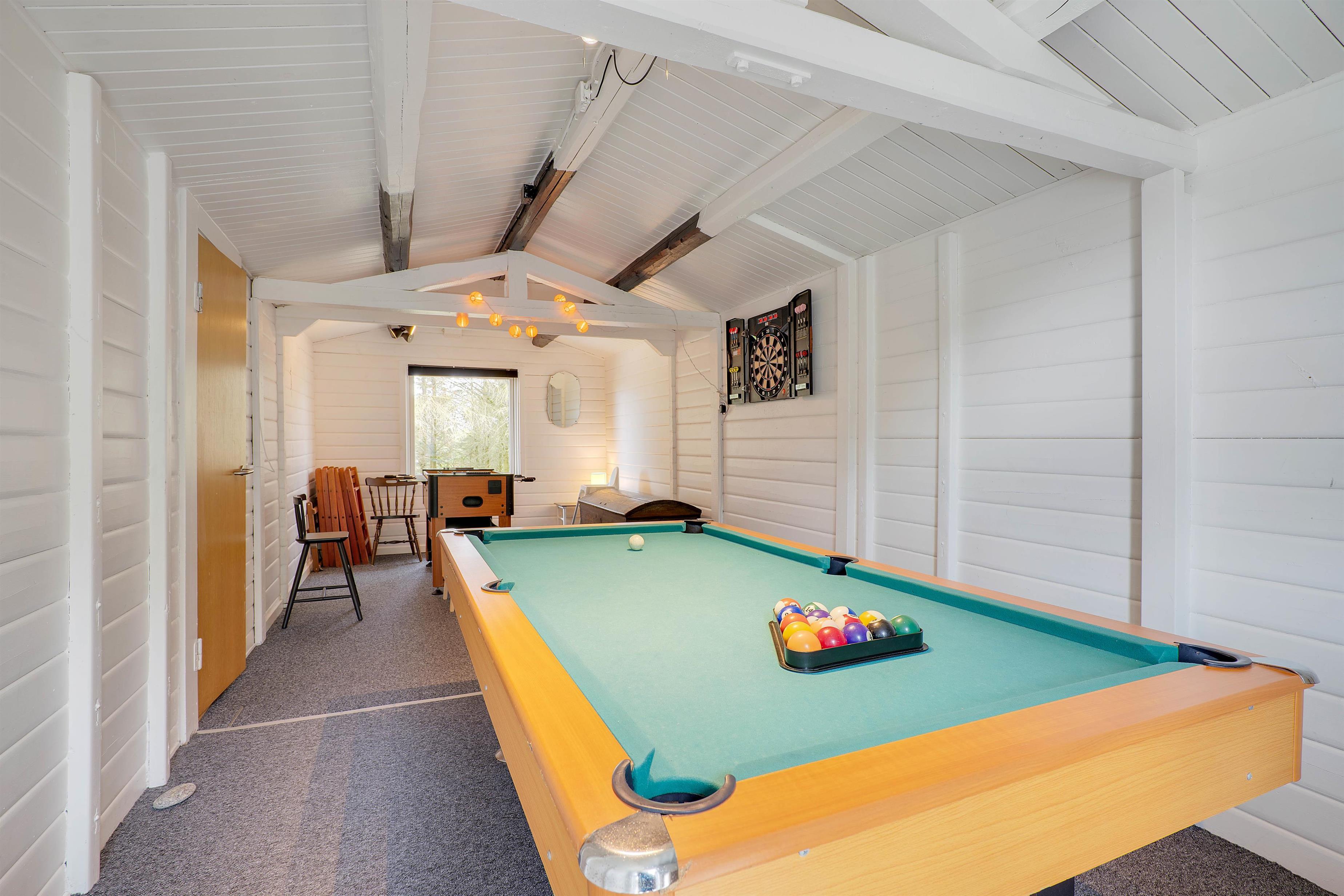 Lækkert aktivitetsrum med poolbord, dart og fodboldbord