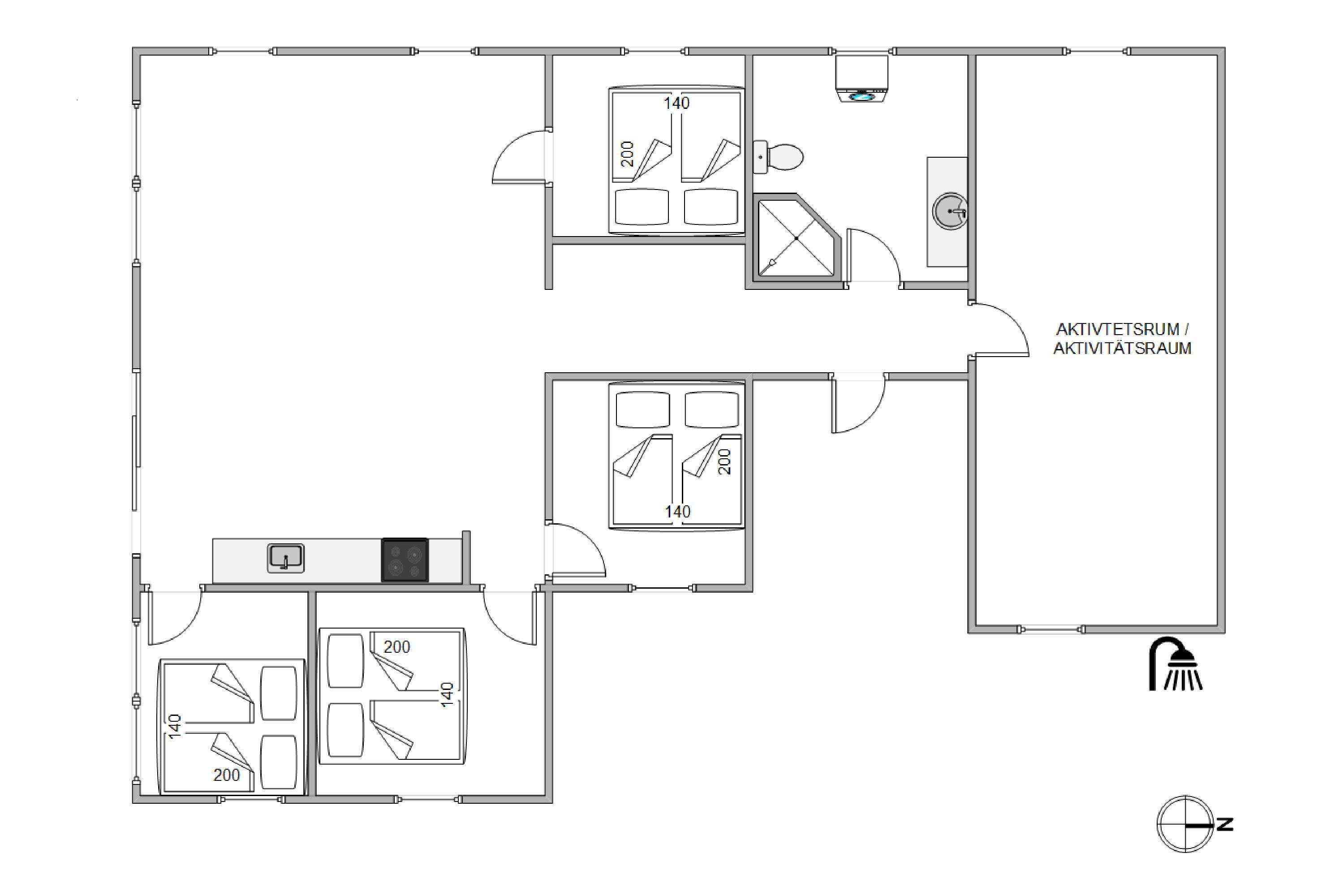 Selvom aktivitetsrummet kan være ganske vanedannende, så er det langt fra det eneste lokkende ved sommerhuset i Houvig. For huset ligger kun 450 meter fra Vesterhavet, der kan nås på gåben i løbet af 5-10 minutter. Har i været en tur i vandet, har i mulighed for at skylle det værste sand af kroppen, ved at bruge feriehusets udebruser. OBS. Udebruseren er åben i perioden april-november.