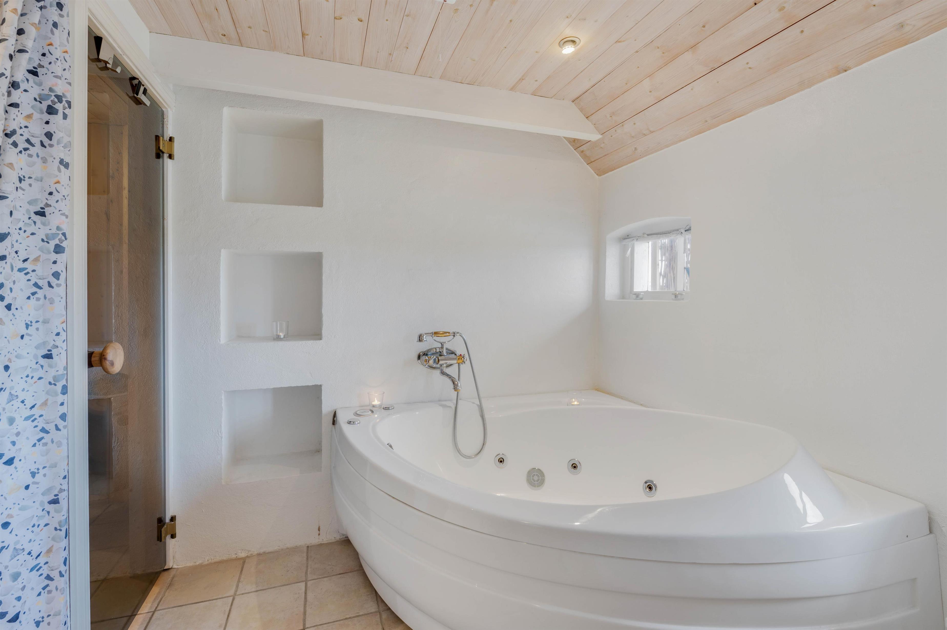 På det ene badeværelse kan I nyde spabadet efter en gåtur ved stranden. I den ene stue finder i desuden en hyggelig alkove. Begge stuer ligger hver især i forlængelse af køkkenet og spiseafdelingen. Der er både vaskemaskine og tørretumbler i hver afdeling af feriehuset, derfor behøver I ikke at bekymre jer om de praktiske gøremål.
