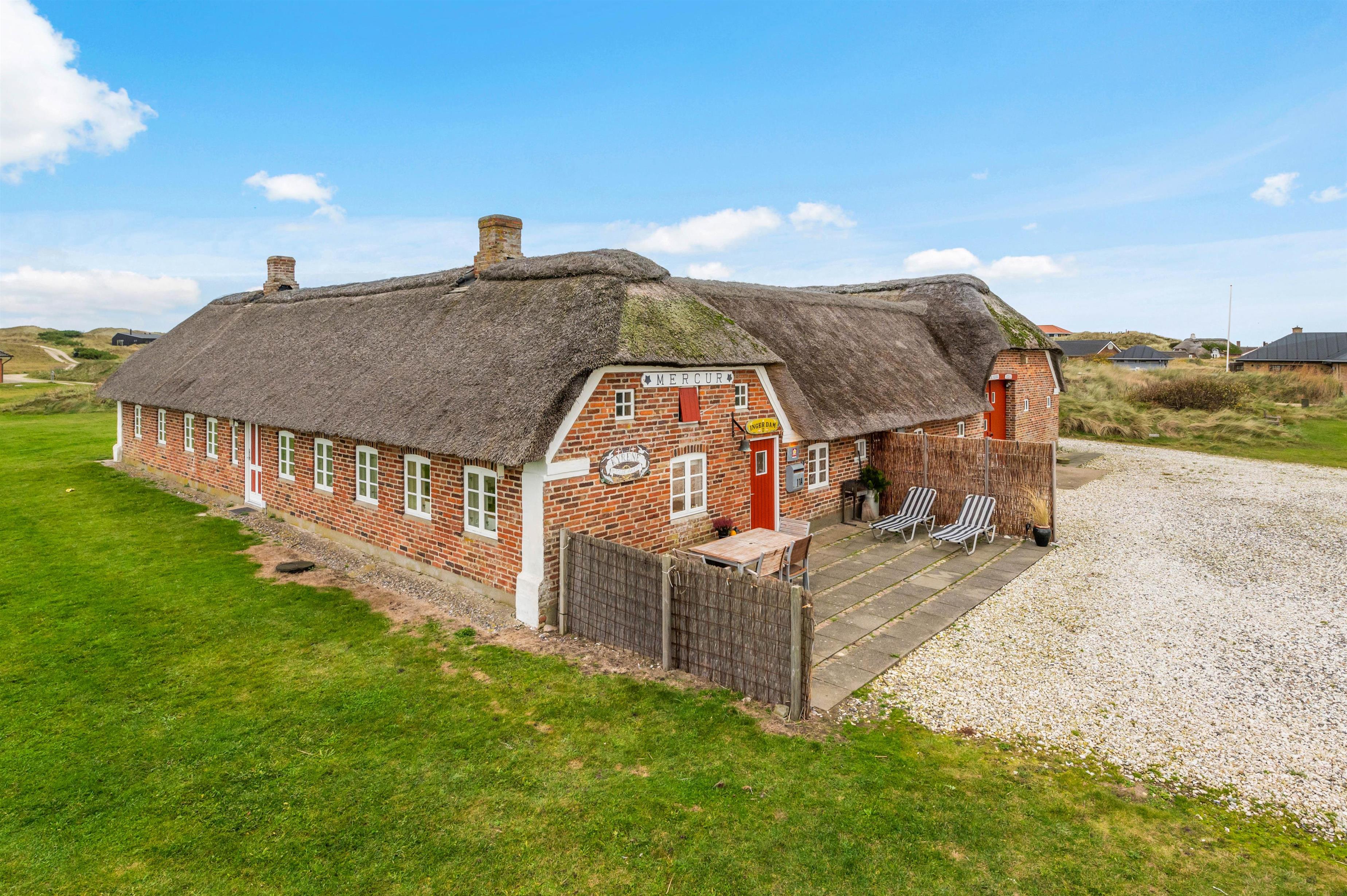 Ønsker I at holde ferie tæt på Vesterhavet, og leder I efter et anderledes, men hyggeligt og charmerende sommerhus med spabad og sauna? Så er dette feriehus på Houvig Klitvej 11 et godt valg for jer. Det stråtækte feriehus er et oplagt valg til den store familie, eller hvis I som 2 familier ønsker at holde ferie sammen. Med til det 150 m2 store feriehus er der en 30.000 m2 stor og ugeneret naturgrund, hvor børnene og jeres 2 hunde har rig mulighed for at brænde krudt af.