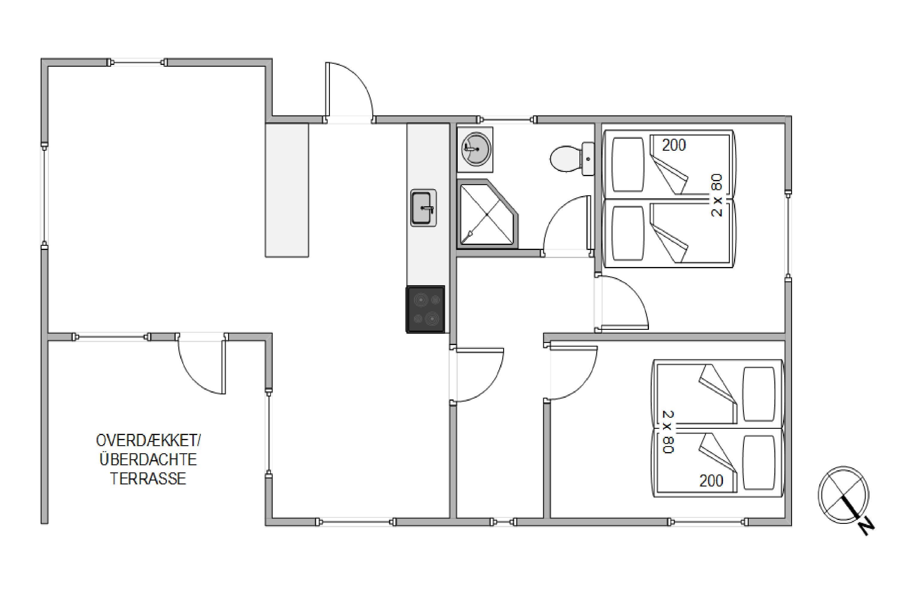 I får ikke kun et hyggeligt indre, men også et skønt og ugeneret uderum. 2 overdækkede og afskærmede terrasser sørger for, at I stort set hele året rundt kan nyde udsigten til den flotte natur, I er omgivet af. Der er også en lille, åben siddekrog, hvor I kan sætte jer til rette i solen med en god bog eller en kold drink. Alle de gode terrasser gør det også muligt for jer, at nyde solen stråler alle tider på dagen.