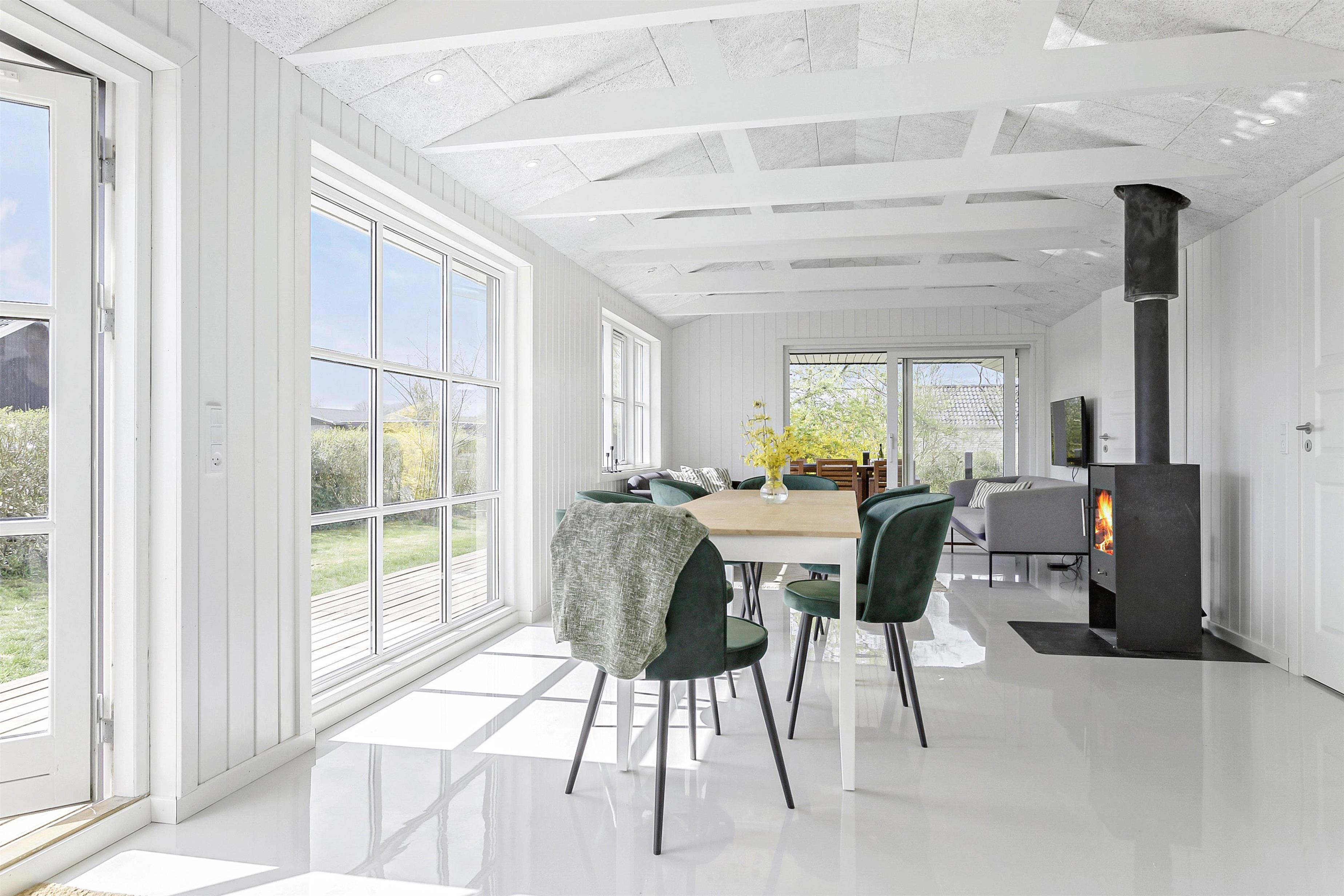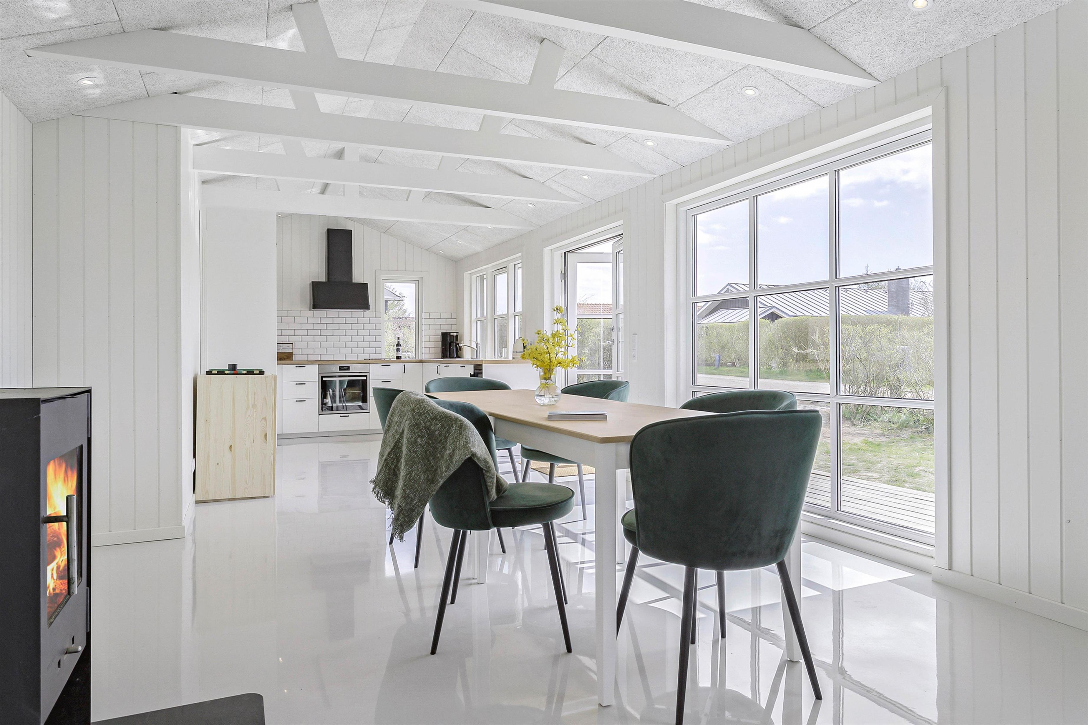 Sommerhuset i Houvig er indrettet til at maksimere afslapning og velvære. En dejlig brændeovn skaber en hyggelig stemning i stuen, mens gulvvarme i badeværelset sikrer varmen under vinterbesøget. Ejendommen udmærker sig med en imponerende udendørs spa og sauna, hvor hver gæst kan forkæles med selvforkælelse. Den tilhørende udebruser gør overgangen mellem spaen og saunaen til en fornøjelse. Efter en dag i den friske havluft kan I slappe af og nyde varmen fra den energibesparende luft-til-vand varmepumpe, som sørger for et behageligt indeklima hele året rundt.
