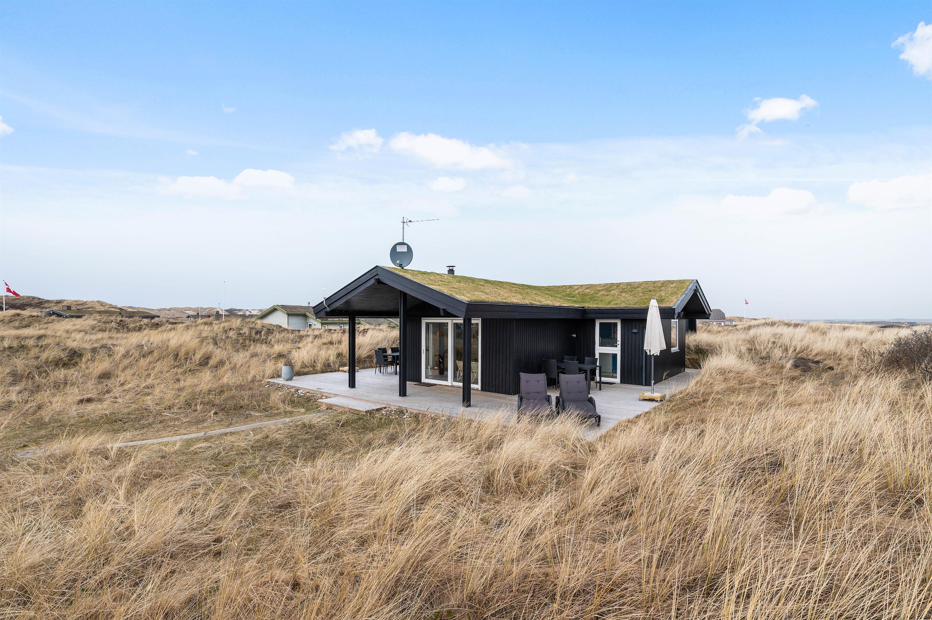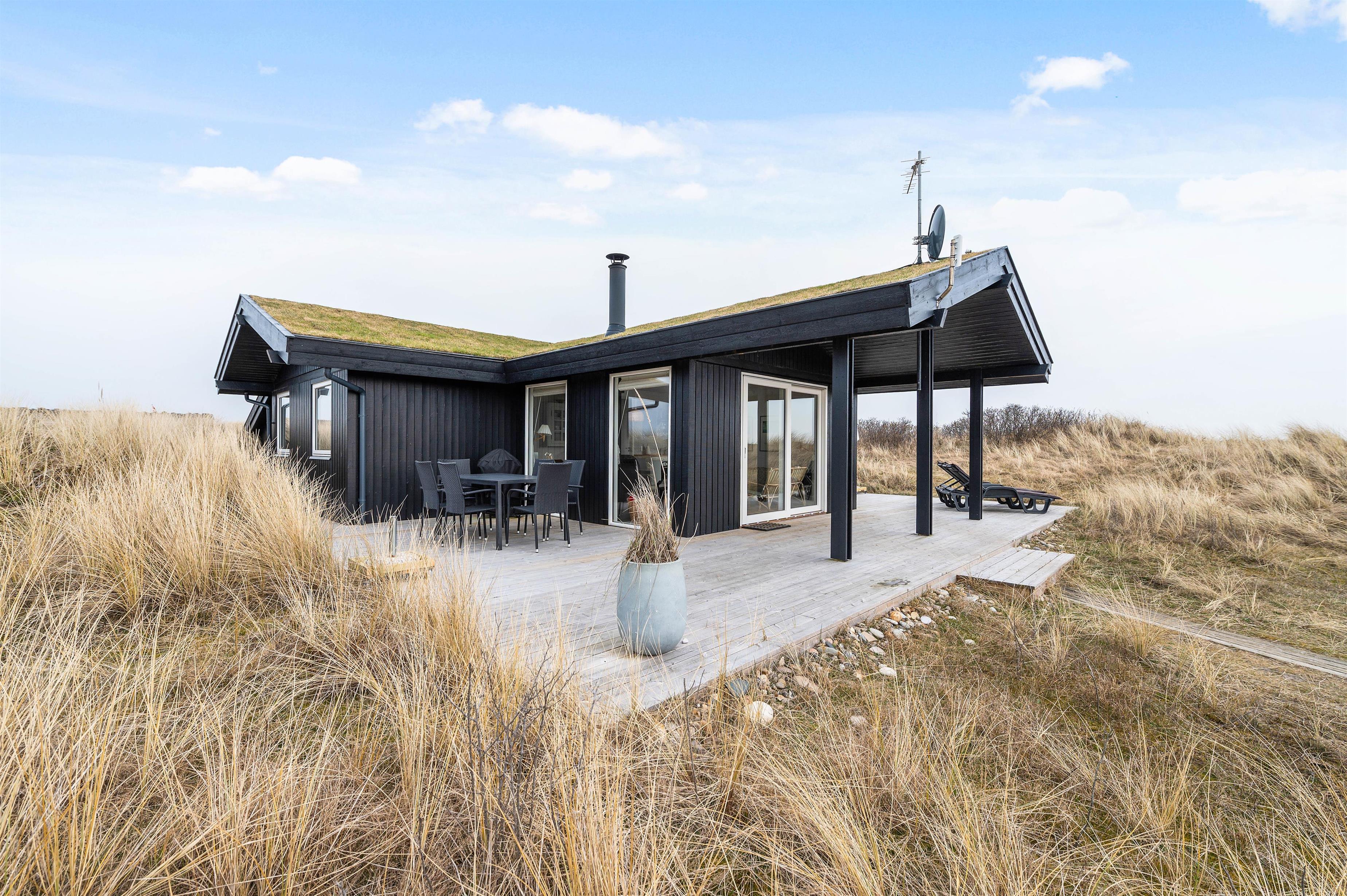 Feriehuset har en skøn, delvist overdækket træterrasse, som går halvvejs rundt om huset med siddepladser både på øst- og vestsiden, så I kan følge solen dagen lang. Der er masser af hyggelige kroge, hvor I kan sidde i ro og fred med en god bog og en friskbrygget kop kaffe.
