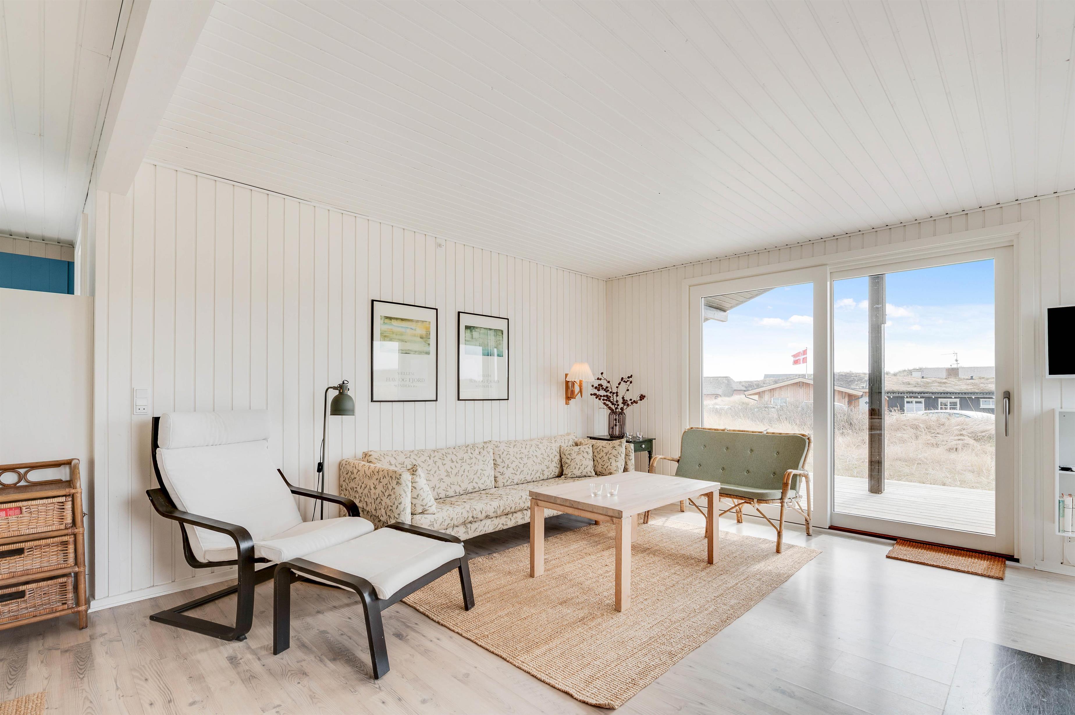 Ferieidyllen er helt i top, og brændeovnen i stuen sætter prikken over i'et. De knitrende flammer sørger for god varme selv på de køligste vinterdage og spreder en afslappende og hyggelig stemning. De store vinduer giver jer udsigt til den skønne natur, som kan nydes både på solrige sommerdage og blæsende efterårsdage.