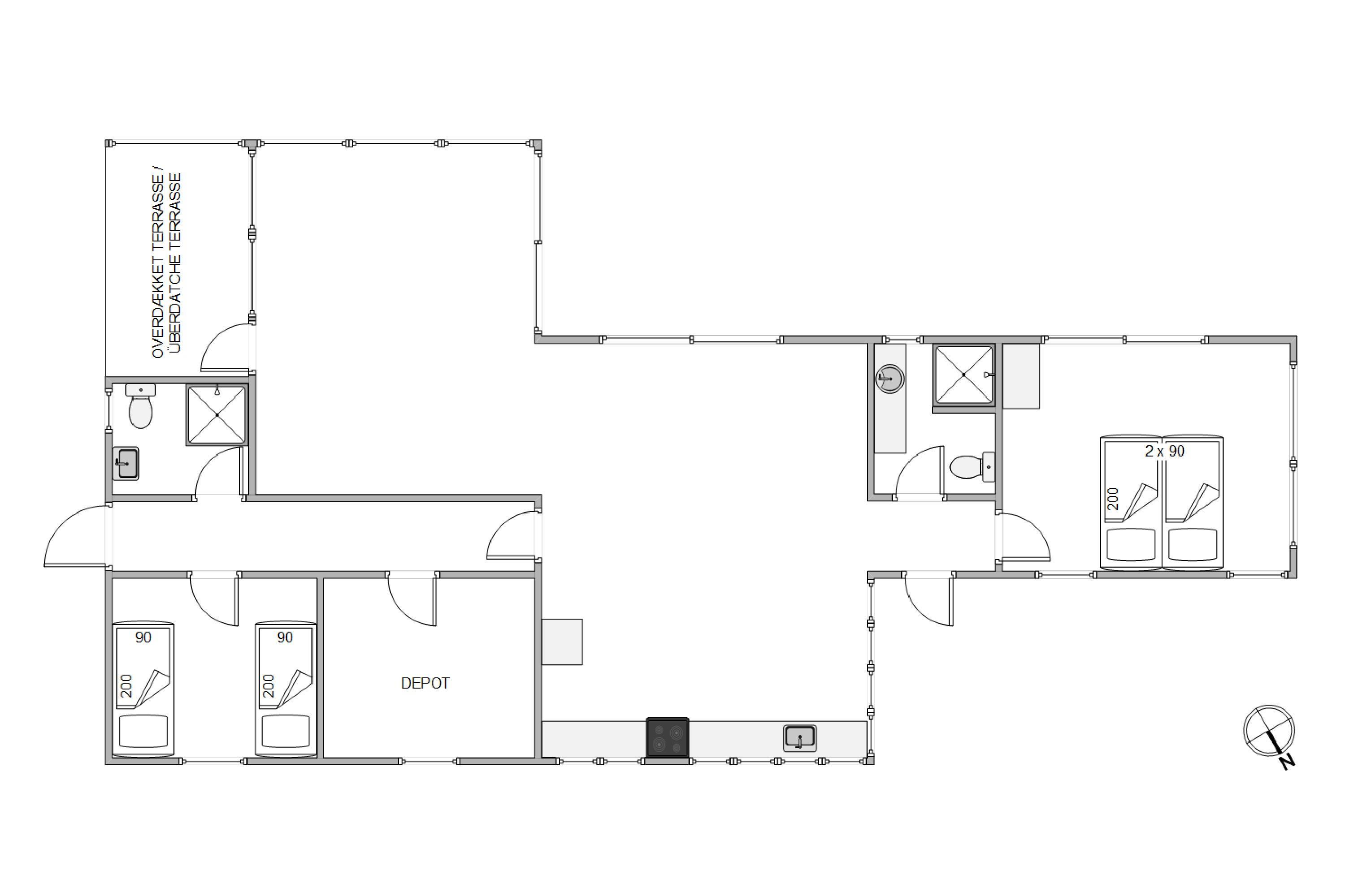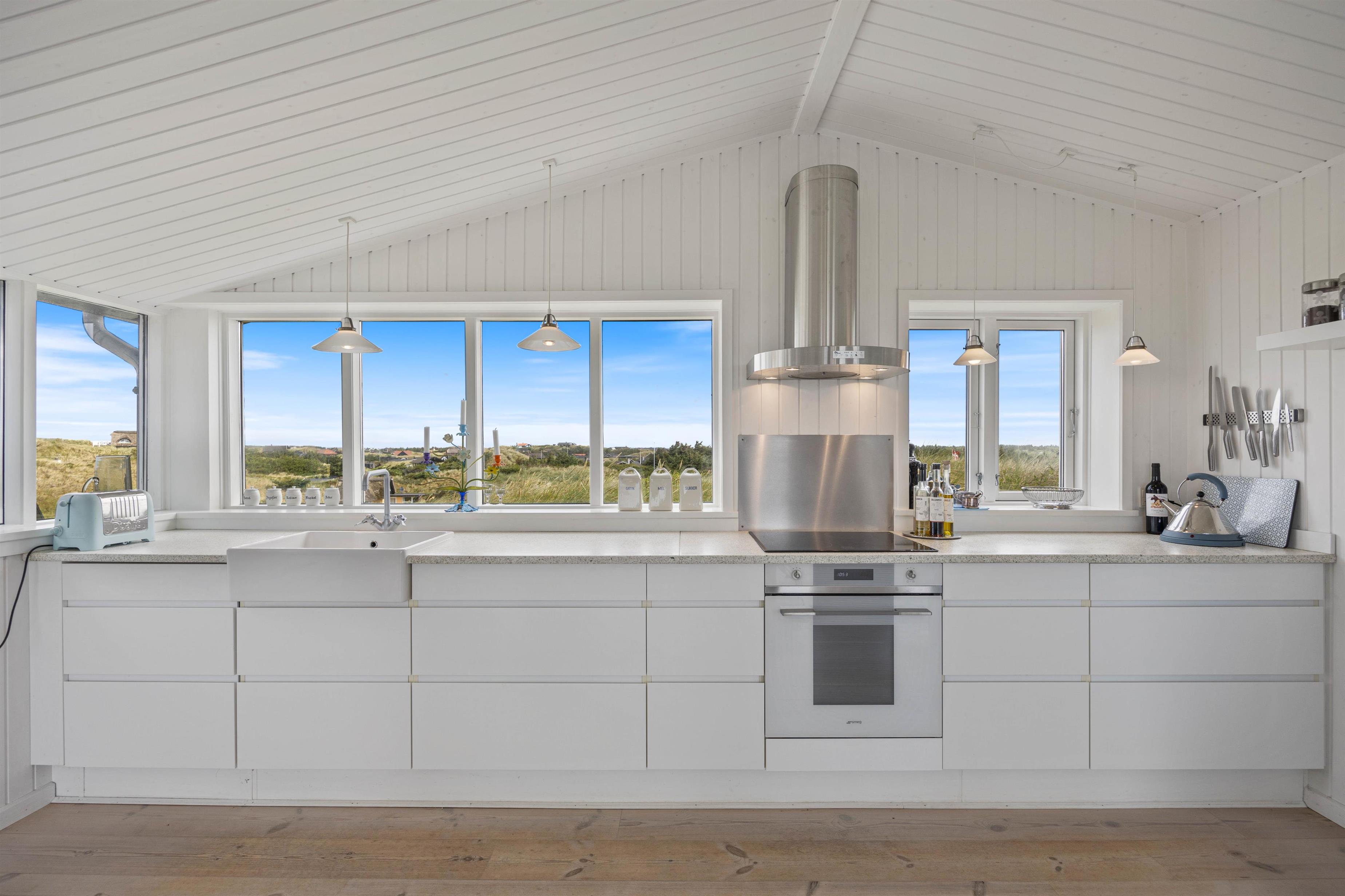 Med 100 kvadratmeter husareal er der rigelig plads at sprede sig på og nyde ferien fuldt ud. Det åbne køkken-alrum som også ligger i åben forbindelse med stuen, sikrer at I hele tiden kan være sammen, samt det skaber et hyggeligt samlingssted for både afslapning, aktiviteter og måltider.