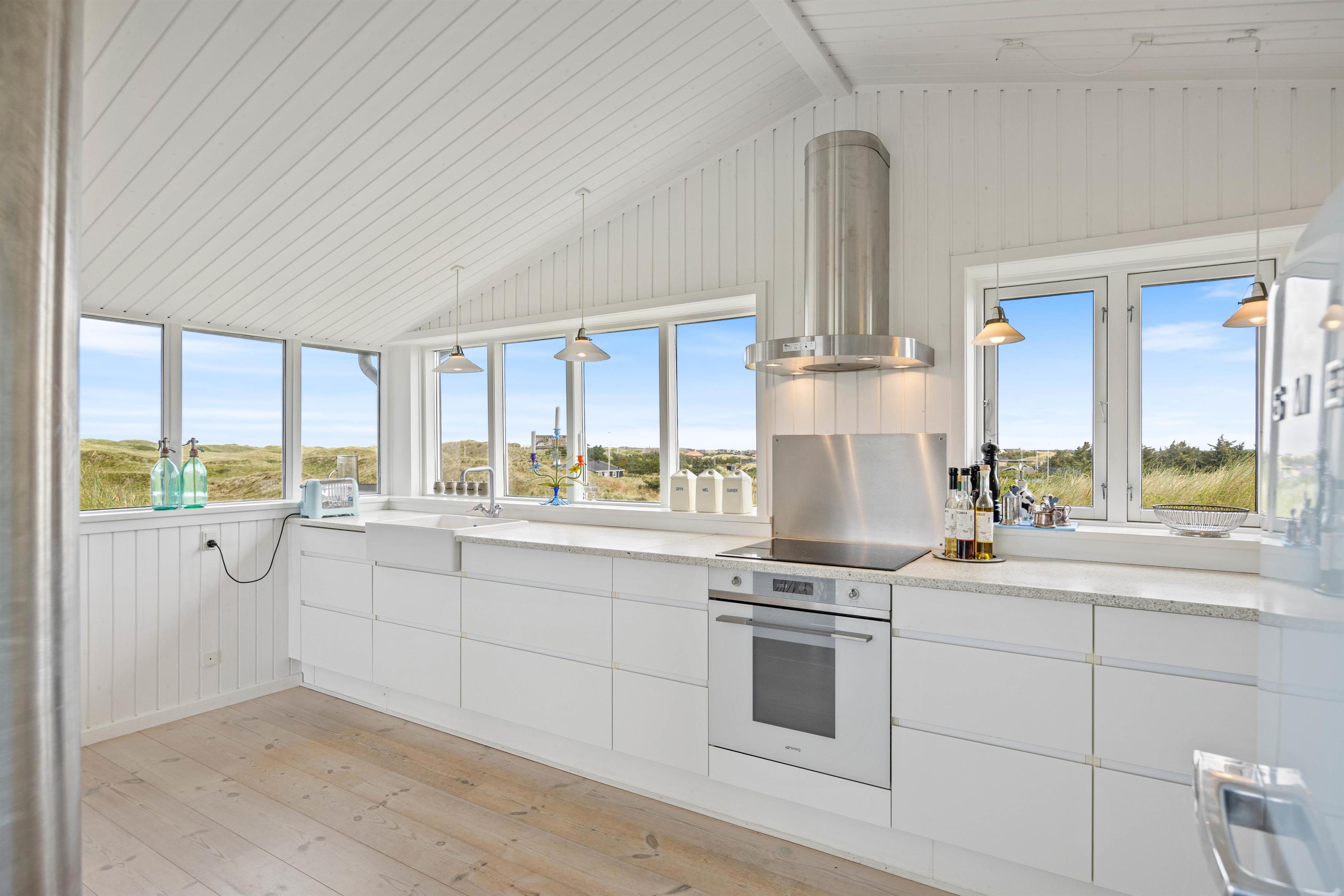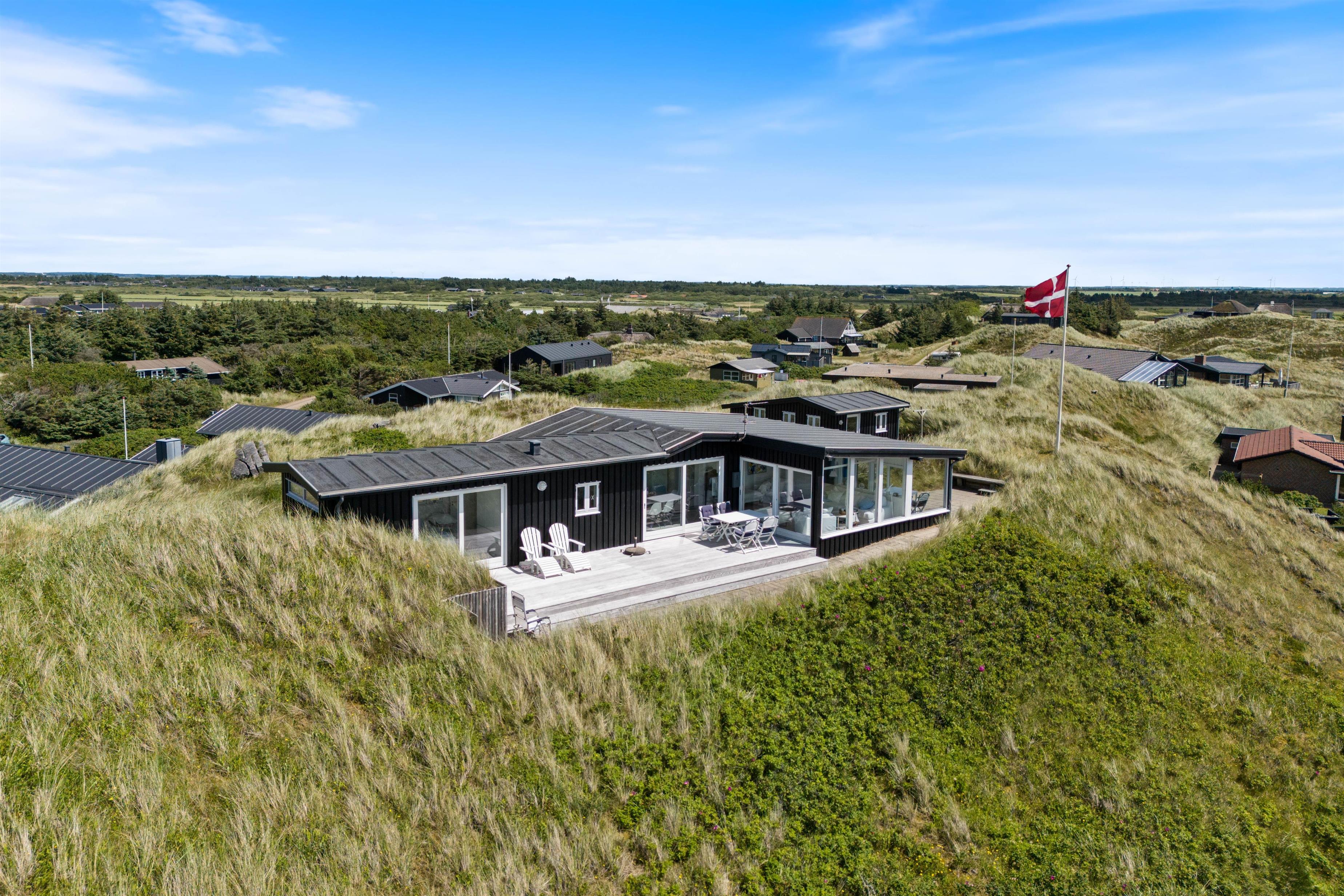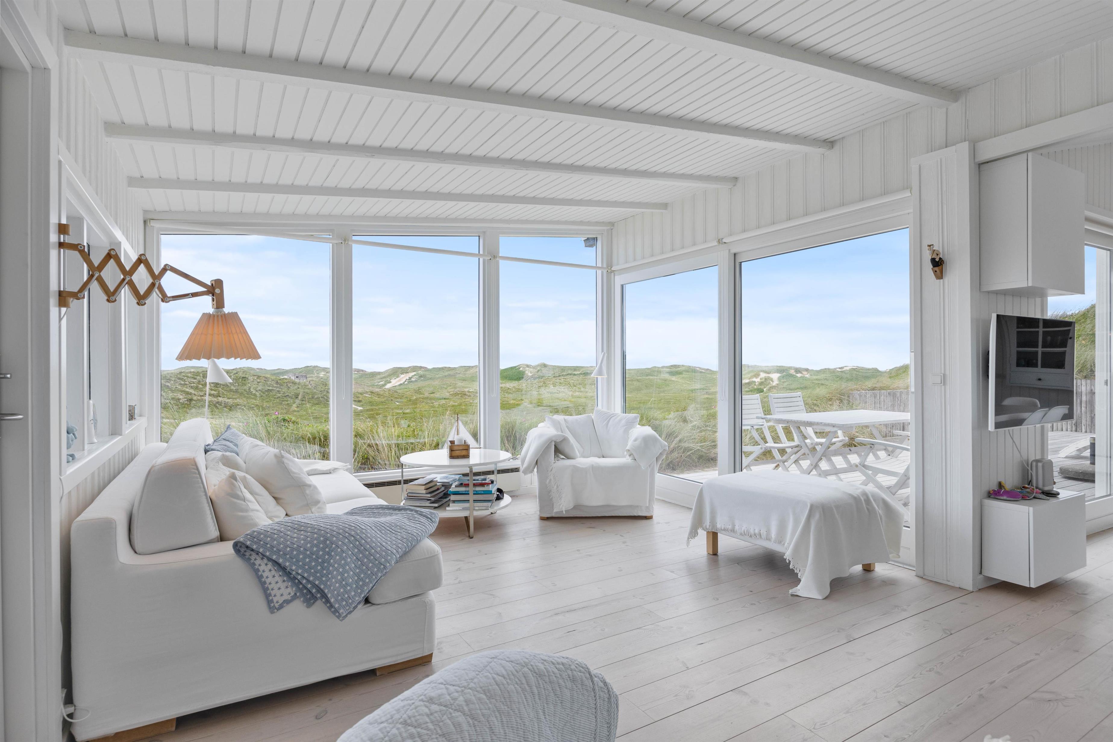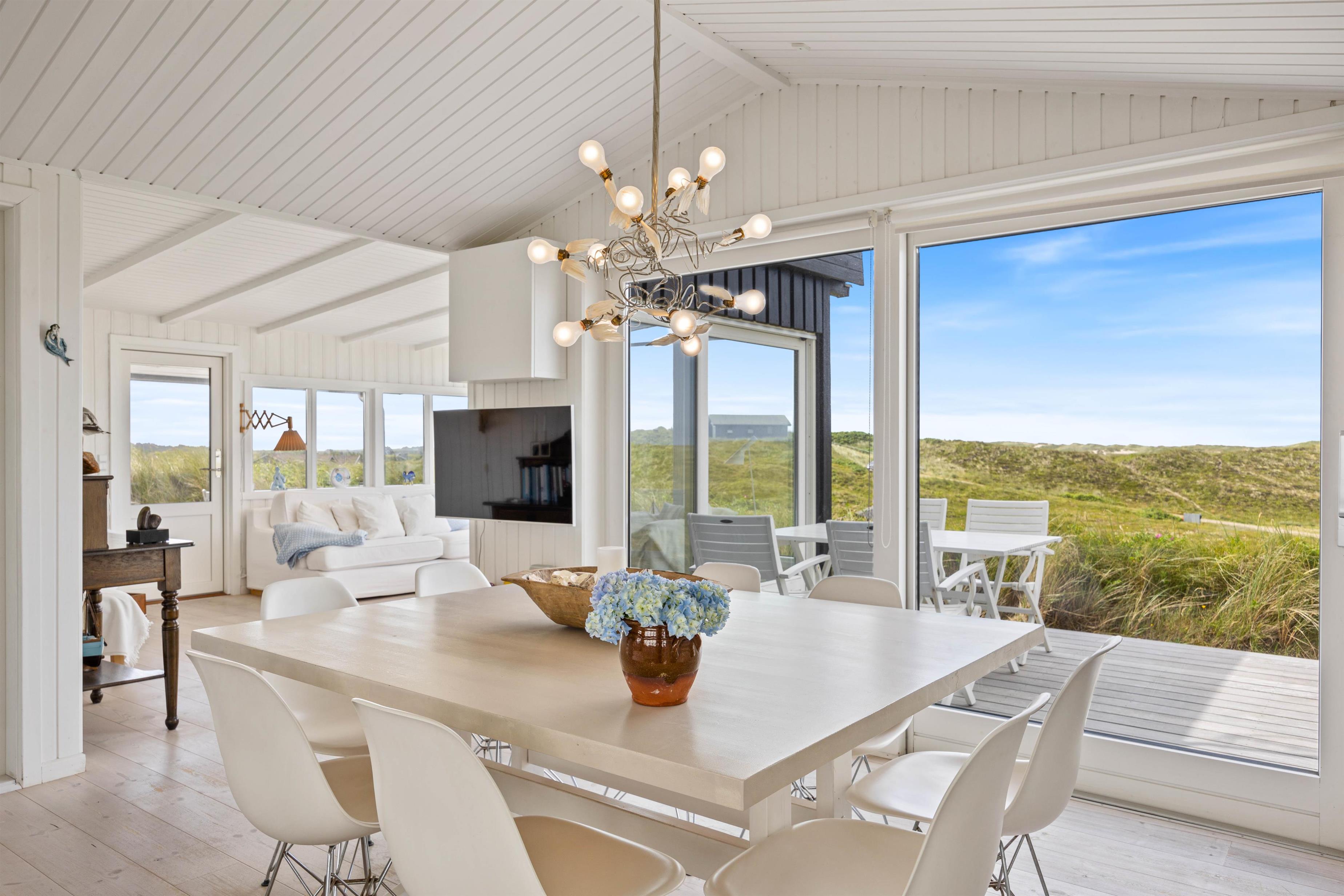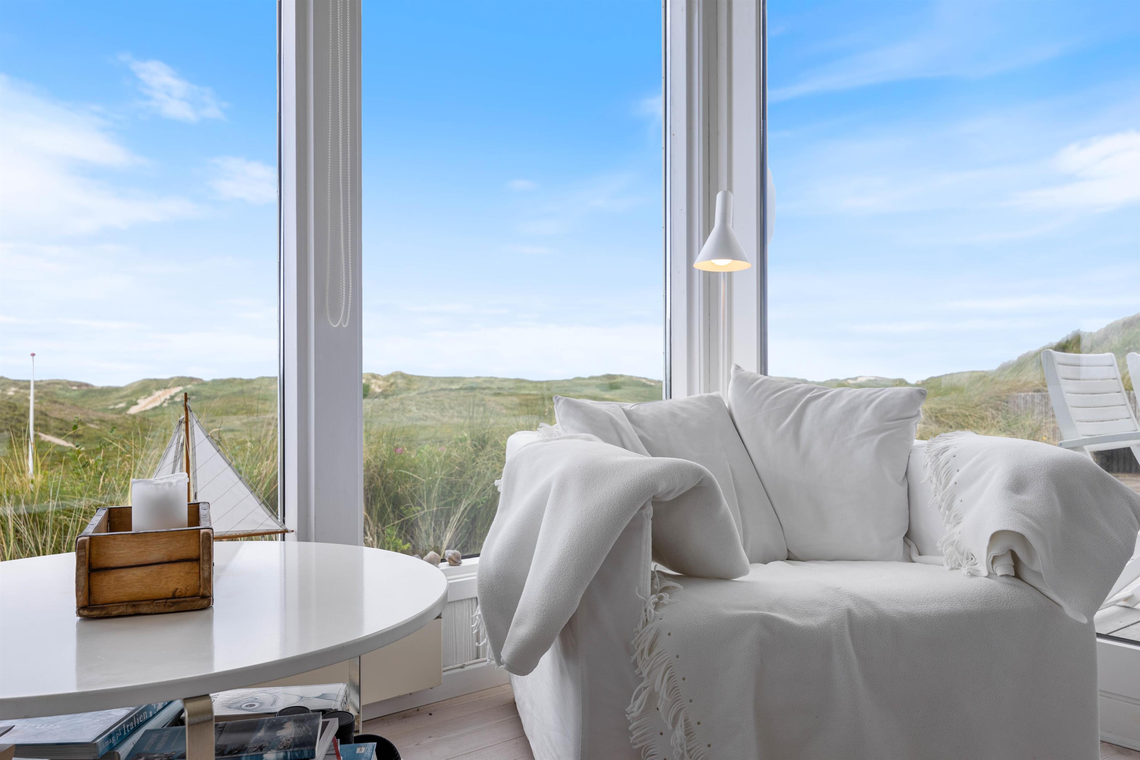 En af de mest imponerende egenskaber ved dette sommerhus i Houvig, er panoramaudsigten ud over det skønne klitlandskab og det brusende Vesterhav, som kan nydes fra flere steder i sommerhuset. Om det er fra stuen med de store vinduespartier, fra den overdækkede terrasse eller en af de mange andre hyggelige kroge rundt om feriehuset, så vil I altid have en fantastisk udsigt over den smukke natur, der omgiver sommerhuset. Dette feriehus kombinerer moderne bekvemmeligheder med en naturskøn beliggenhed, hvilket gør det til det perfekte valg for jeres næste feriedestination.