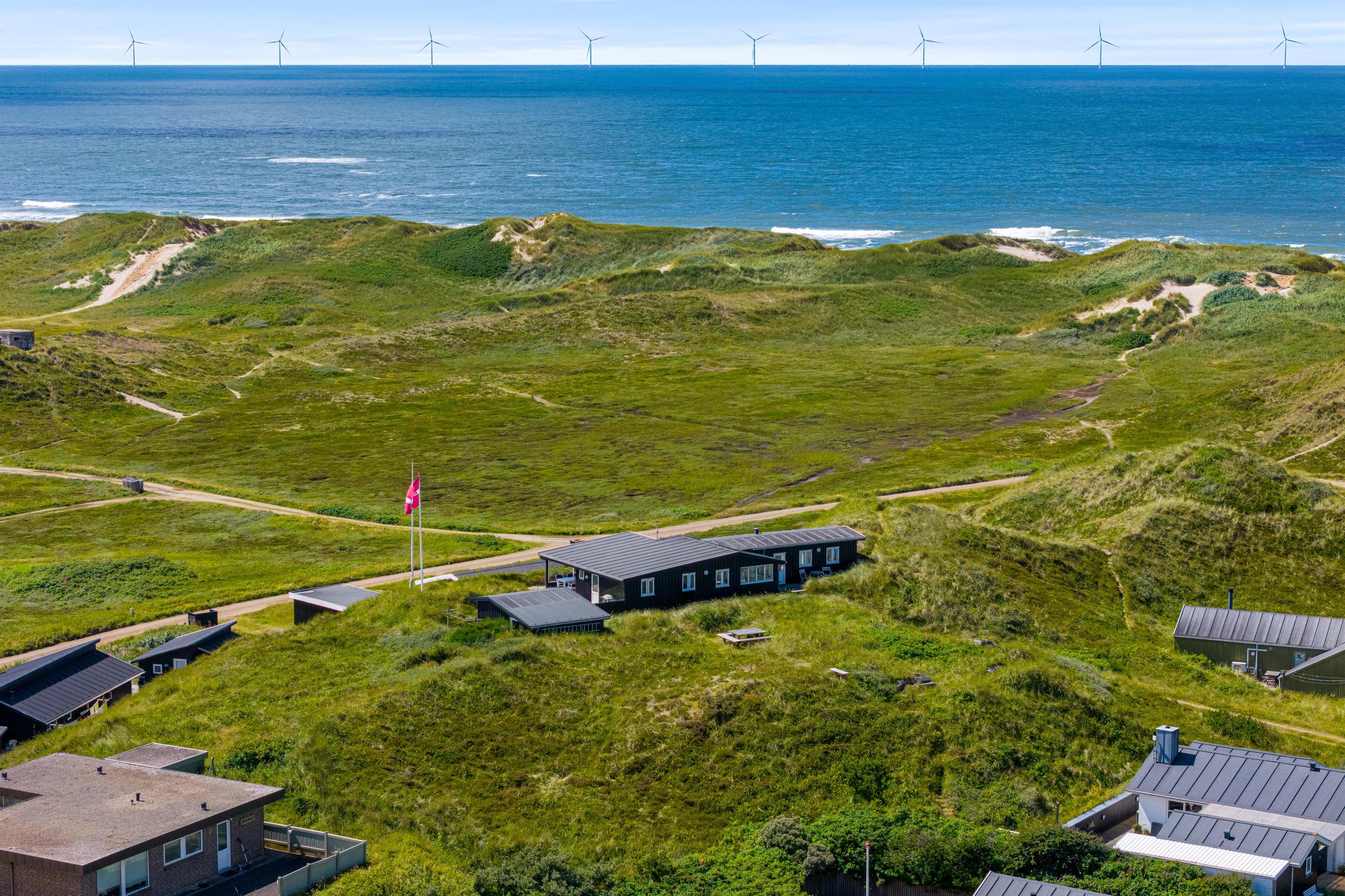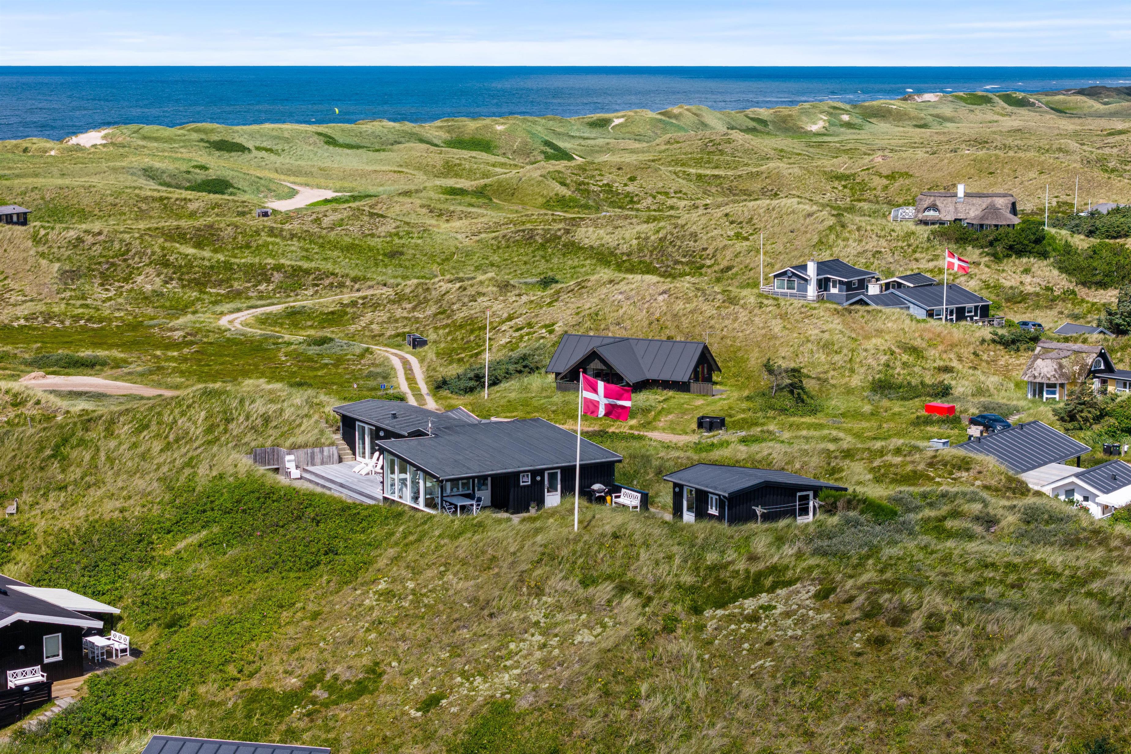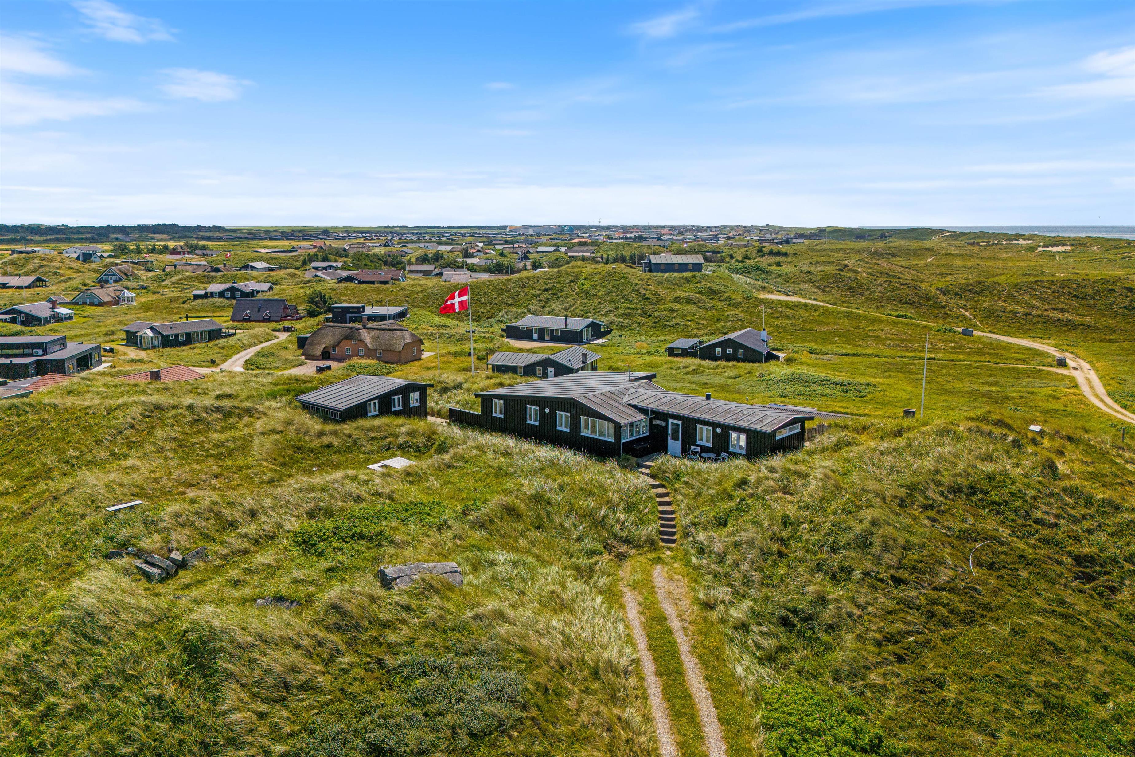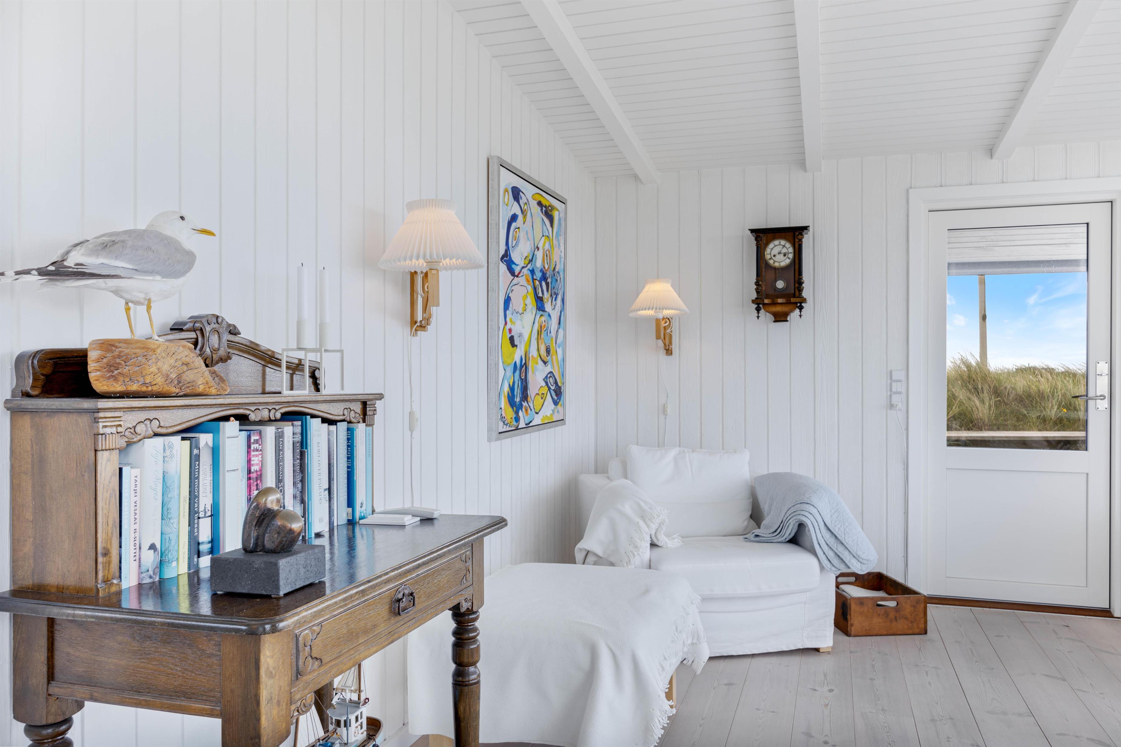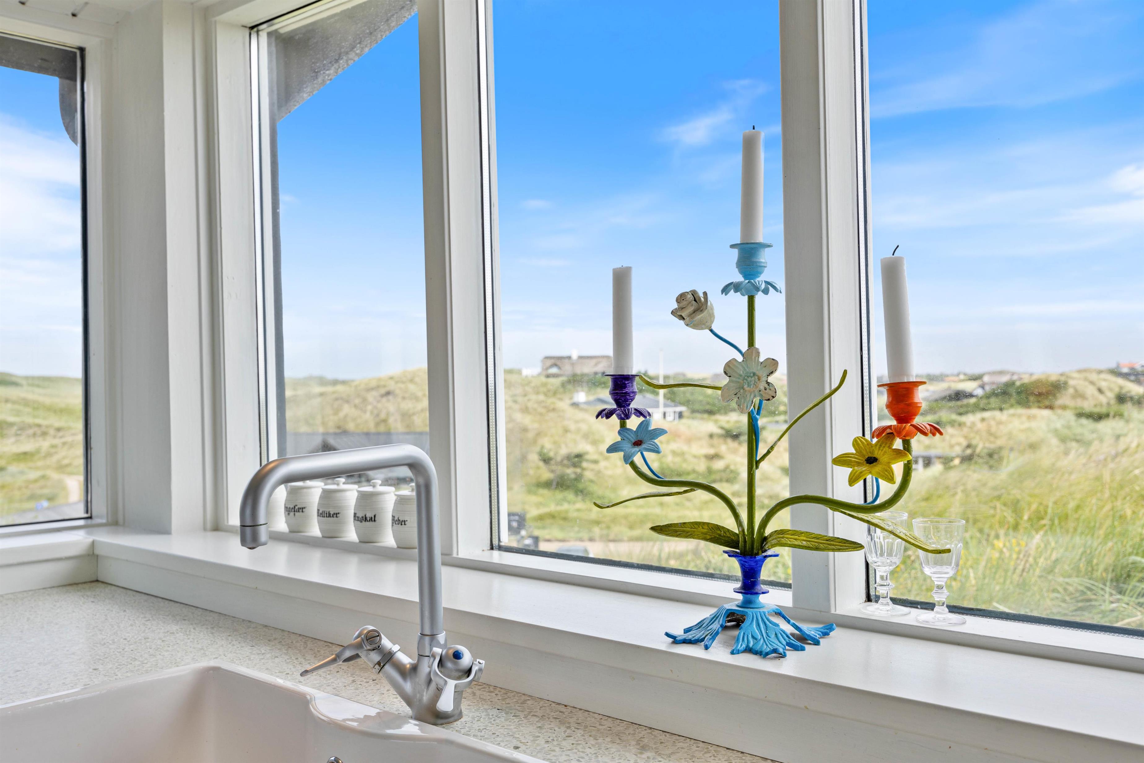 En af de mest imponerende egenskaber ved dette sommerhus i Houvig, er panoramaudsigten ud over det skønne klitlandskab og det brusende Vesterhav, som kan nydes fra flere steder i sommerhuset. Om det er fra stuen med de store vinduespartier, fra den overdækkede terrasse eller en af de mange andre hyggelige kroge rundt om feriehuset, så vil I altid have en fantastisk udsigt over den smukke natur, der omgiver sommerhuset. Dette feriehus kombinerer moderne bekvemmeligheder med en naturskøn beliggenhed, hvilket gør det til det perfekte valg for jeres næste feriedestination.