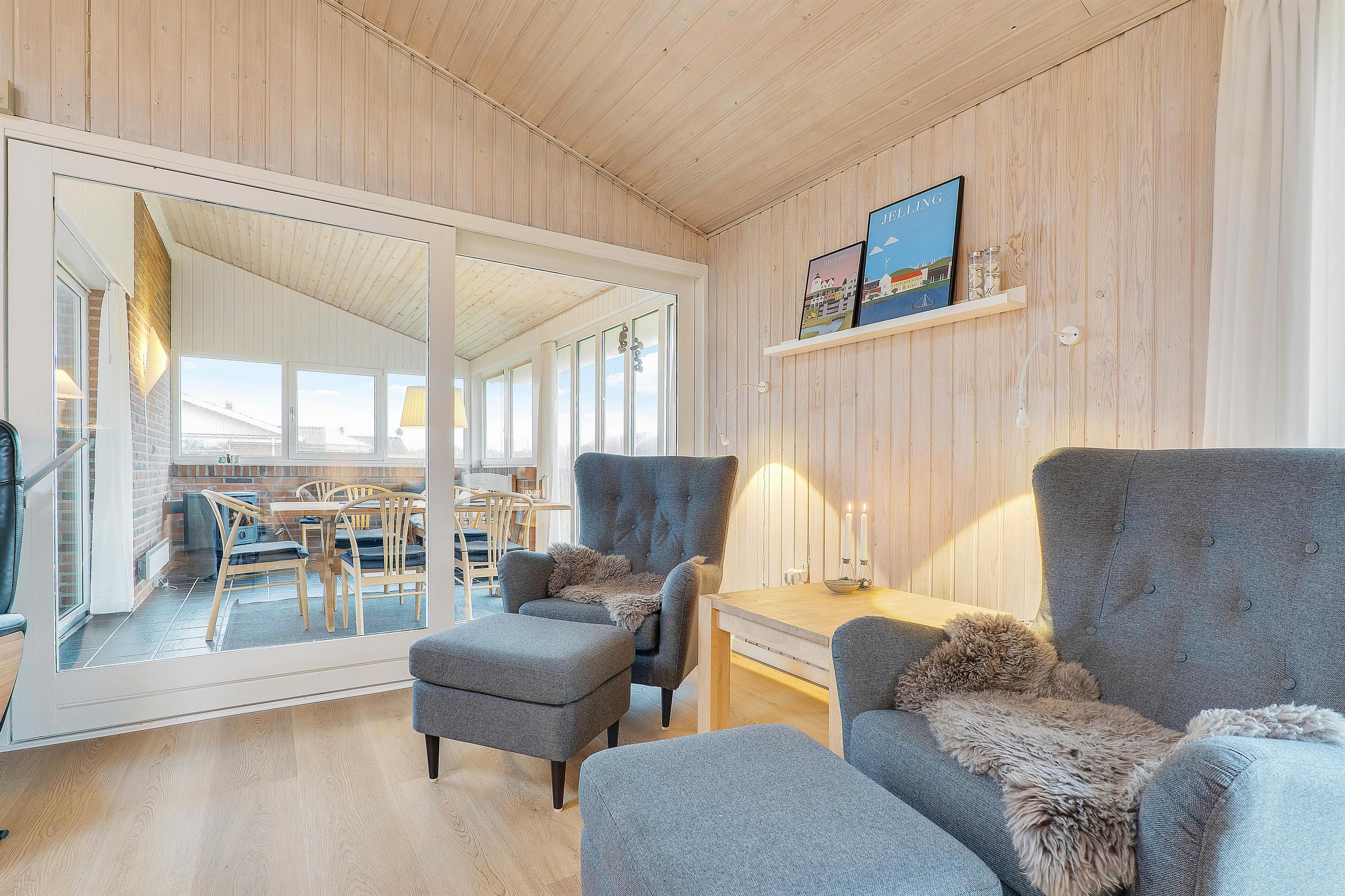 I har masser af muligheder for at slappe af, når I ankommer til sommerhuset i Houvig. Inde såvel som ude. Men også lidt midtimellem. Sommerhuset er nemlig udstyret med 2 skønne udestuer, der især er herlige at benytte på de lidt køligere sommerdage, eller når vejret er ustadigt med regndryp. Så kan I i ro og mag trække jer indenfor i udestuen og nyde udsigten over den flotte grønne grund.