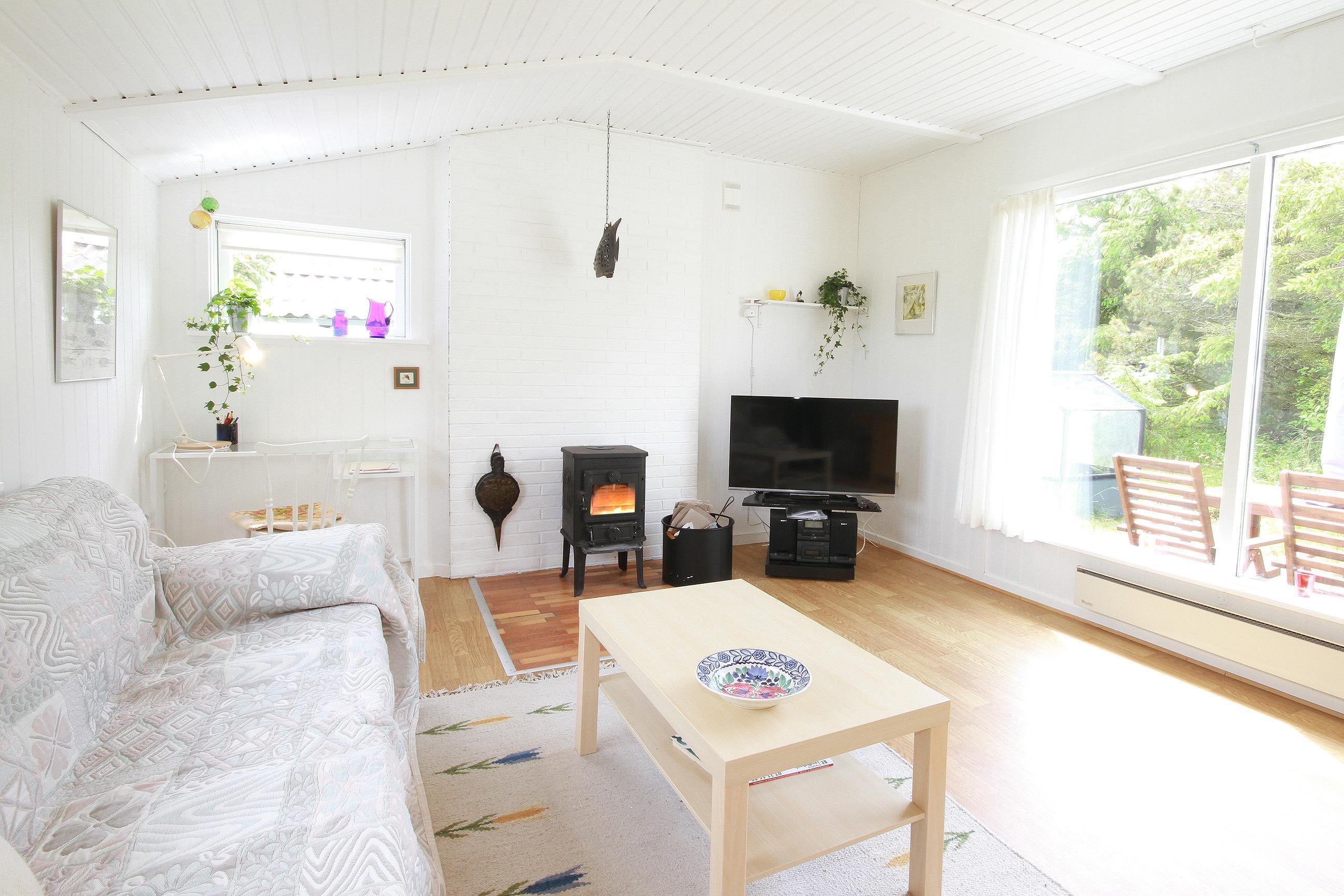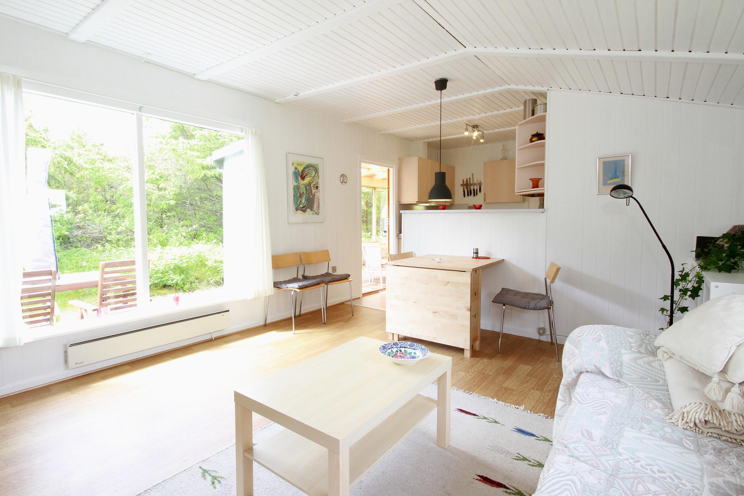 Sommerhuset har et dejligt opholdsrum med spiseplads, køkken og stue. I stuen er der gjort alt for at optimere på hyggen. Og I vil med garanti få et akut behov for at smide jer i sofaen med en god bog, mens I lytter til den stille knitren fra brændeovnen. Eller måske har I lyst til at holde filmaften foran fladskærms-tv’et med popcorn og kakao?