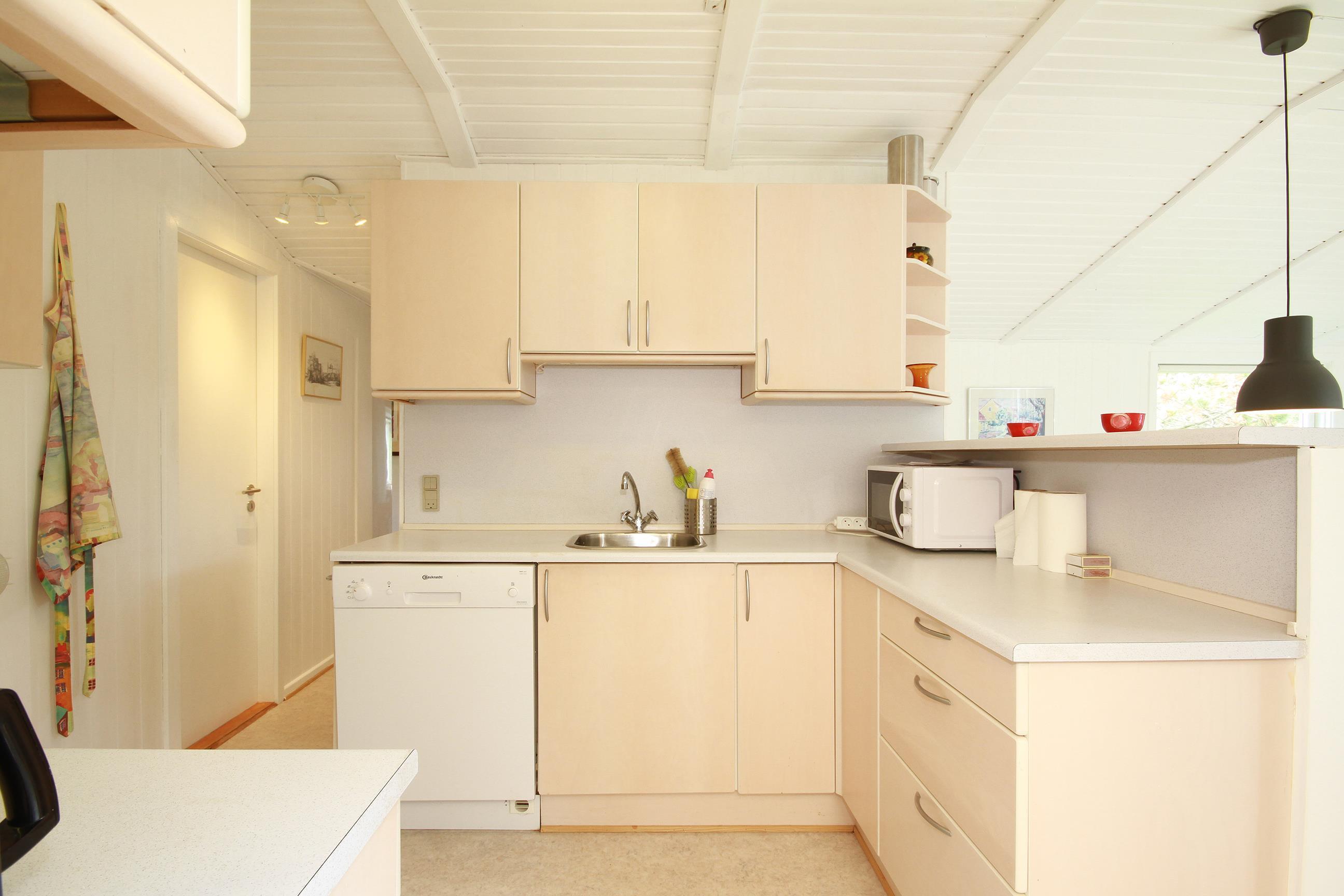 I køkkenet finder I alt det, I har brug for på jeres ferie. Køkkenet er praktisk indrettet og er blandt andet udstyret med opvaskemaskine, mikroovn og køleskab med 90 liters frysekapacitet. Så bare rolig: isbådene er i sikker forvaring.