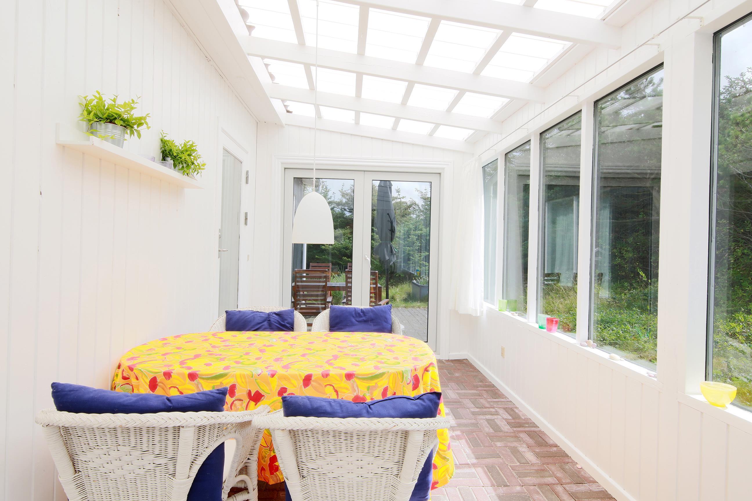 En af de helt store bonusser ved det hyggelige sommerhus i Houvig er den skønne udestue. Her kan I forlænge sommeren til langt ud på efteråret, eller blot nyde den stille regn på taget på de ustadige danske sommerdage. Udsigten fra udestuen er også eminent. Gennem de store vinduespartier kan I nyde de omkringliggende nåletræer på den fine naturgrund. Det er ren balsam for sjælen.