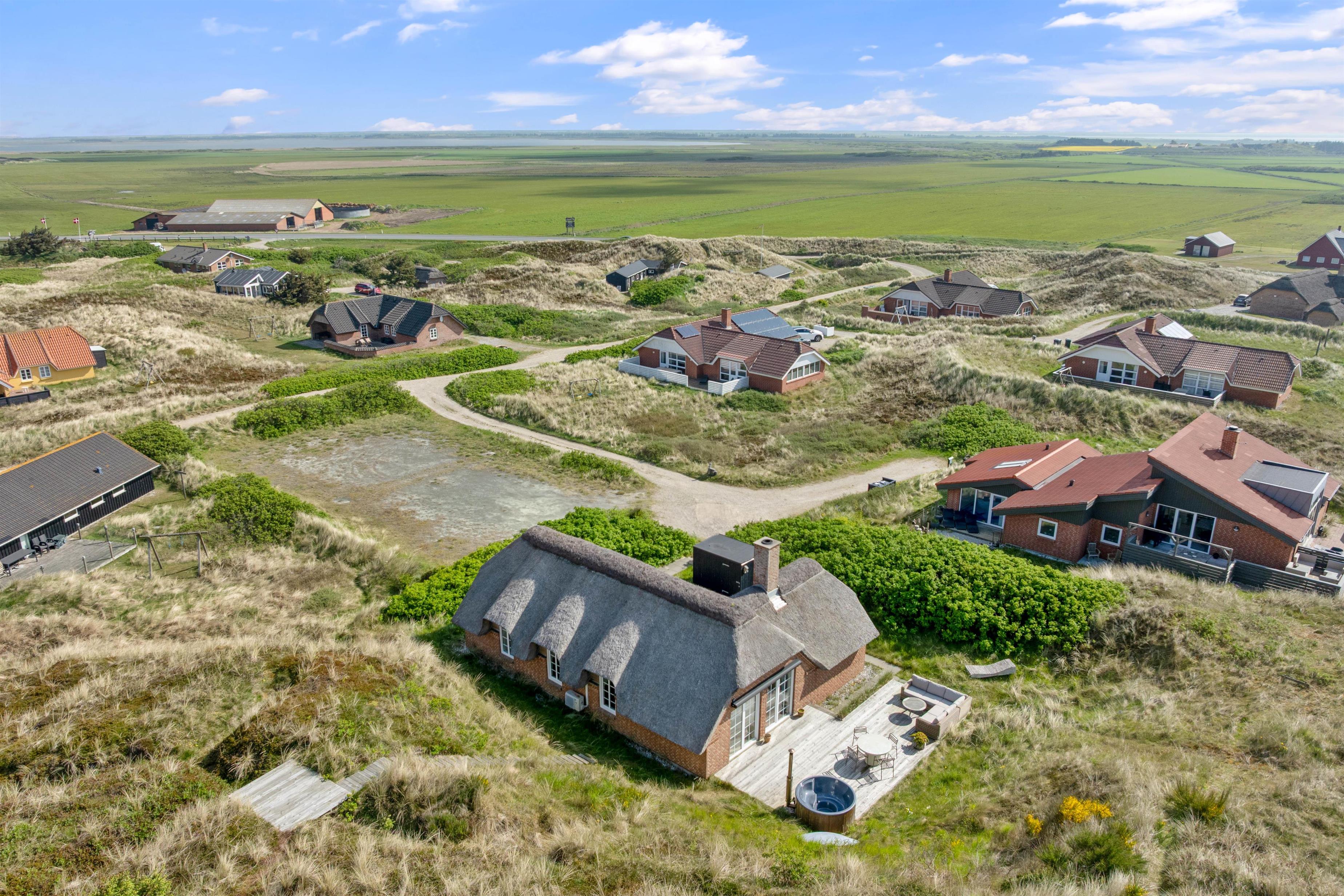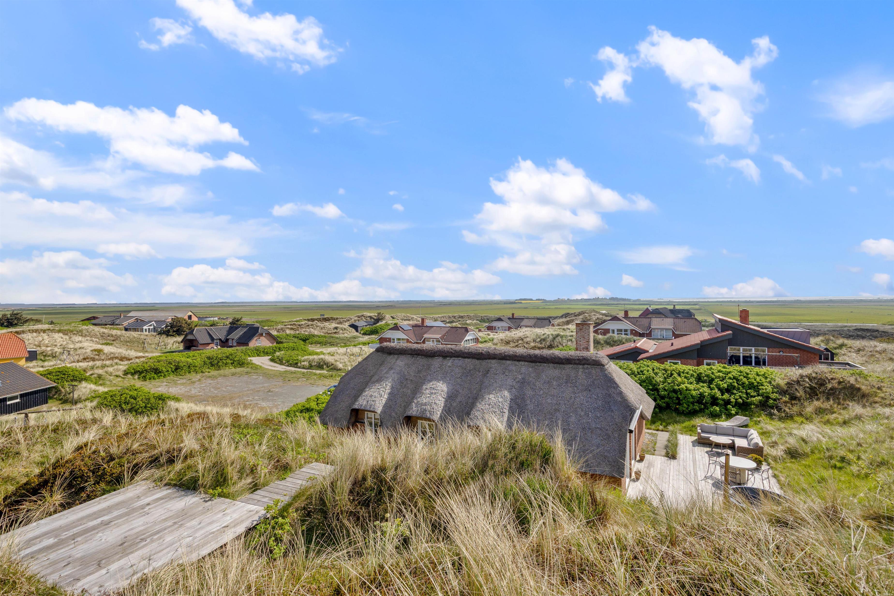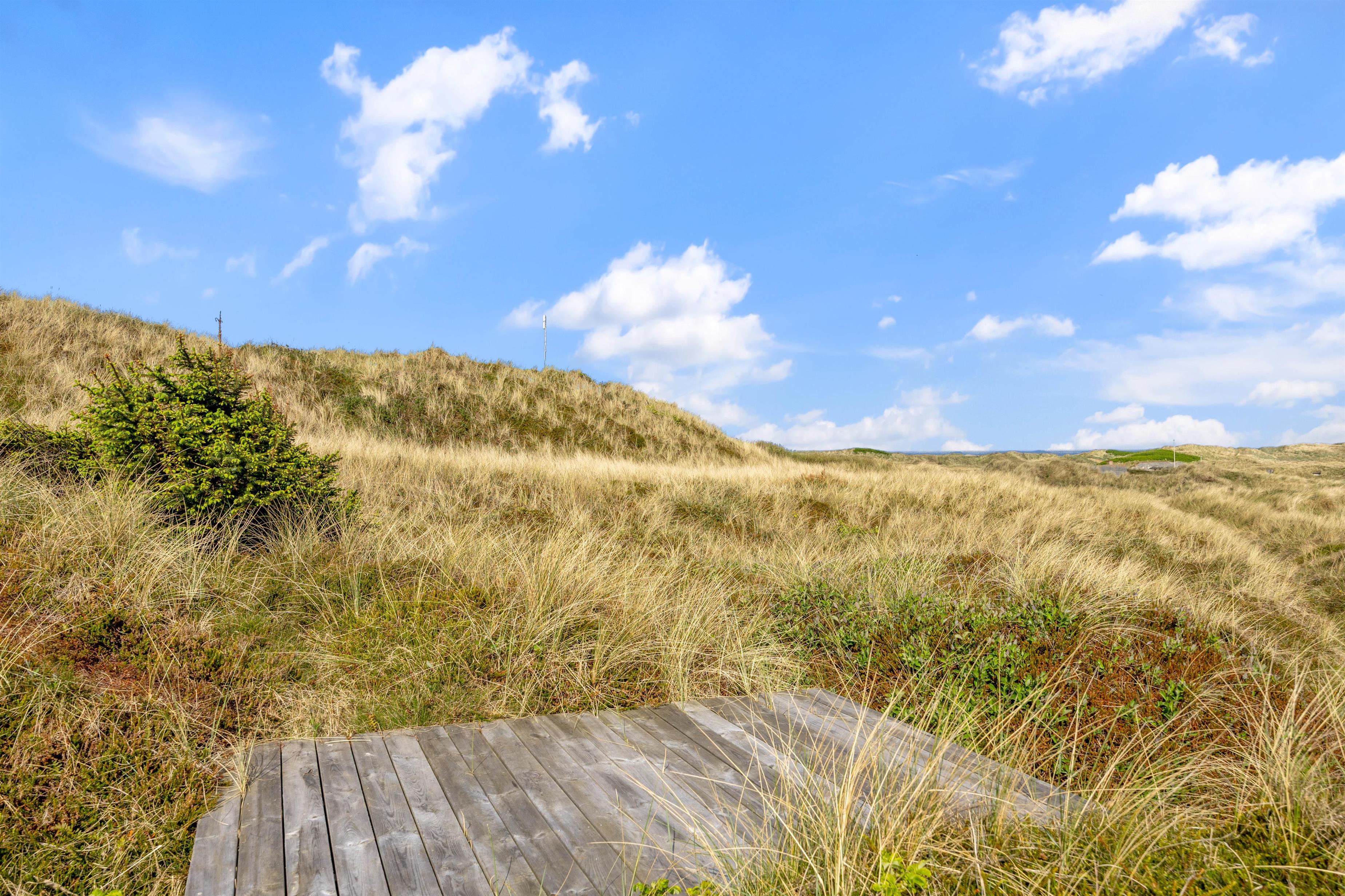 Fra feriehuset i Houvig er der kun 300 meter til den kilometerlange sandstrand ved den danske vestkyst og det brusende Vesterhav, som er et besøg værd på alle tider af året.