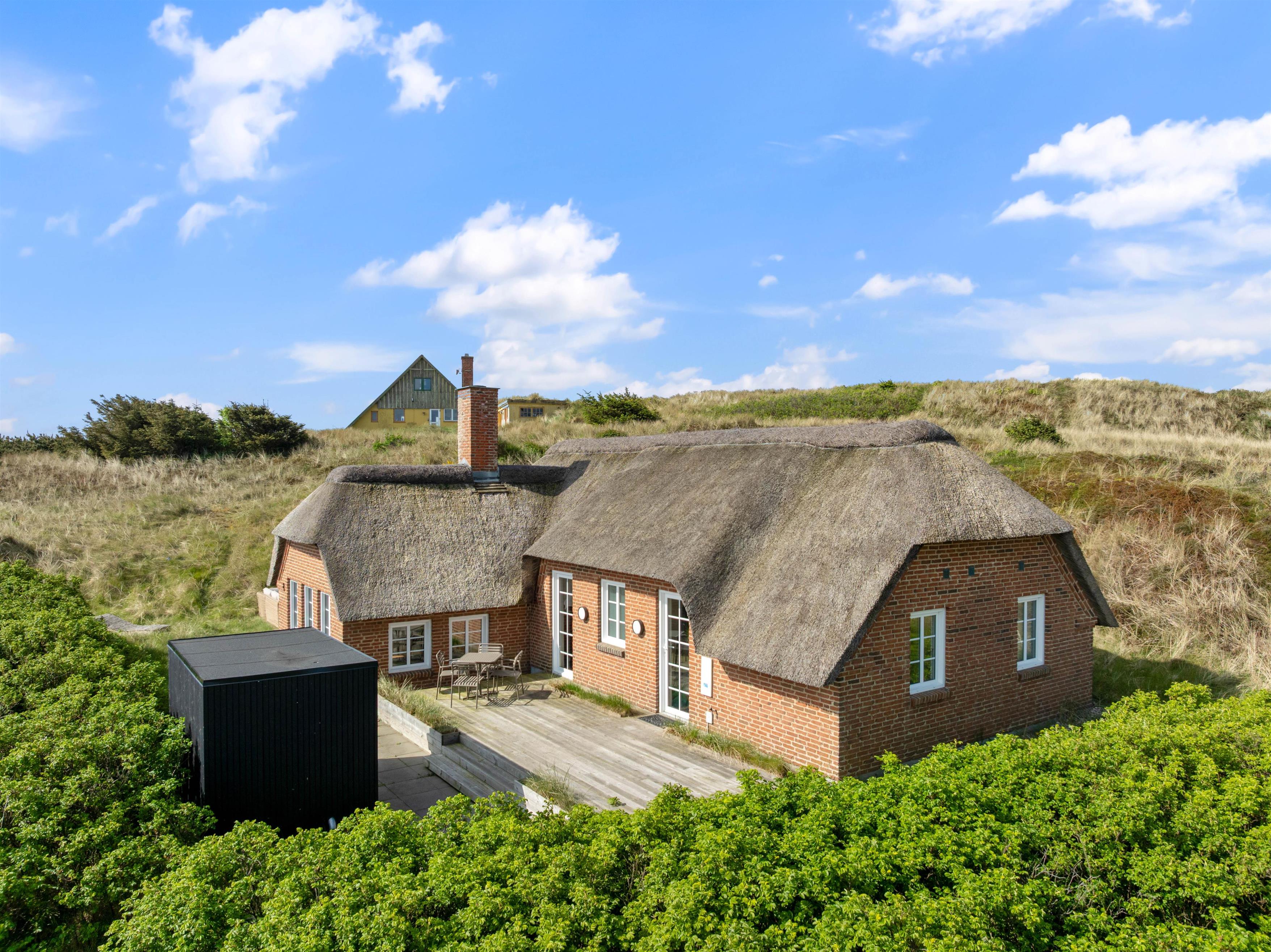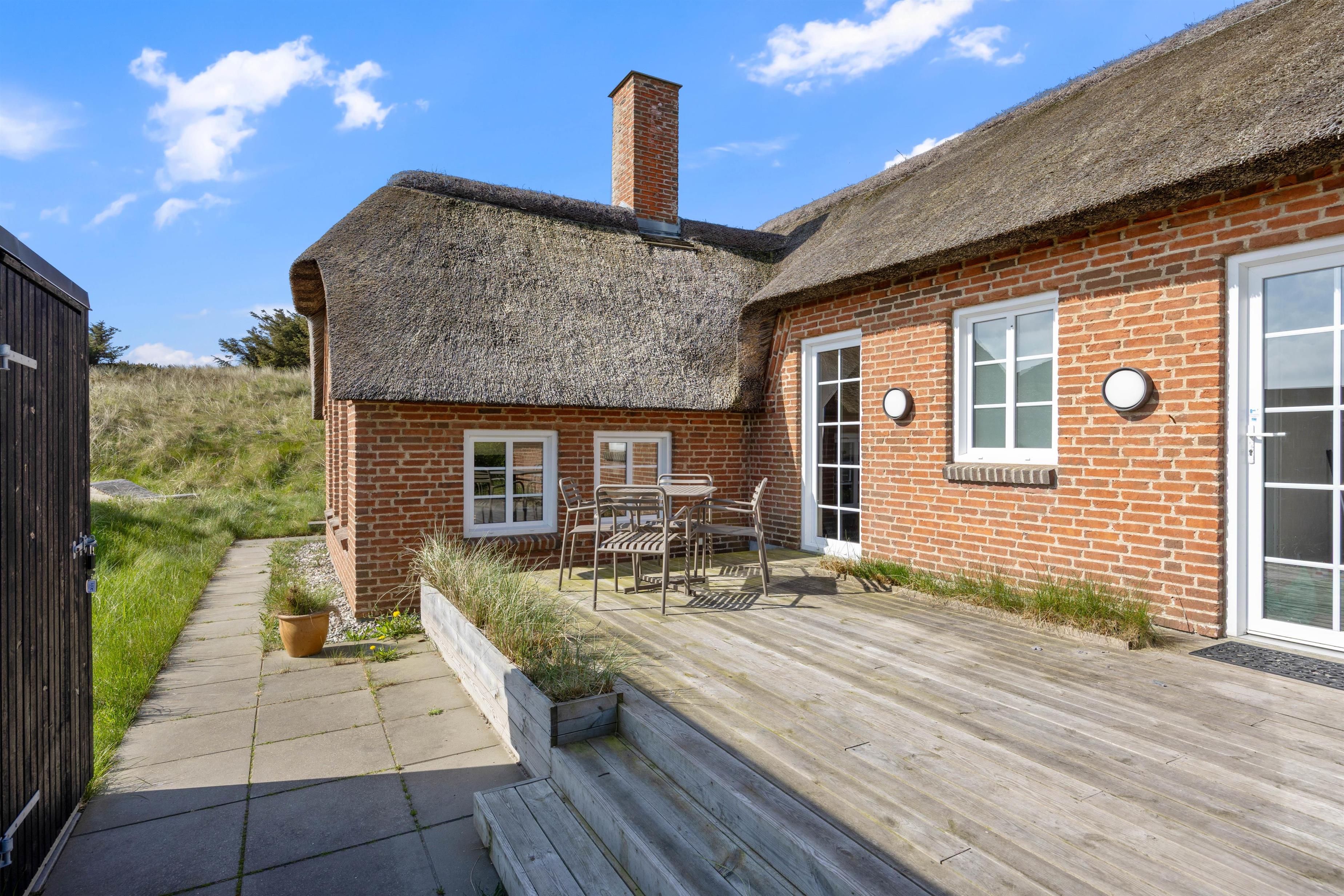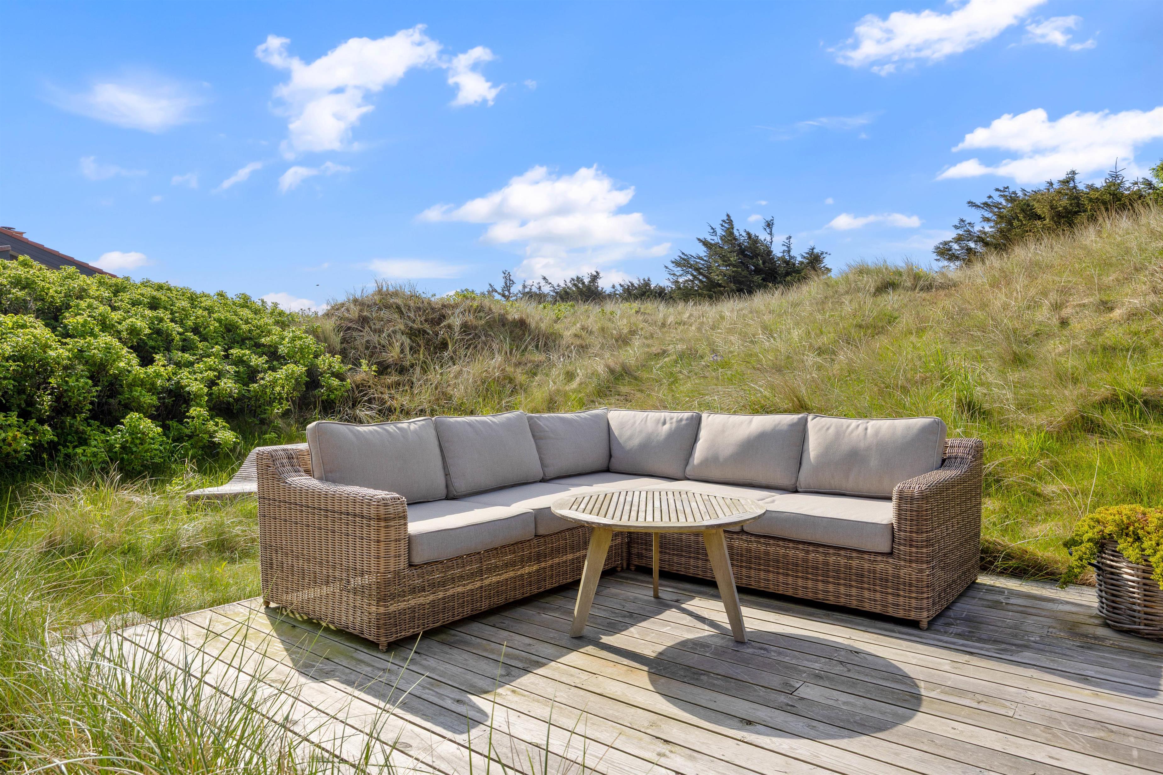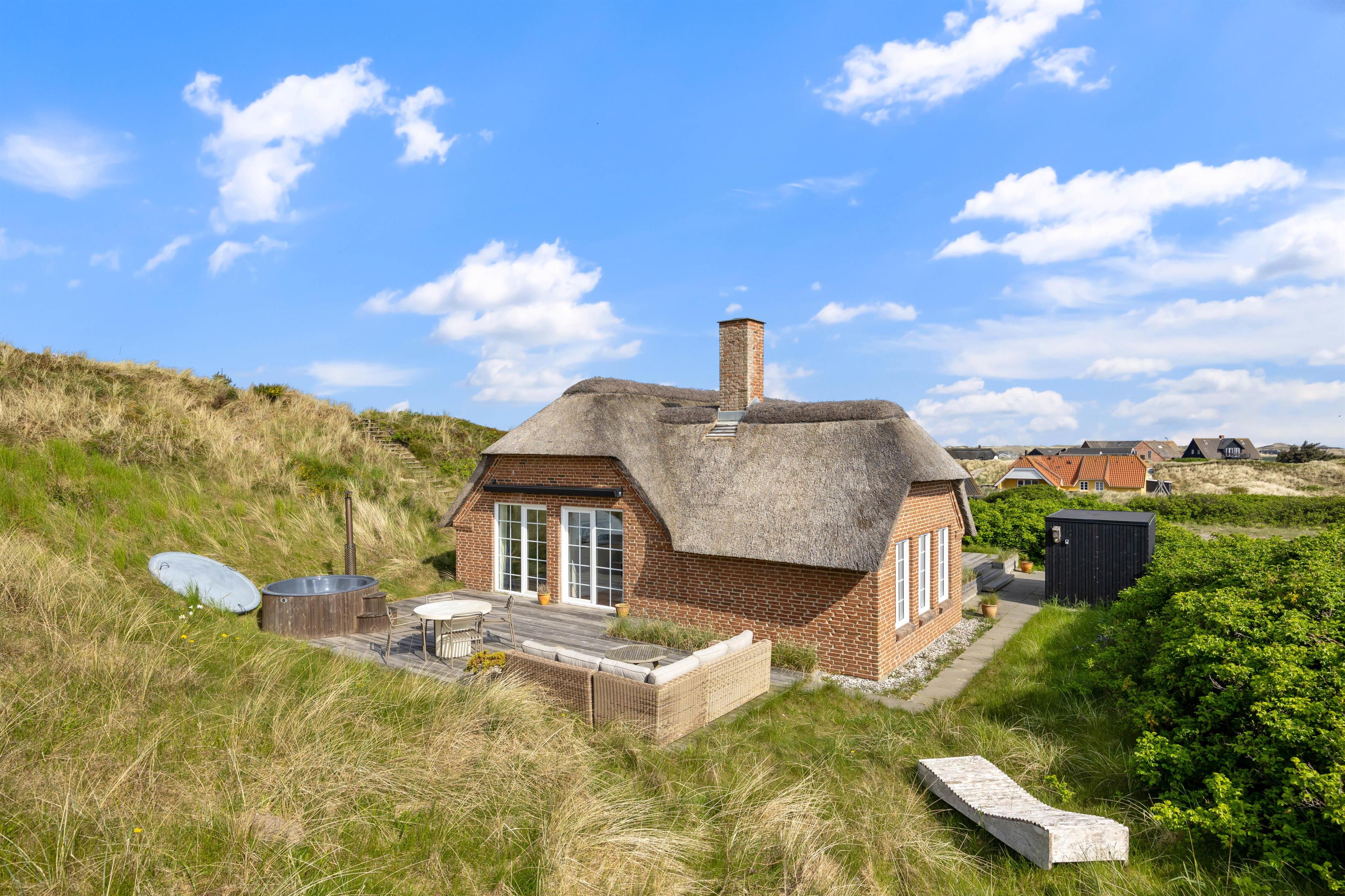 Feriehuset på Krylen 11 i Houvig ligger på en stor naturgrund og er bygget ind i en klit. Feriehusets udendørsområde byder på en stor terrasse med tilhørende havemøbler, så du kan sætte dig godt til rette i solen, mens du nyder en kold drink eller tilbereder din aftensmad fra gasgrillen. Et højdepunkt i feriehuset er spabadet på feriehusets terrasse, hvor du kan varme dig i det varme og boblende vand om aftenen, mens du kigger på stjernehimlen.