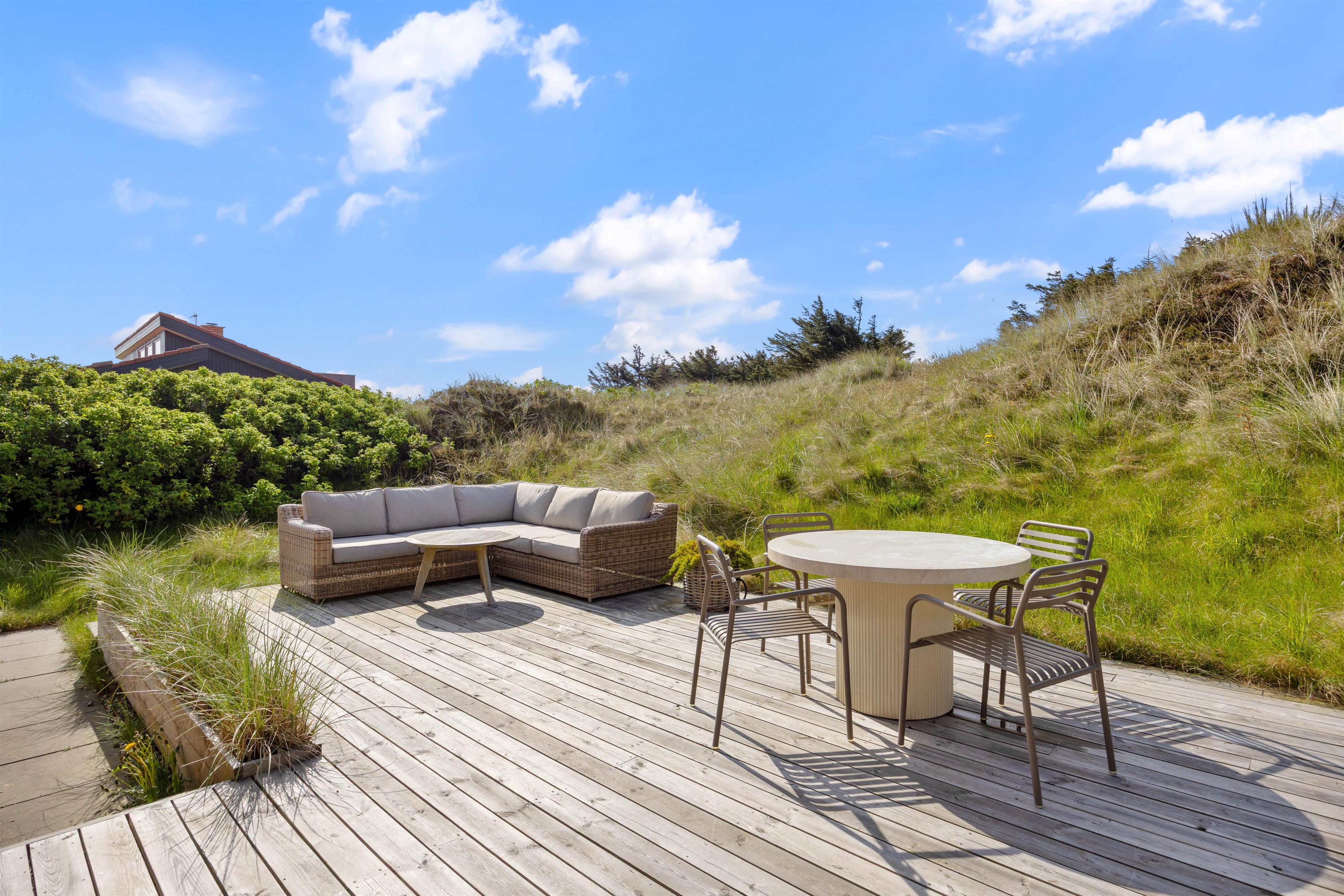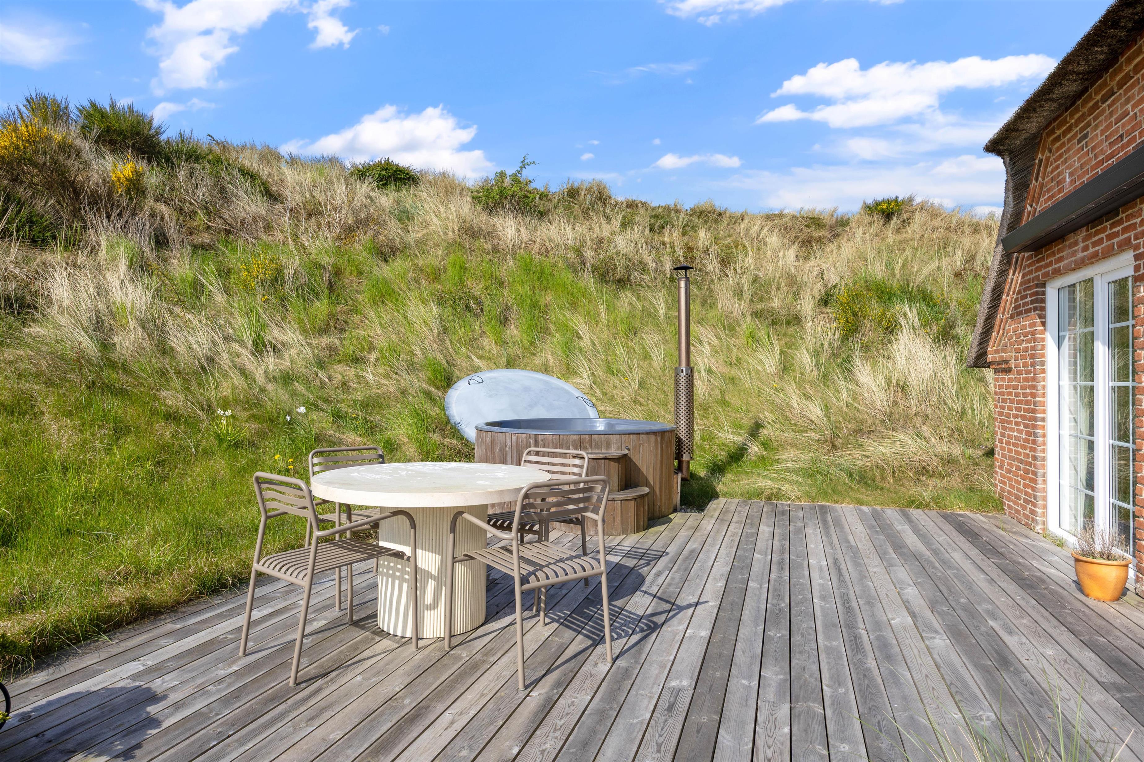 Stort terrasseområde med spabad og gasgrill - kun 300 meter fra stranden