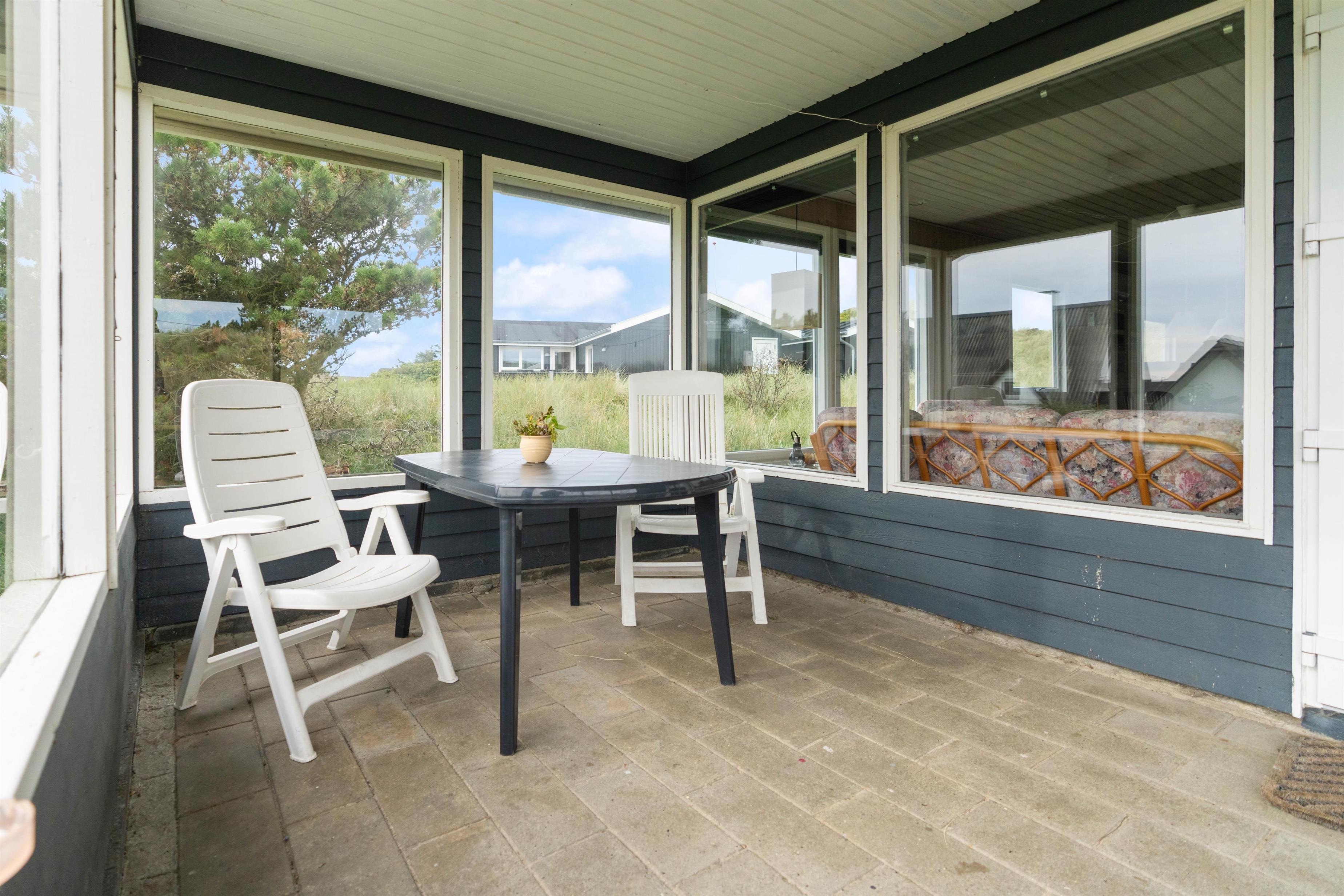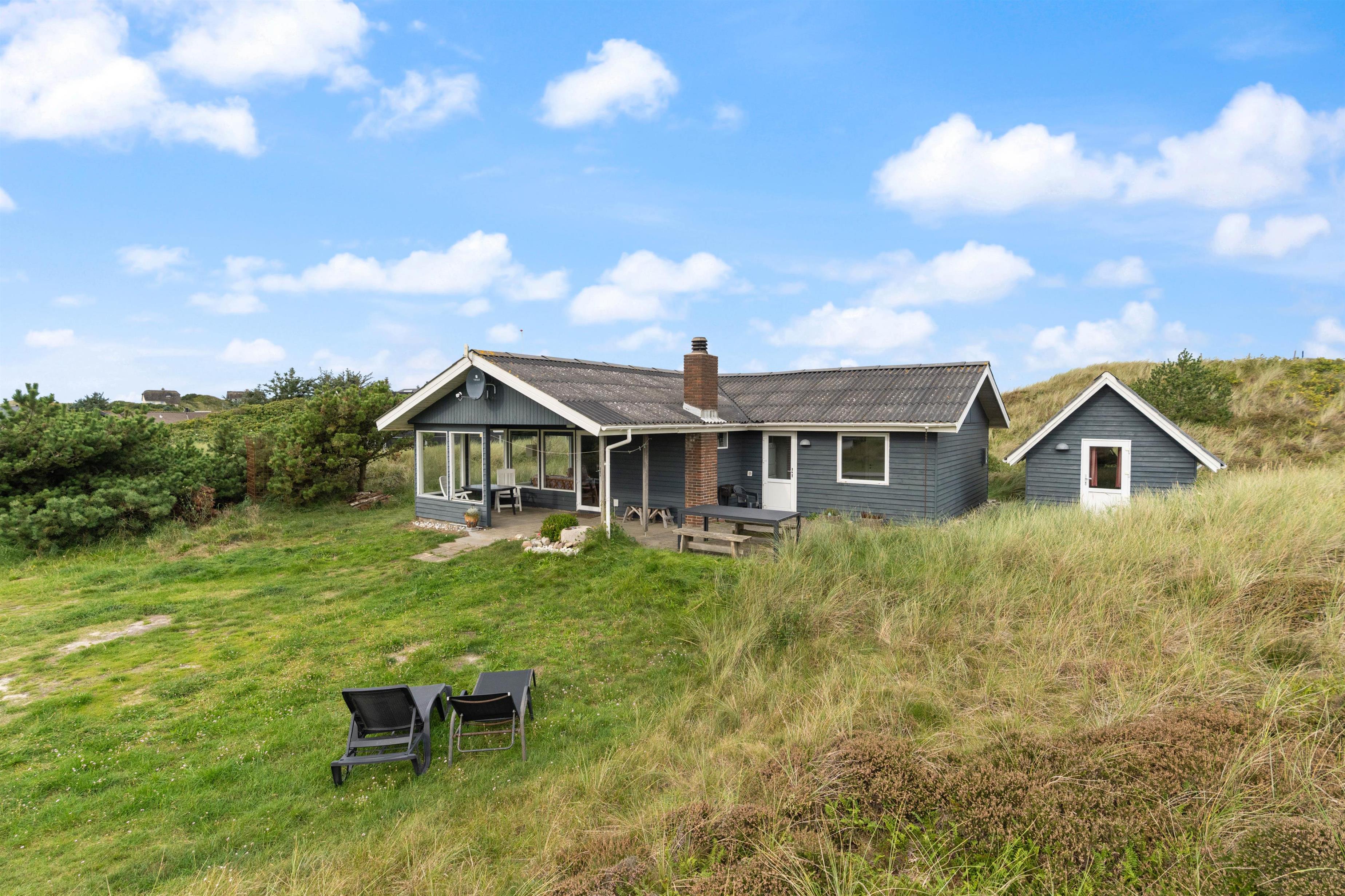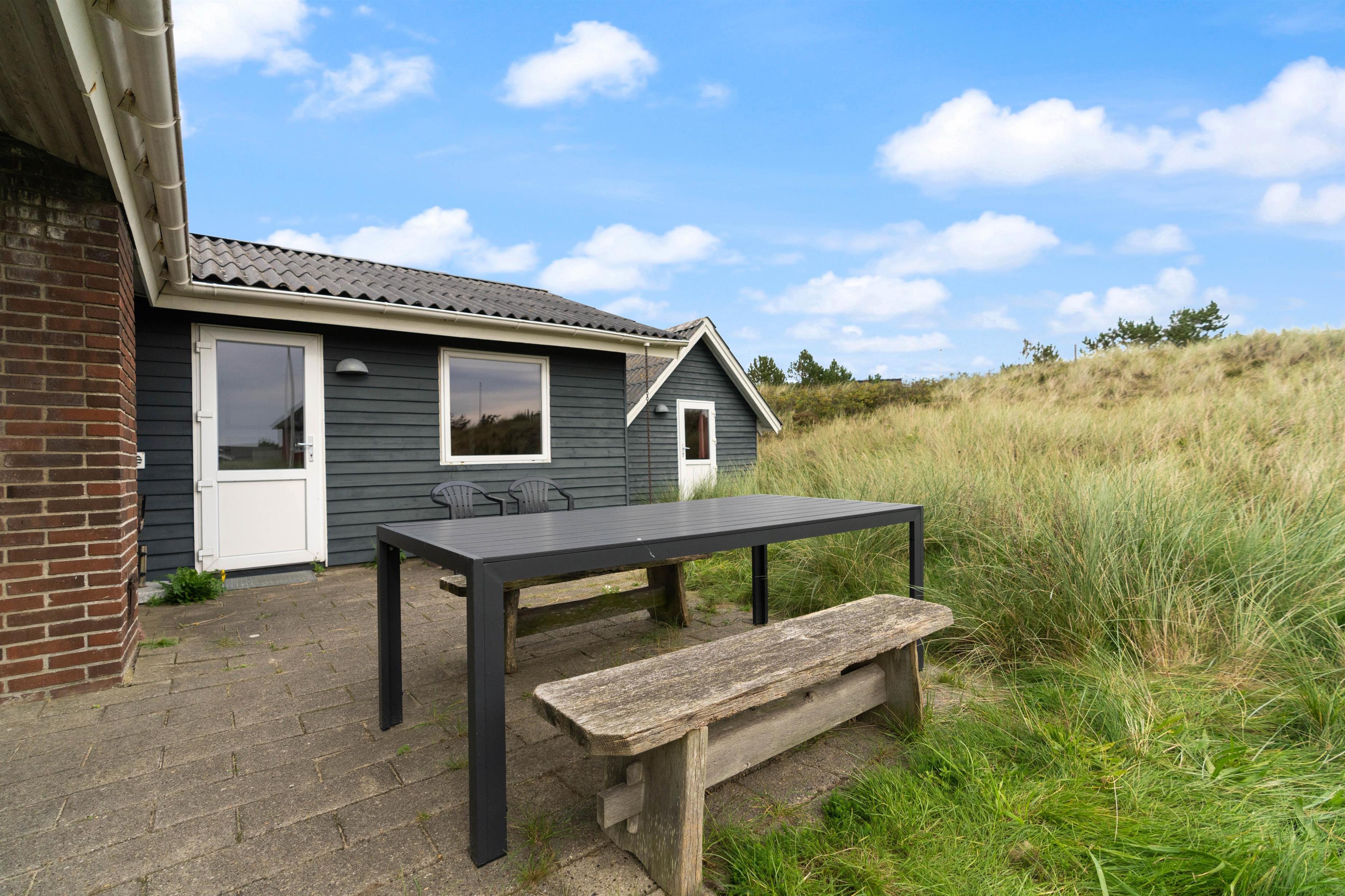 Sommerhuset i Houvig er beliggende på en dejlig klitgrund med buske og græsser. Mod sydøst er der en rigtig god morgenterrasse, hvor dagens første kop kaffe og morgenbasserne kan nydes i en plet i solen. Mod sydvest finder I en skøn overdækket terrasse, der er god på de lunefulde sommerdage. I kan derfor med ro i sindet grille hver dag på jeres ferie – også selvom det regner.