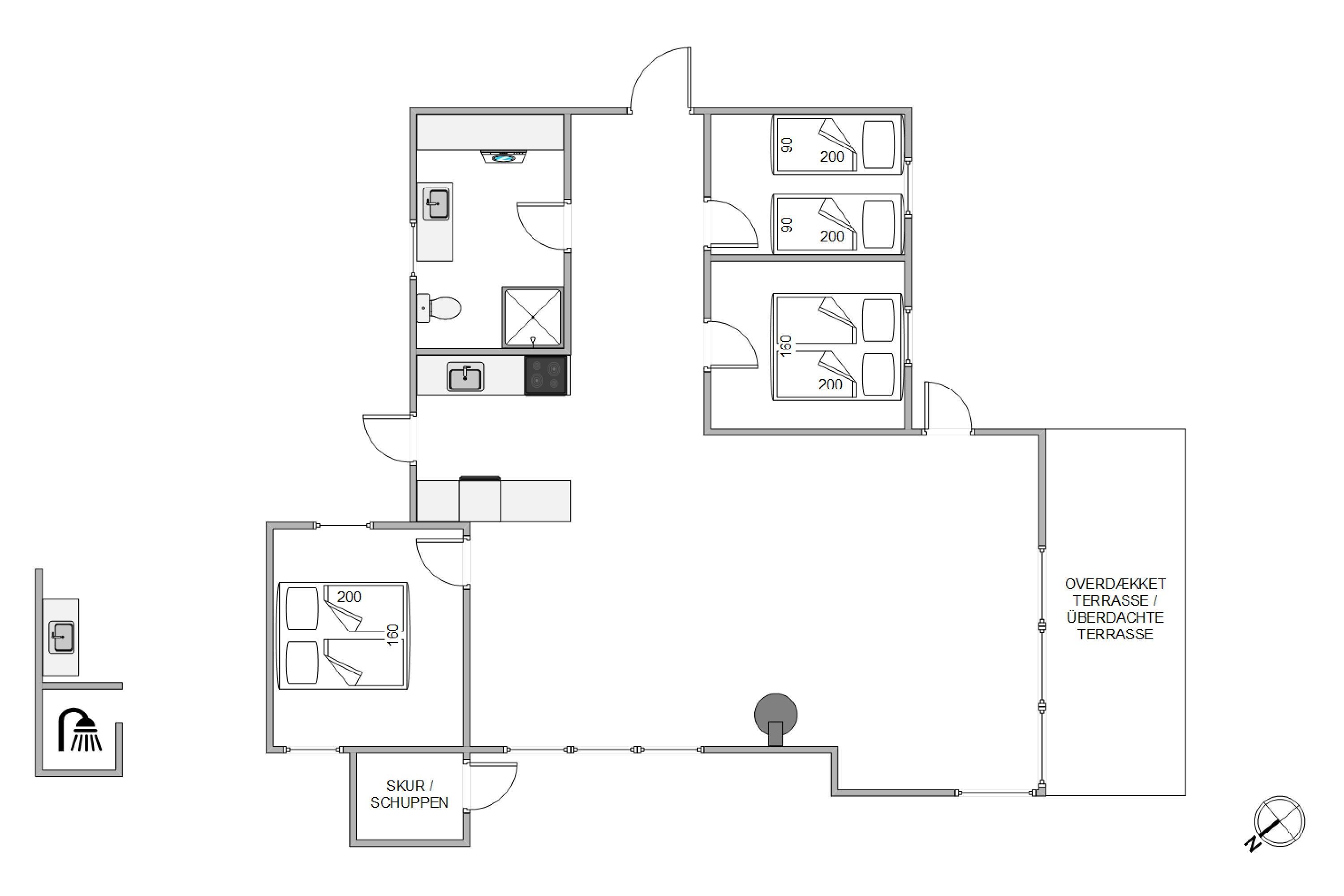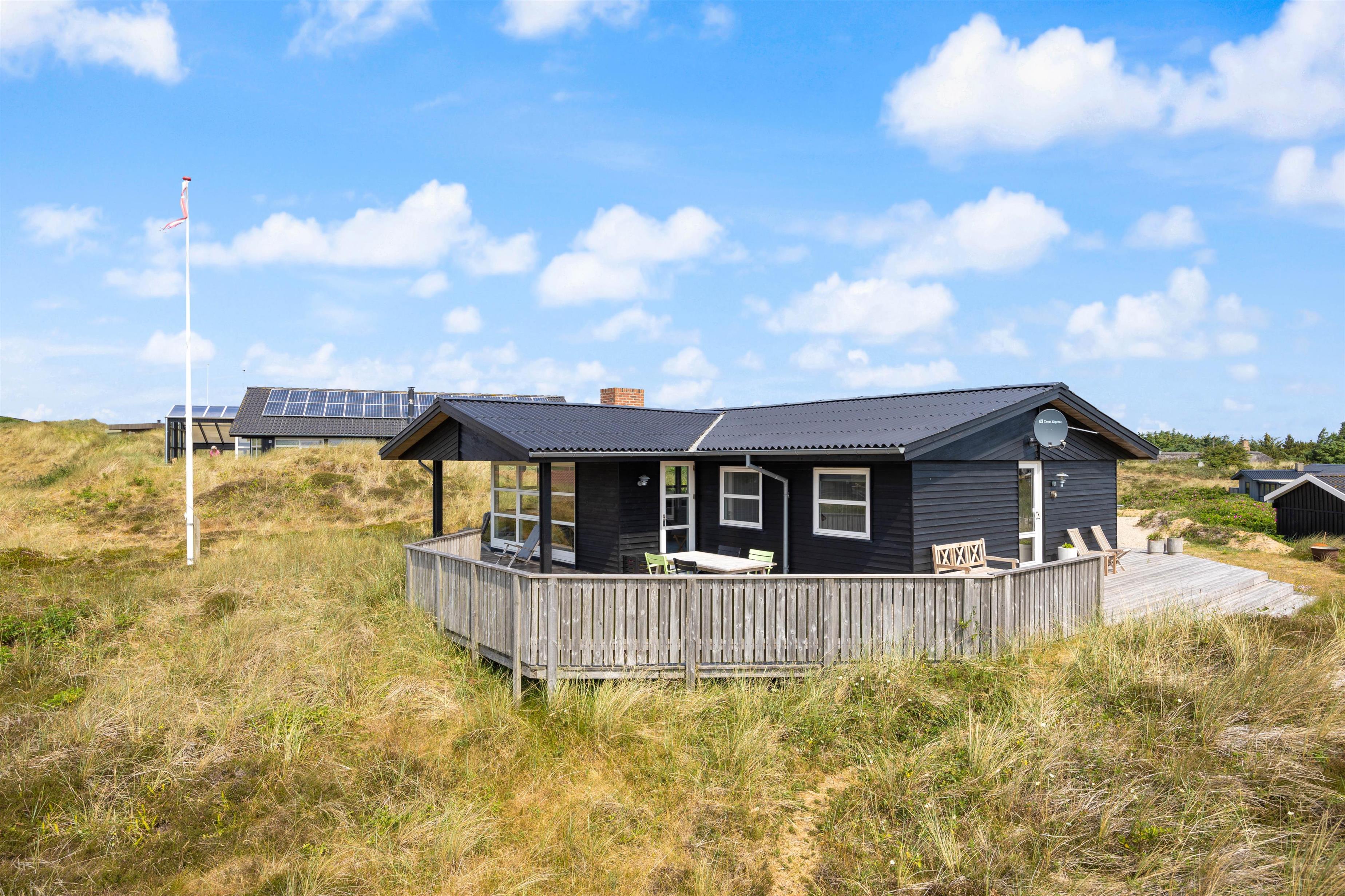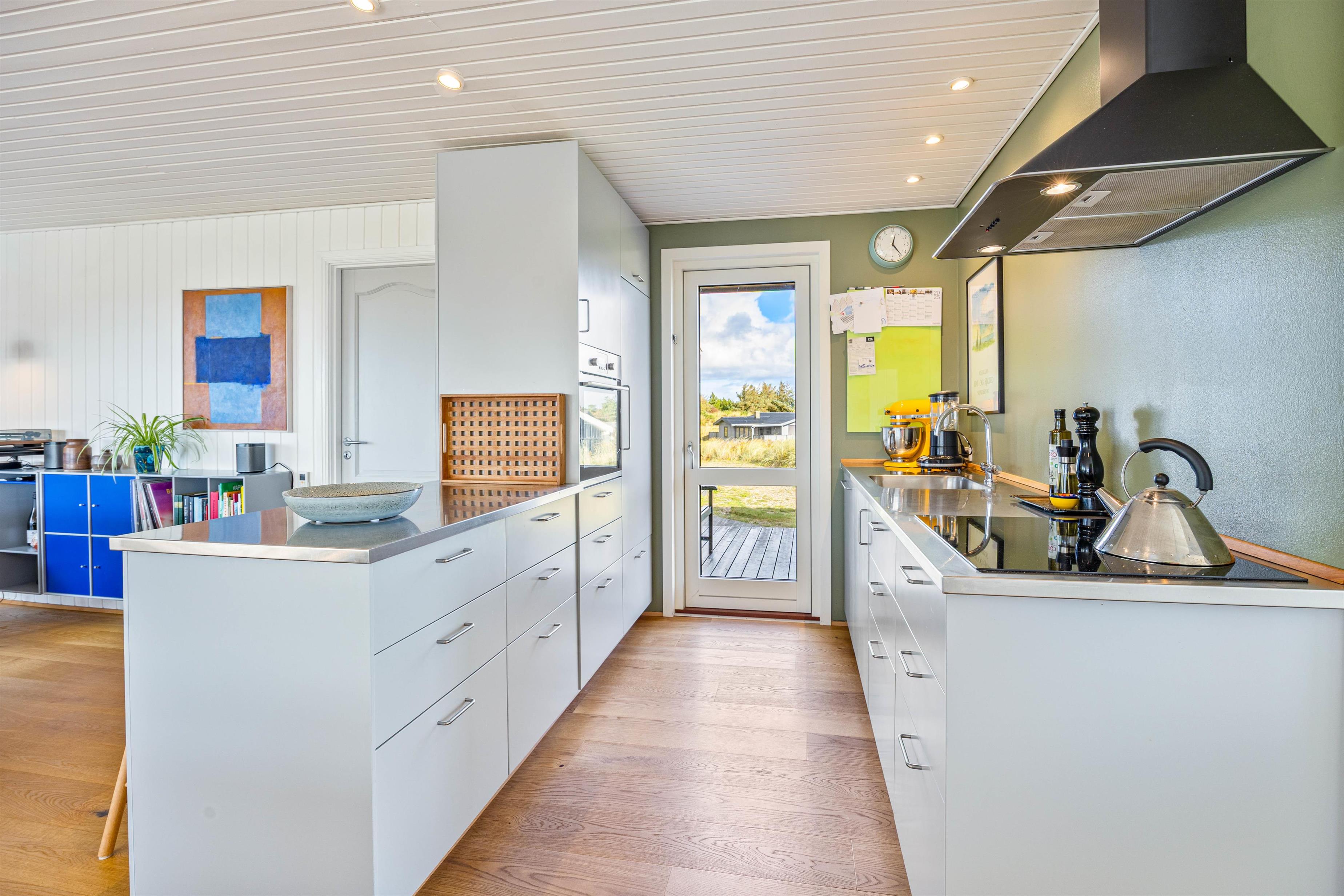 Fra stuen har I udgang til en dejlig afskærmet træterrasse med havemøbler, liggestole og grill. På de varmere og solskinsrige dage, har I mulighed for at tilberede et lækkert aftensmåltid ved feriehusets lille udekøkke. Feriehuset ligger på en rigtig flot naturgrund med svejende marehalm og bølgende klittoppe i baggrunden. Terrassen er perfekt til afslapning på langs med dagens avis, en god bog eller måske bare til lyden af landskabet. Der er også etableret en udebruser og et lille udekøkken ved annekset. Her har I mulighed for at hygge jer med madlavning i det fri efter en dejlig lang feriedag.
