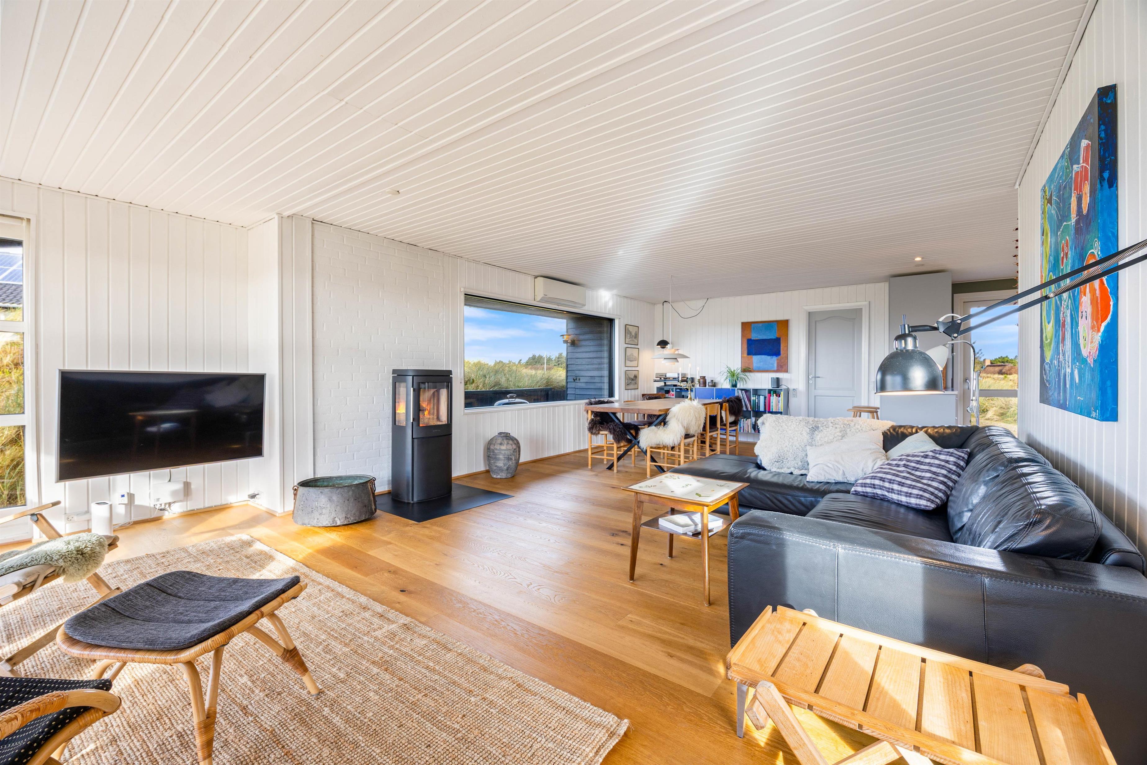 Sommerhuset fremstår pænt og velholdt overalt med lyse vægge og gode møbler, samt nyere badeværelse (fra 2021). Sommerhuset har tre gode soverum med to dobbeltsenge og to enkeltsenge. Feriehuset er derfor både egnet til børnefamilien og til en lille gruppe venner, der holder ferie sammen. Det åbne køkken ligger i forbindelse med stuen. Her er der god plads til at hjælpes om madlavningen eller spille et spil i stuen, mens brændeovnen knitrer i baggrunden og der lægges nye spændende ferieaktiviteter.