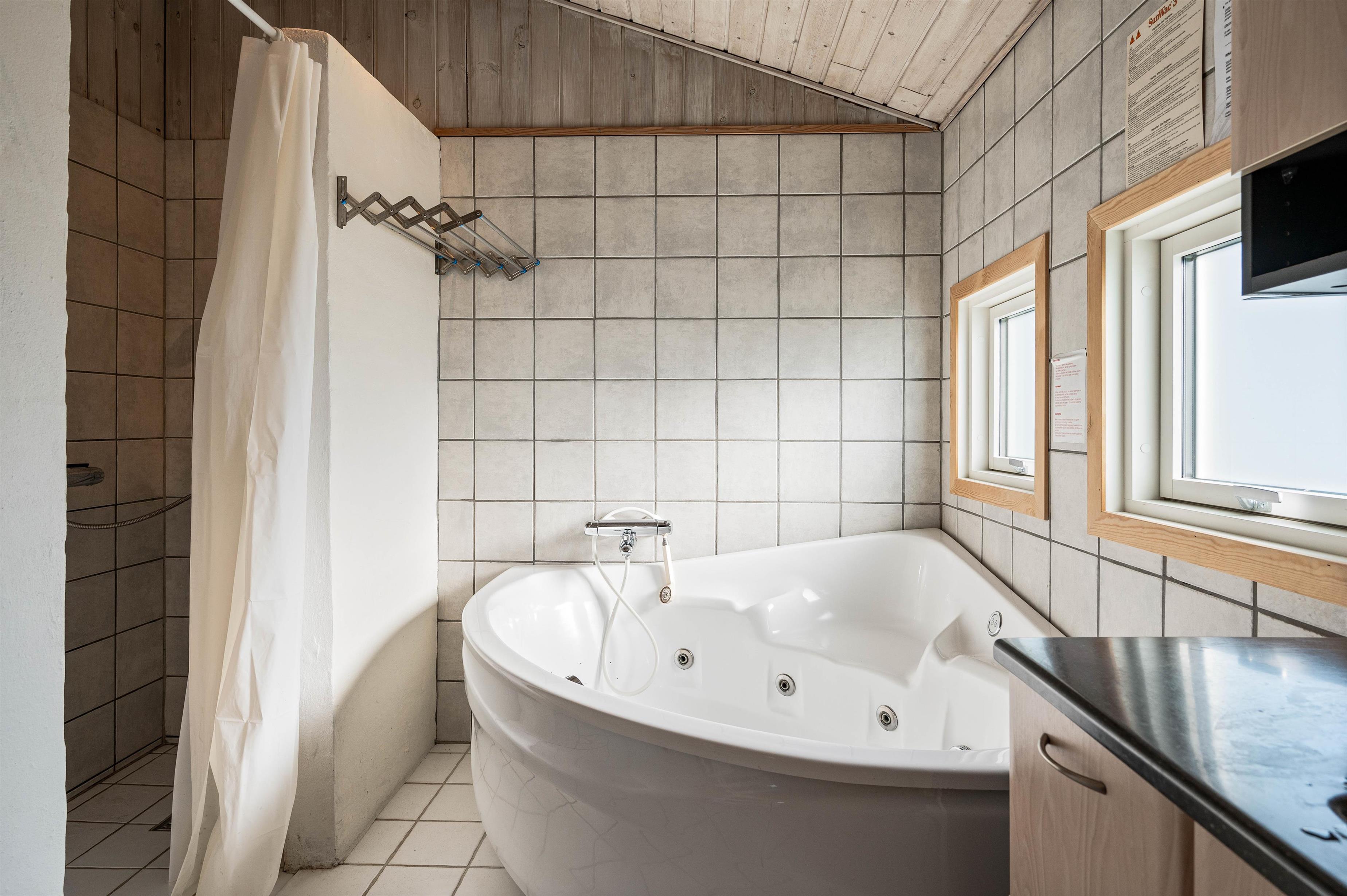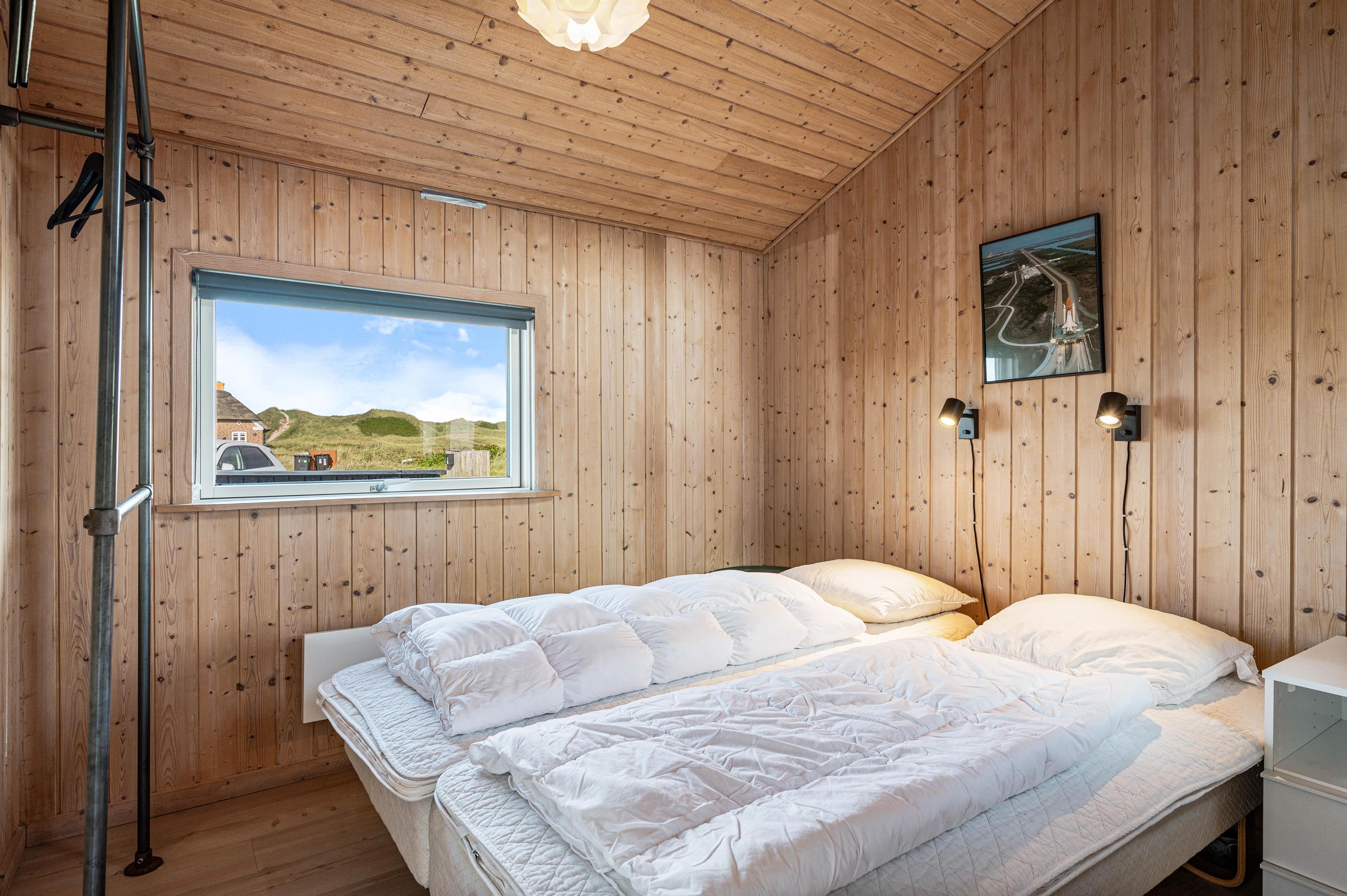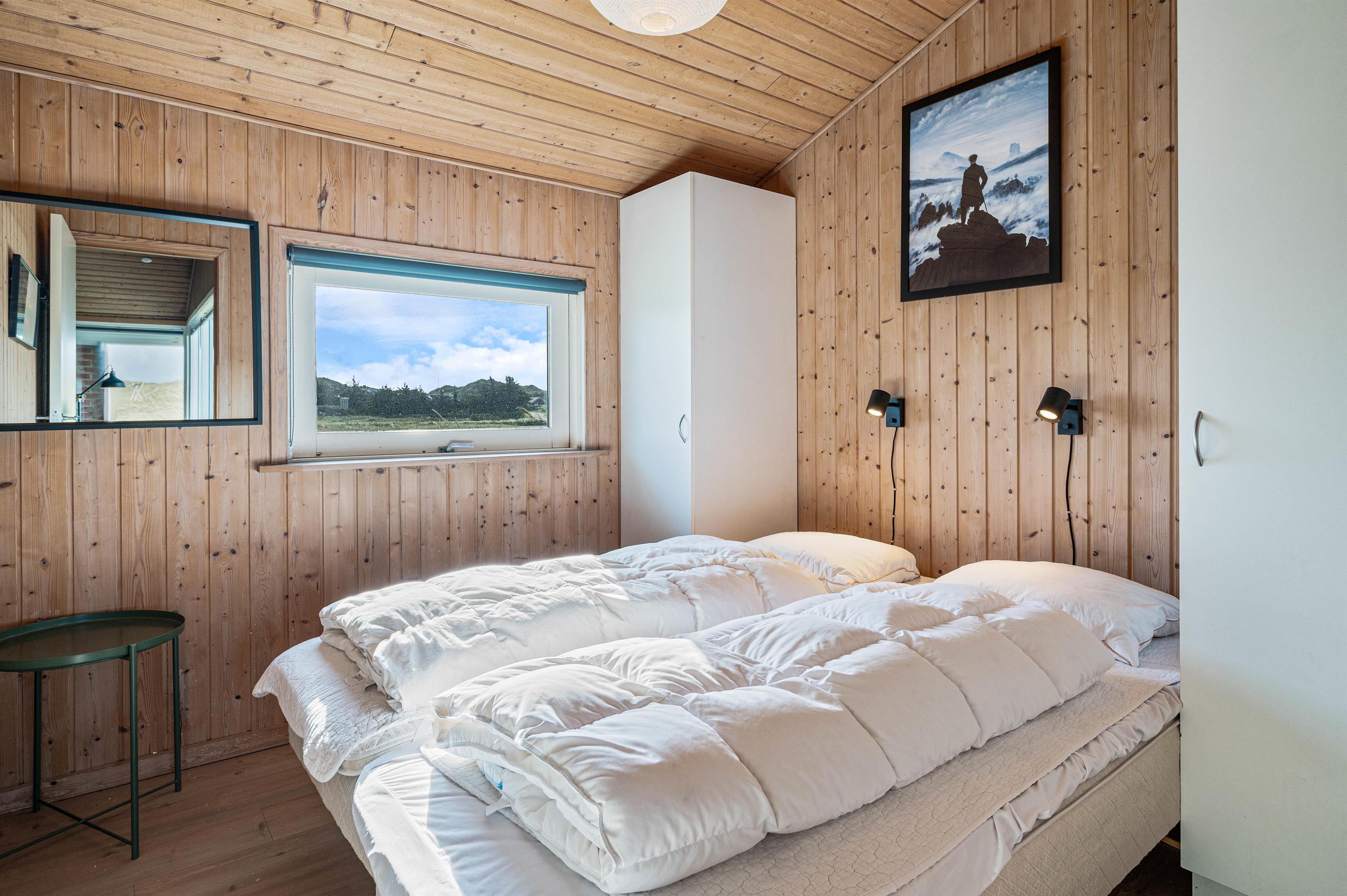 Her er tale om et dejligt feriehus med en klassisk indretning med vægge beklædt med træpaneler. Selve sommerhuset fordeler sig på 4 gode soveværelser; 2 værelser med dobbeltsenge, 1 med enkeltsenge samt yderligere 1 værelse med en enkelt seng. Køkken og spisestue ligger i åben, direkte forbindelse, så alle kan følge med i madlavningen. Efter en lang spadseretur i den Jyske natur er det oplagt med lidt selvforkælelse i husets badekar og udesauna. Her kan I rigtig sidde og få ladet jeres batterier op.