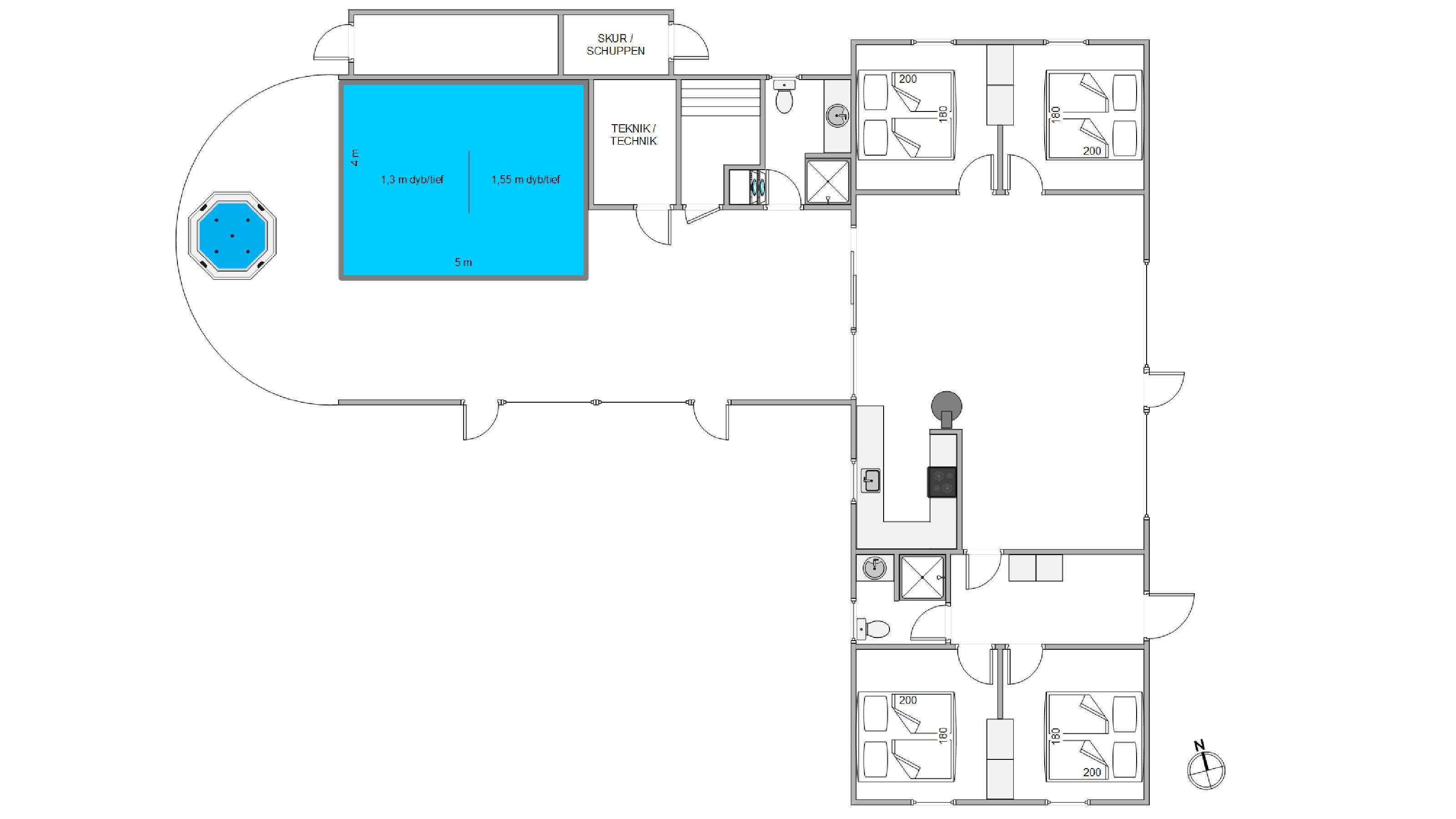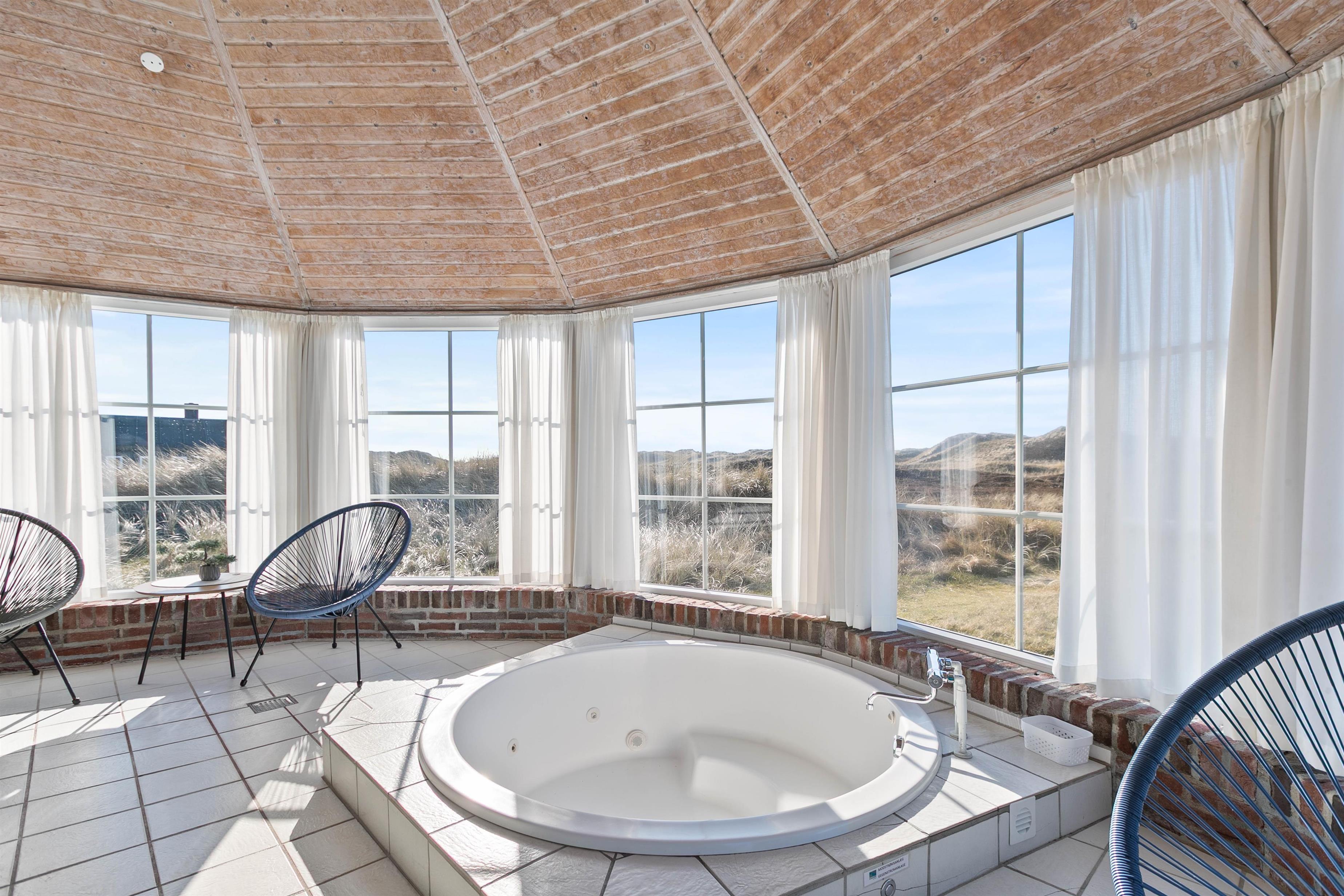 Med en beliggenhed bare 150 meter fra Vesterhavet er I kun nogle få minutters gang fra en rigtig dejlig strand. Her kan I få sand mellem tæerne og nyde den friske natur. Hvis vejret er dårligt, så er det dog ingen hindring. Sommerhuset har nemlig en dejlig 16 m2 stor pool, som sikrer underholdning til børnene fra morgen til aften. De vil elske at plaske rundt i vandet – og der er selvfølgelig også plads til, at de voksne kan snuppe et par forfriskende baner frem og tilbage. Poolen bliver opvarmet med en energivenlig varmepumpe, hvilket betyder et mindre forbrug.