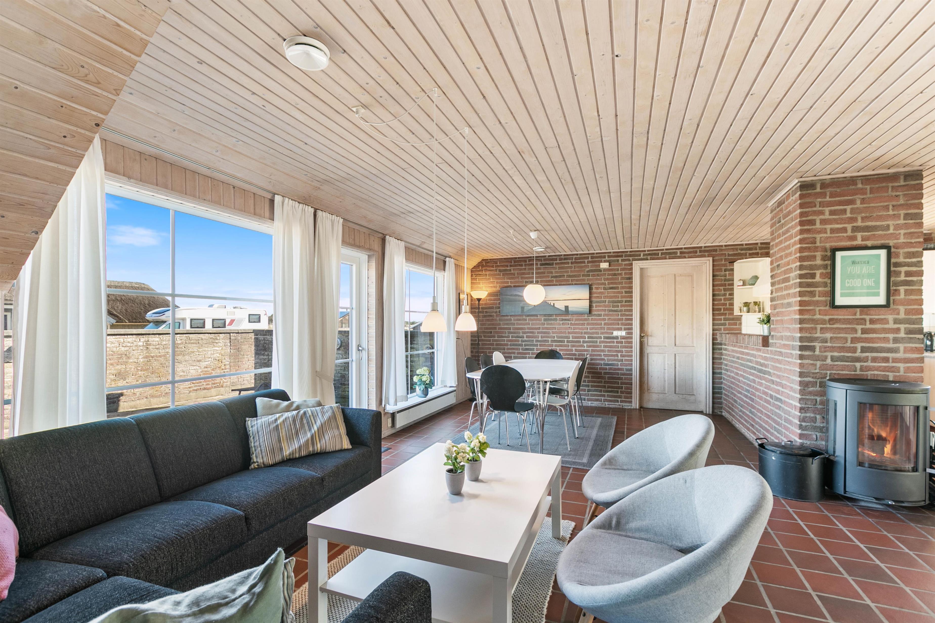Uderummet er et sandt paradis for børnene og familiens hund. Her er der masser af plads til at lege på hele den ugenerede grund ned mod klitterne. Terrassen er perfekt til afslapning, som hører ferien til. Og når solen er fremme, kan de voksne trække sig tilbage og nyde varmen på solsengen eller diverse terrassemøbler.