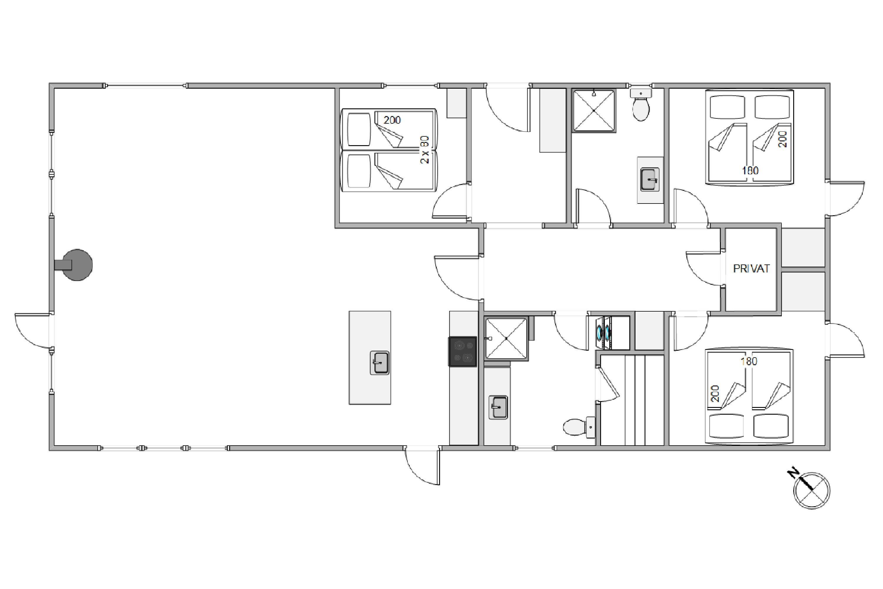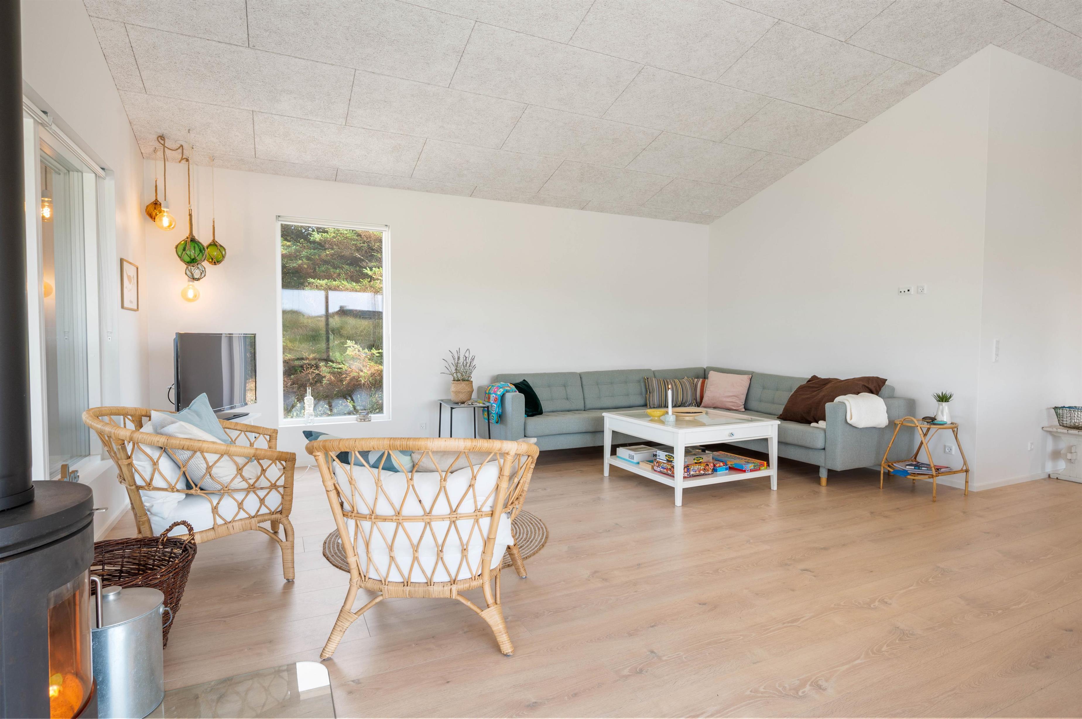 Sommerhuset på Ternedalen 15 har en dejlig lys og venlig indretning, der straks byder jer velkommen, så snart I træder ind ad døren. Sommerhuset er fordelt på 3 soverum, hvoraf de 2 er udstyret med dobbeltsenge og det ene med enkeltmandsseng. Derudover er der to badeværelser, så der ikke opstår kø ved morgenrutinen. Husets hjerterum er uden tvivl den dejlige lyse og åbne stue, som er i direkte forbindelse med både køkken og spiseplads. Her kan I nyde udsigten til naturen, hvad enten I sidder i sofaen eller opholder jer ved kogeøen. Der er også direkte udgang fra opholdsstuen ud til terrassen. Fra sofaen kan I nyde brændeovnens knitrende flammer.