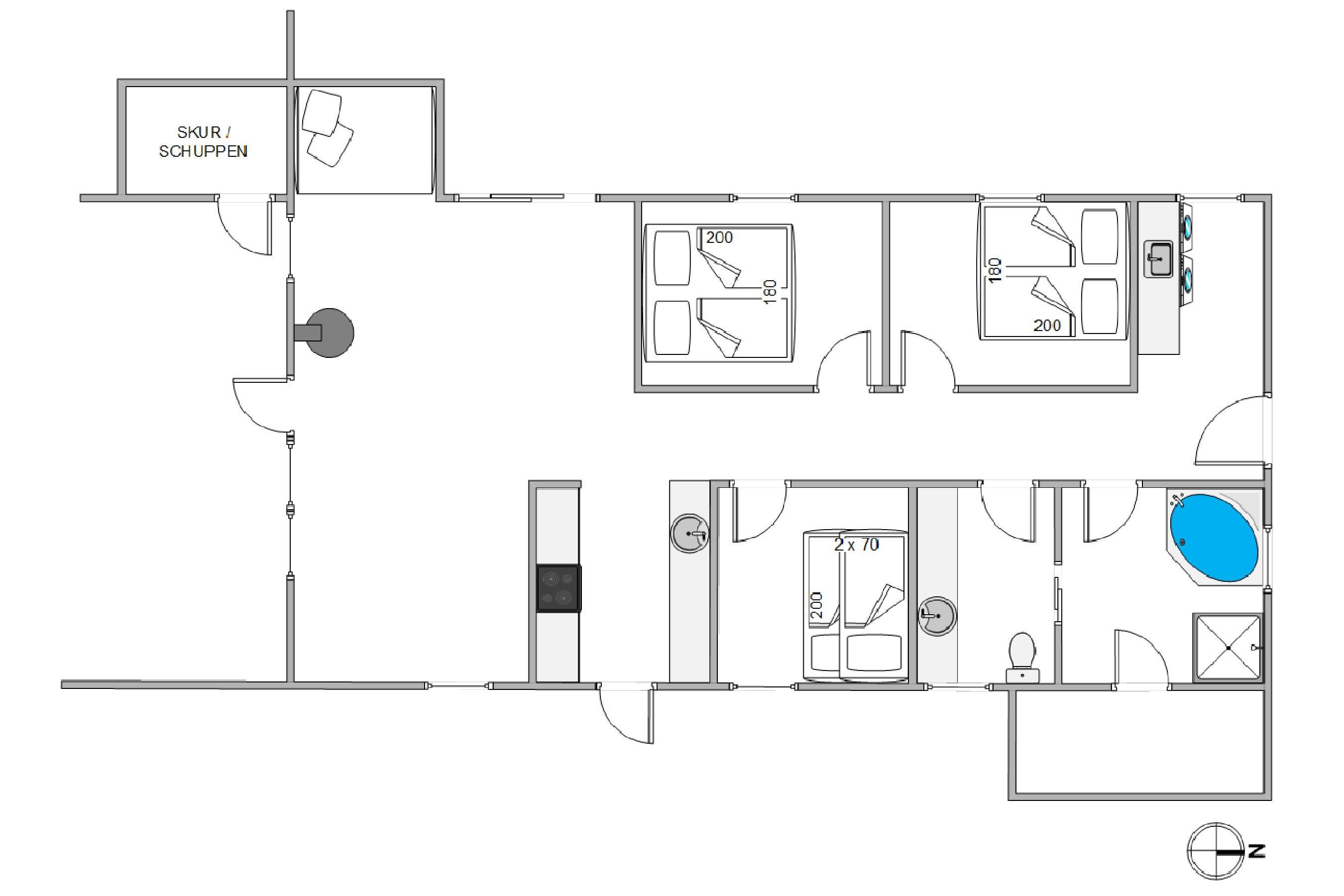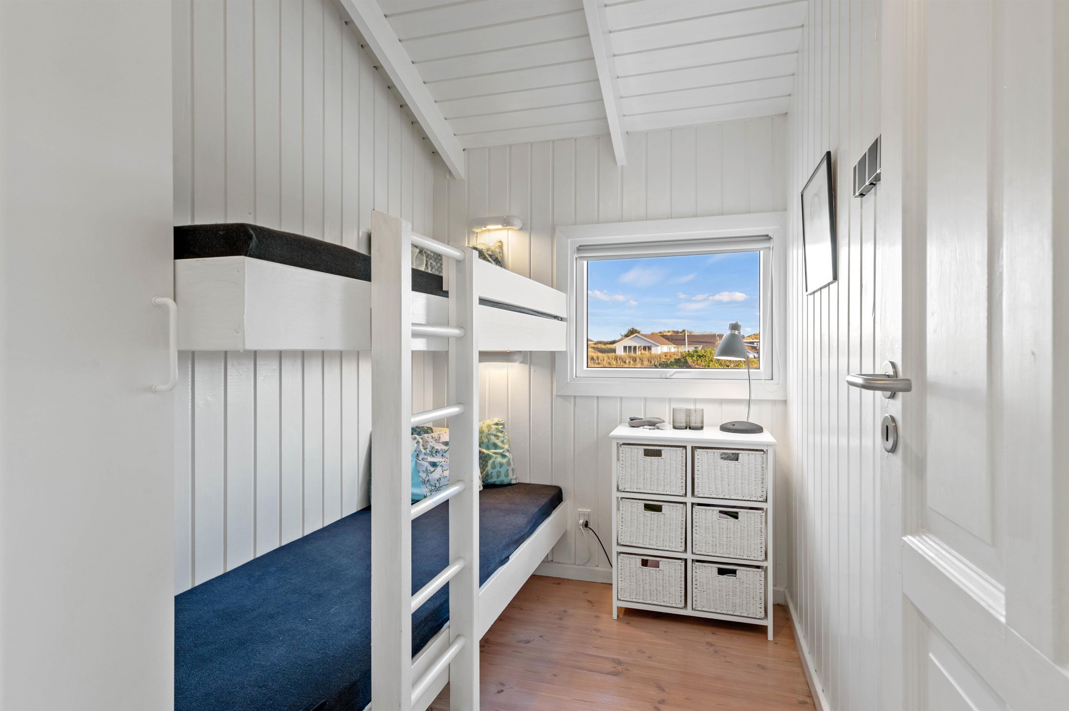 Feriehuset har plads til i alt seks personer, som kan fordeles på de tre soveværelser. To af soveværelserne har hver en dobbeltseng, mens det tredje soveværelse er en drøm for børn, da det har en køjeseng. For at undgå trængsel på badeværelset har ferieboligen også et gæstetoilet ud over det store badeværelse. Badeværelset og gæstetoilettet er begge udstyret med gulvvarme, så du ikke får kolde fødder på kolde dage.