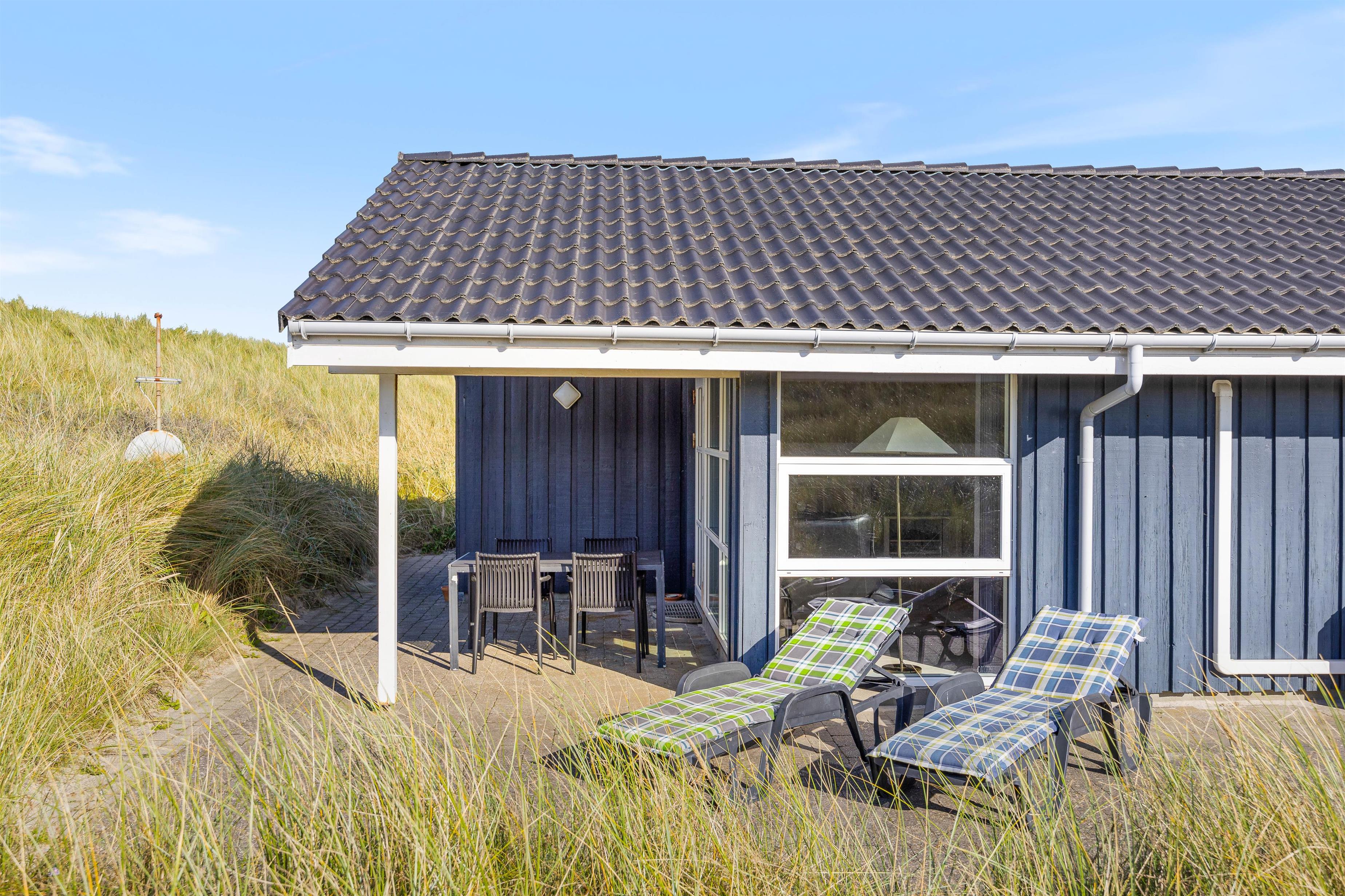 I får en helt eminent beliggenhed med kun 50 meter til havet og helt ugenerede omgivelser på en grund rammet ind af høje klitbanker. Nyd den friske luft og den smukke natur i fred og ro på terrassen, som tilmed er delvist overdækket, så I til hver en tid har ly og læ. Der findes ikke noget hyggeligere på en varm sommerdag, end en grillaften her på denne fantastisk terrasse.