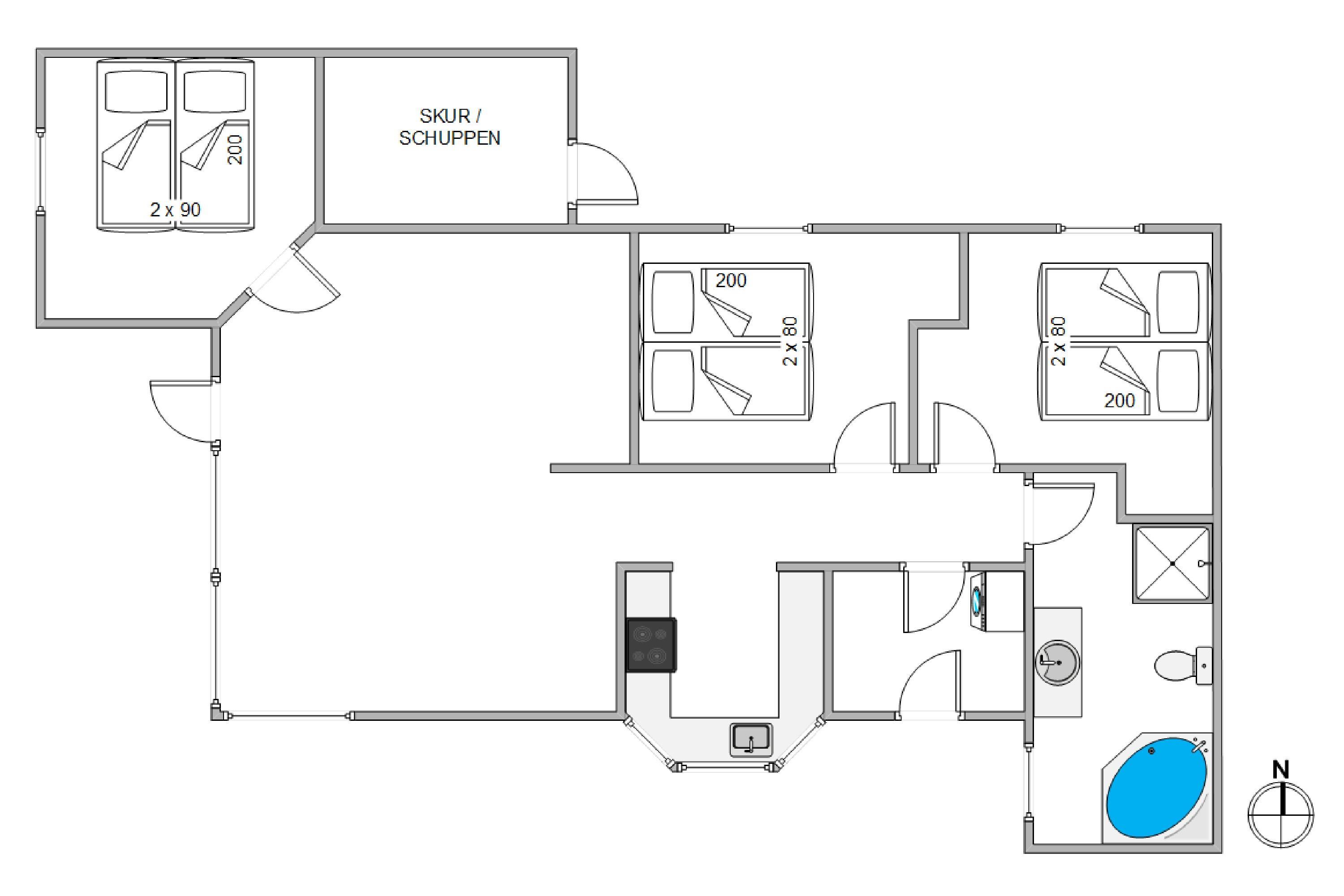 1. soverum/sengestørrelser2 x 80 x 200