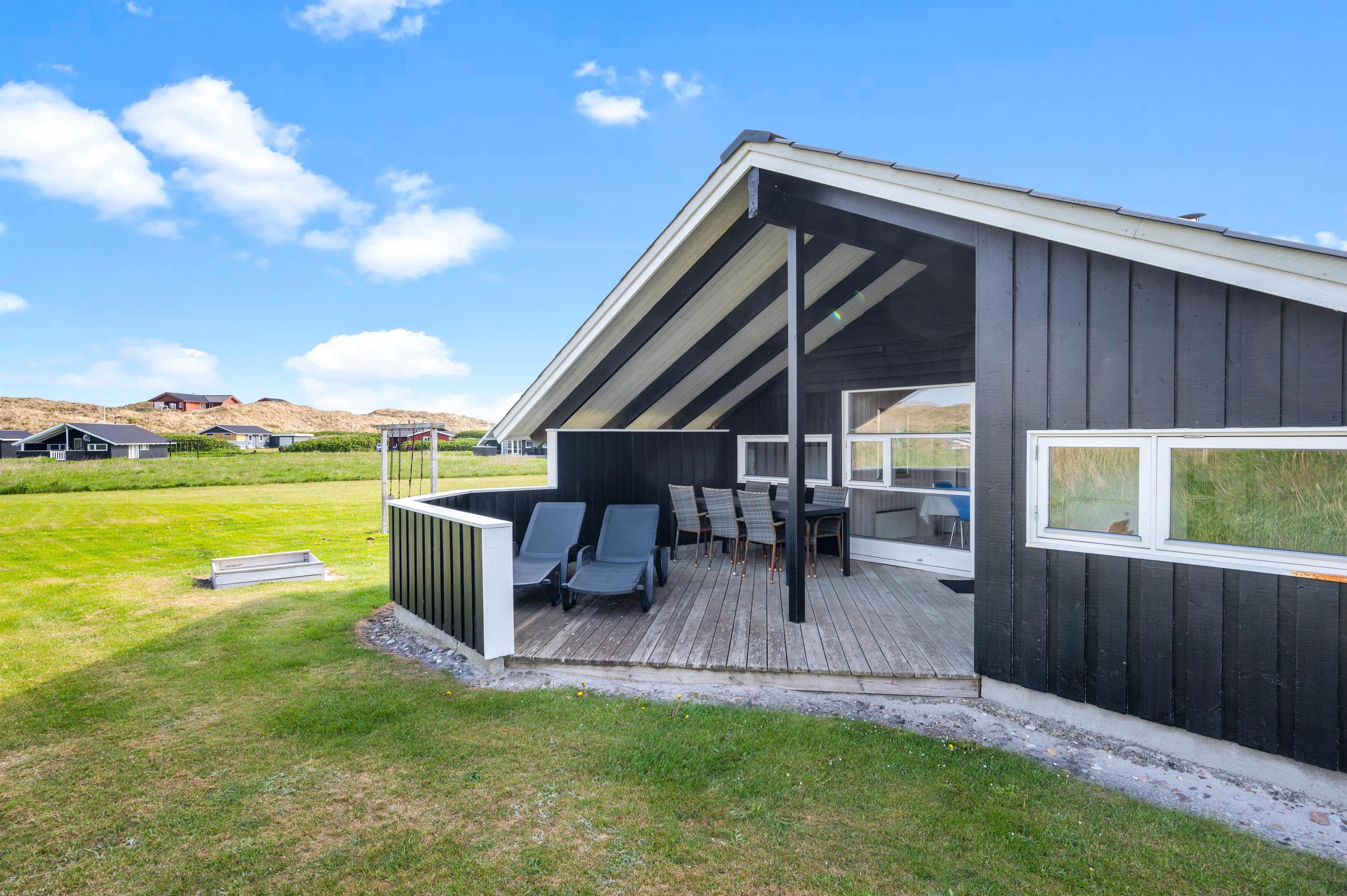 Få en god start på dagen med en god morgenmad på terrassen, mens I nyder den dejlige udsigt til klitterne, som ligger tæt på huset. Fra husets anden terrasse er der også en fantastisk udsigt ud over markerne mod øst. Mens de voksne drikker en kop kaffe eller sørger for, at grillen bliver tændt, så hele familien kan samles til aftensmaden, kan børnene lege på græsplænen, have det sjovt på gyngen og bygge en borg i sandkassen.