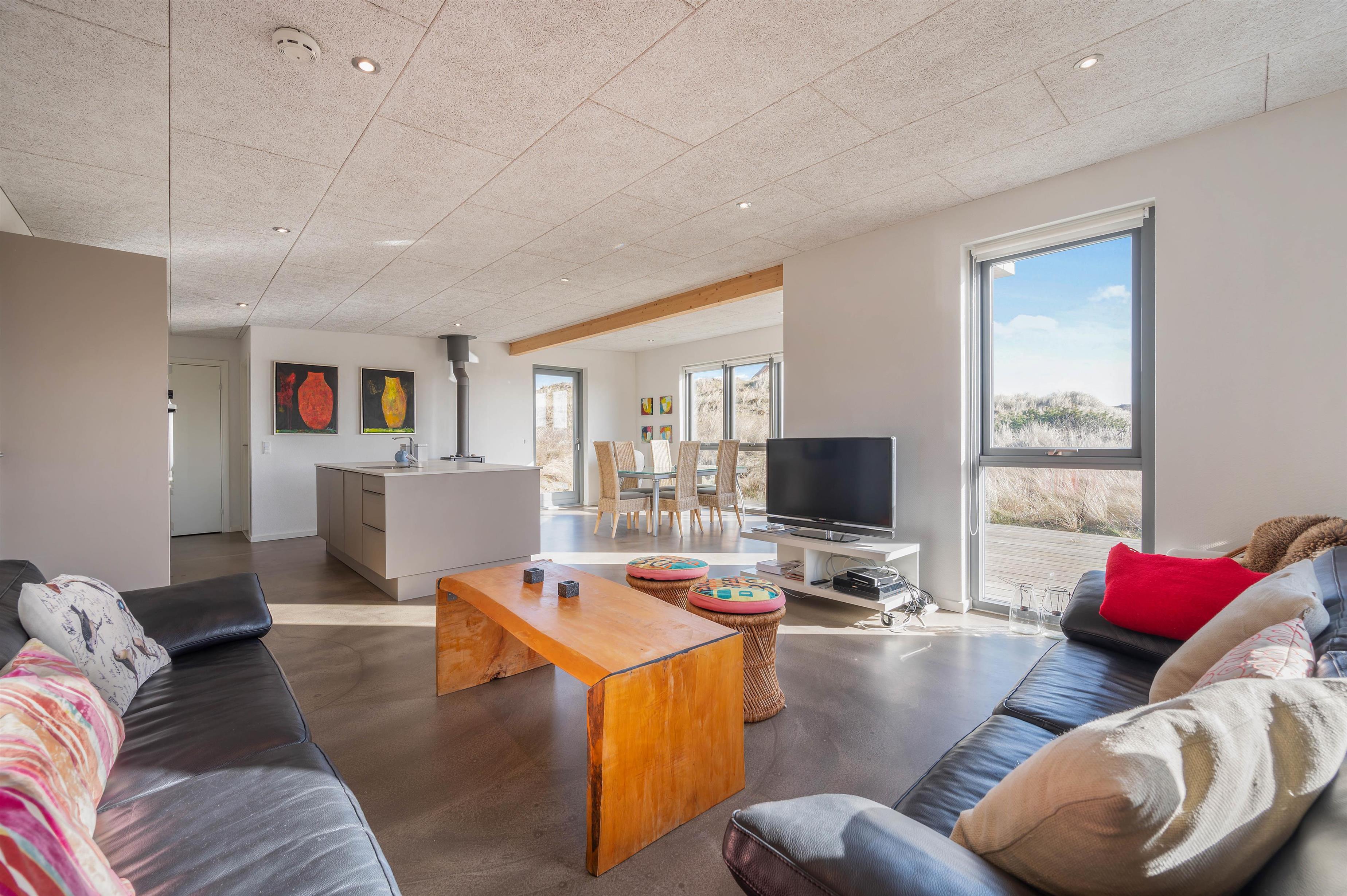 Hvis I er på jagt efter et lækkert, strandnært sommerhus midt i de vestjyske klitter, er I landet det helt rigtige sted. For med kun 300 meter til Vesterhavet er sommerhuset fra 2017 en sand perle for alle med hang til frisk brusende bølger og smukke sandstrande. Sommerhuset på adressen Mågedalen 91 i Houvig har plads til 6 personer og 1 hund, og er det oplagte valg til familieferien.