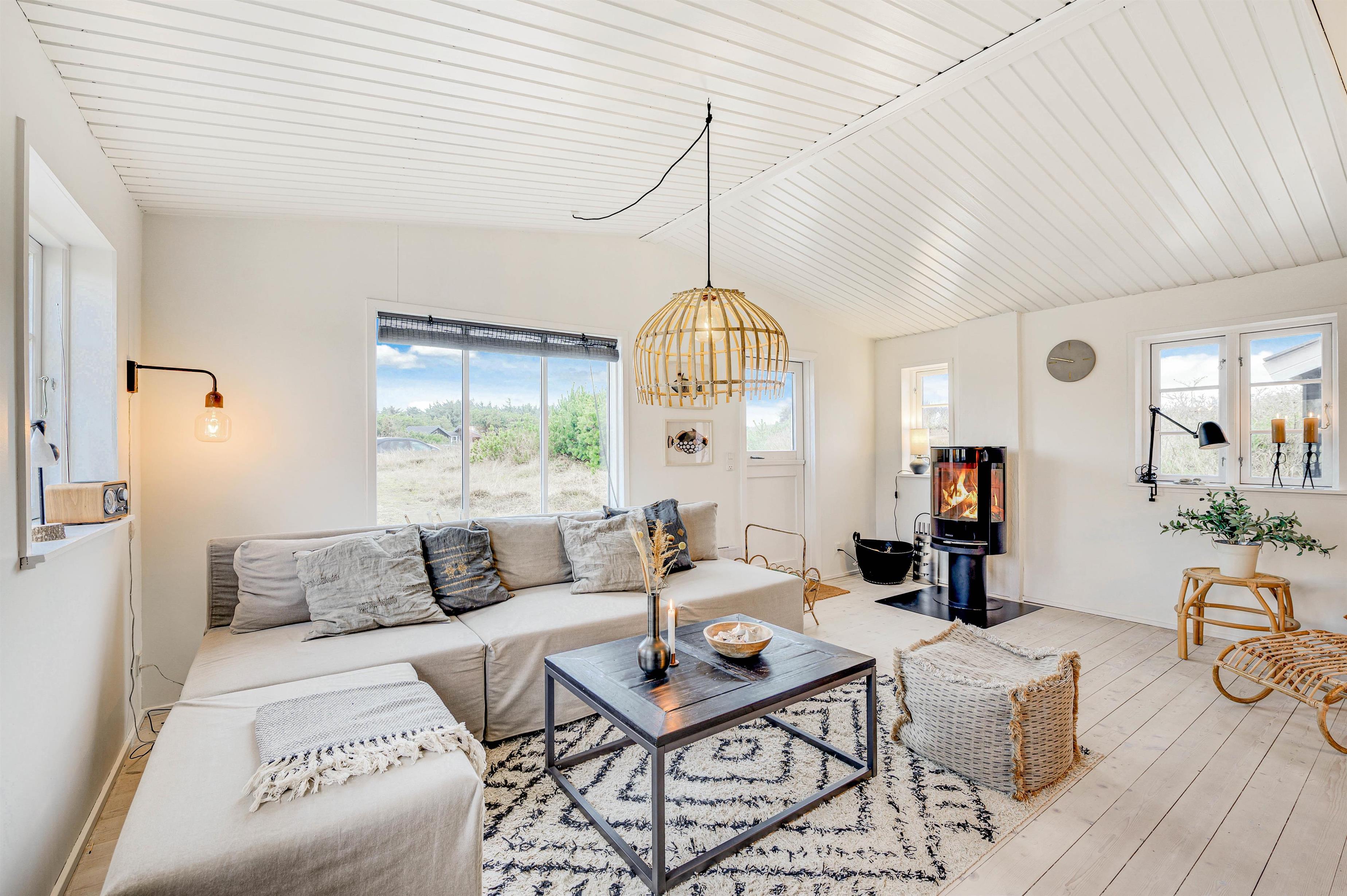 Dette charmerende og klassiske sommerhus på Lærkedalen 26 byder på ægte sommerhusstemning, så snart I træder ind ad døren til feriehuset. Her er fyldt med mange små og fine detaljer og den lyse og kvalitetsbevidste indretning gør sommerhuset hyggeligt og tilbyder nok plads til den lille familie med hund. Sommerhuset er indrettet i klassisk dansk stil og byder på mange hyggestunder foran brændeovnen. Et alternativ til brændeovnen er varmepumpen, som sørger for en mere energivenlig opvarmning af hele huset.