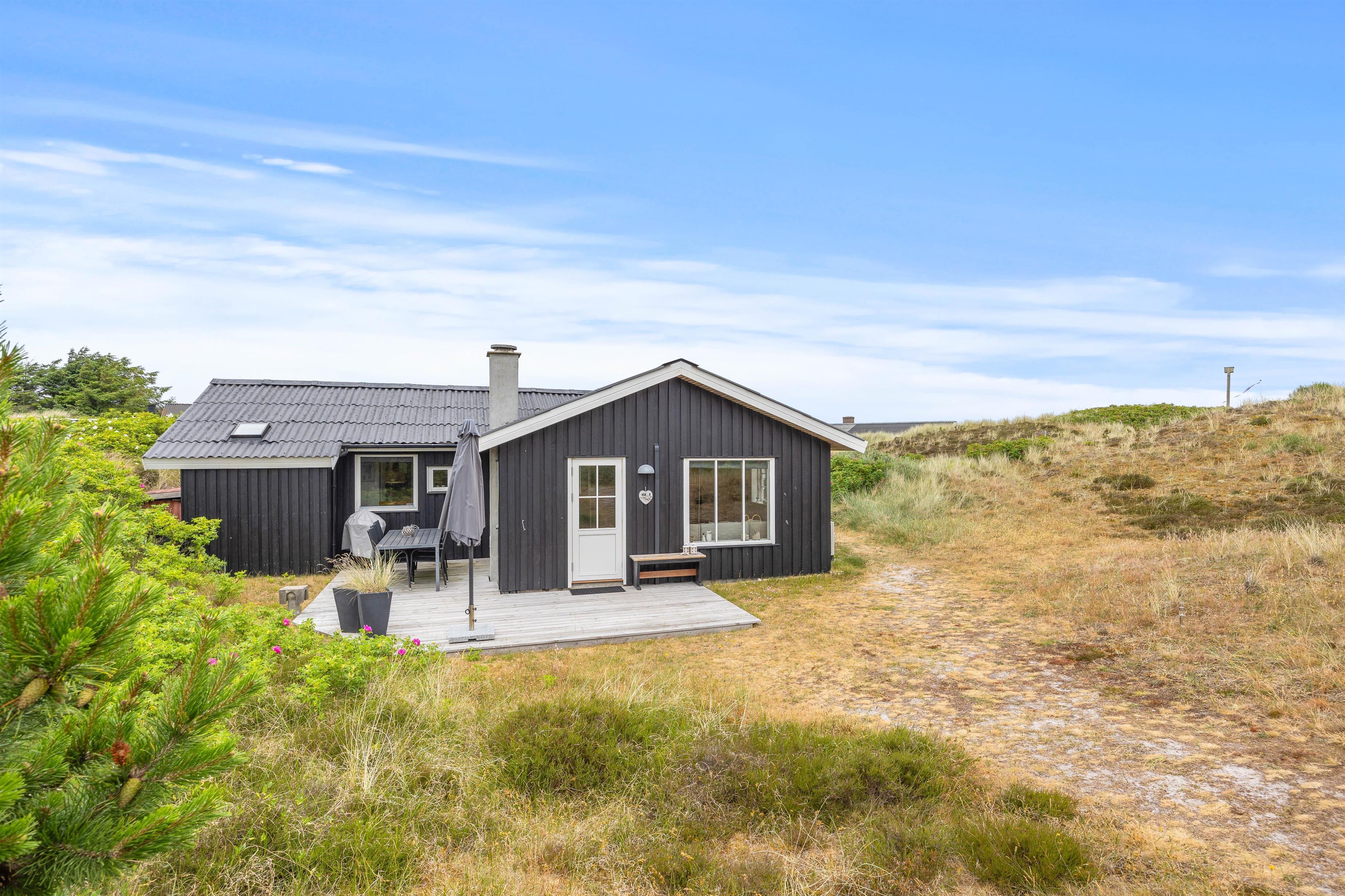 Indhyllet i hede- og klitlandskab kan I nyde et herligt måltid mad fra grillen og afslutte dagen med en lækker drink i hånden, mens solen går ned. Med kun 400 meter til stranden er beliggenheden ideel til mange udflugter rundt i naturen i Houvig og omegn. Det er nærliggende at gå en tur fra ferieadressen på Lærkedalen 26 til Søndervig, hvor I kan besøge de små butikker, cafeer osv. Også på cykel kan I hurtigt nå Søndervigs centrum.