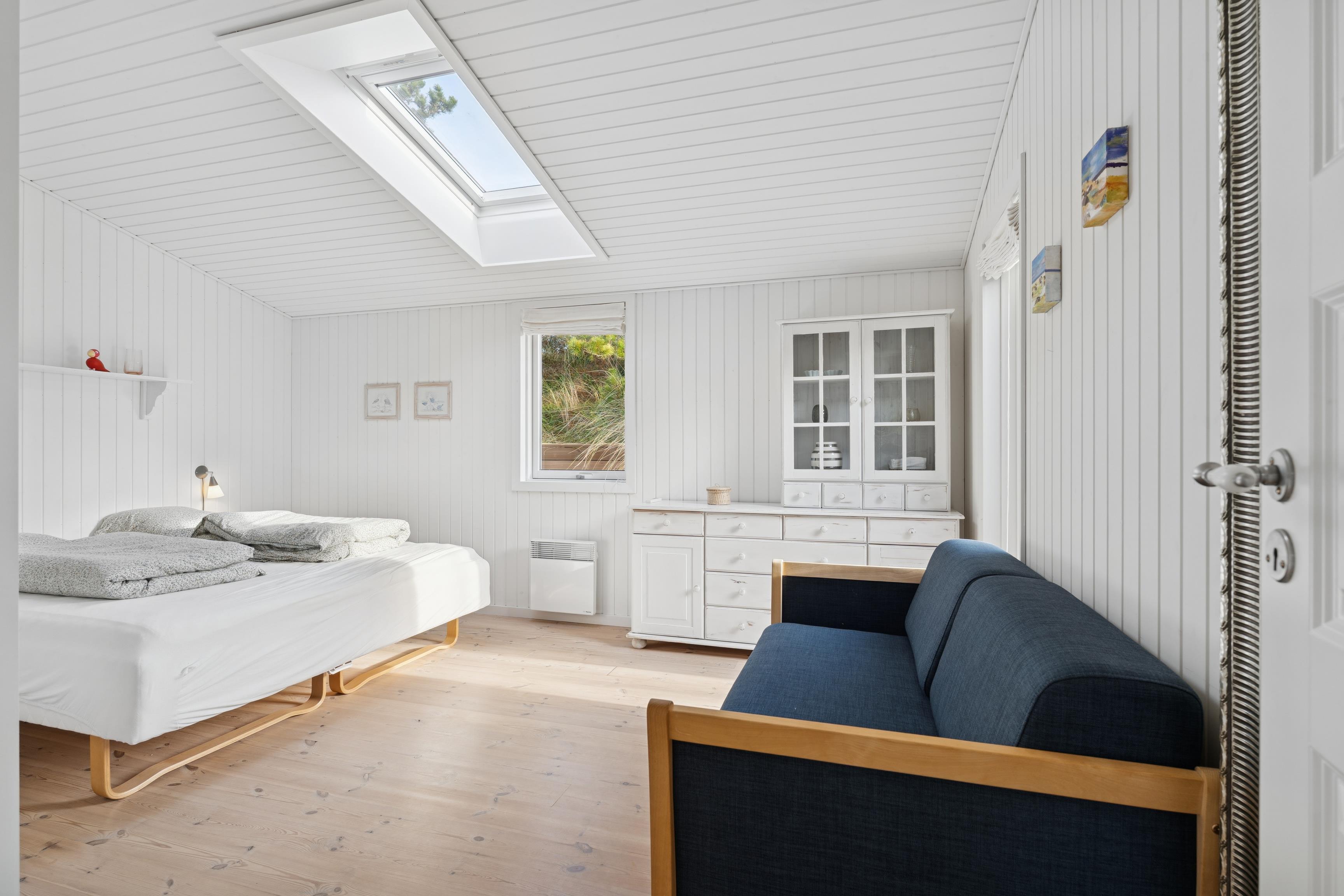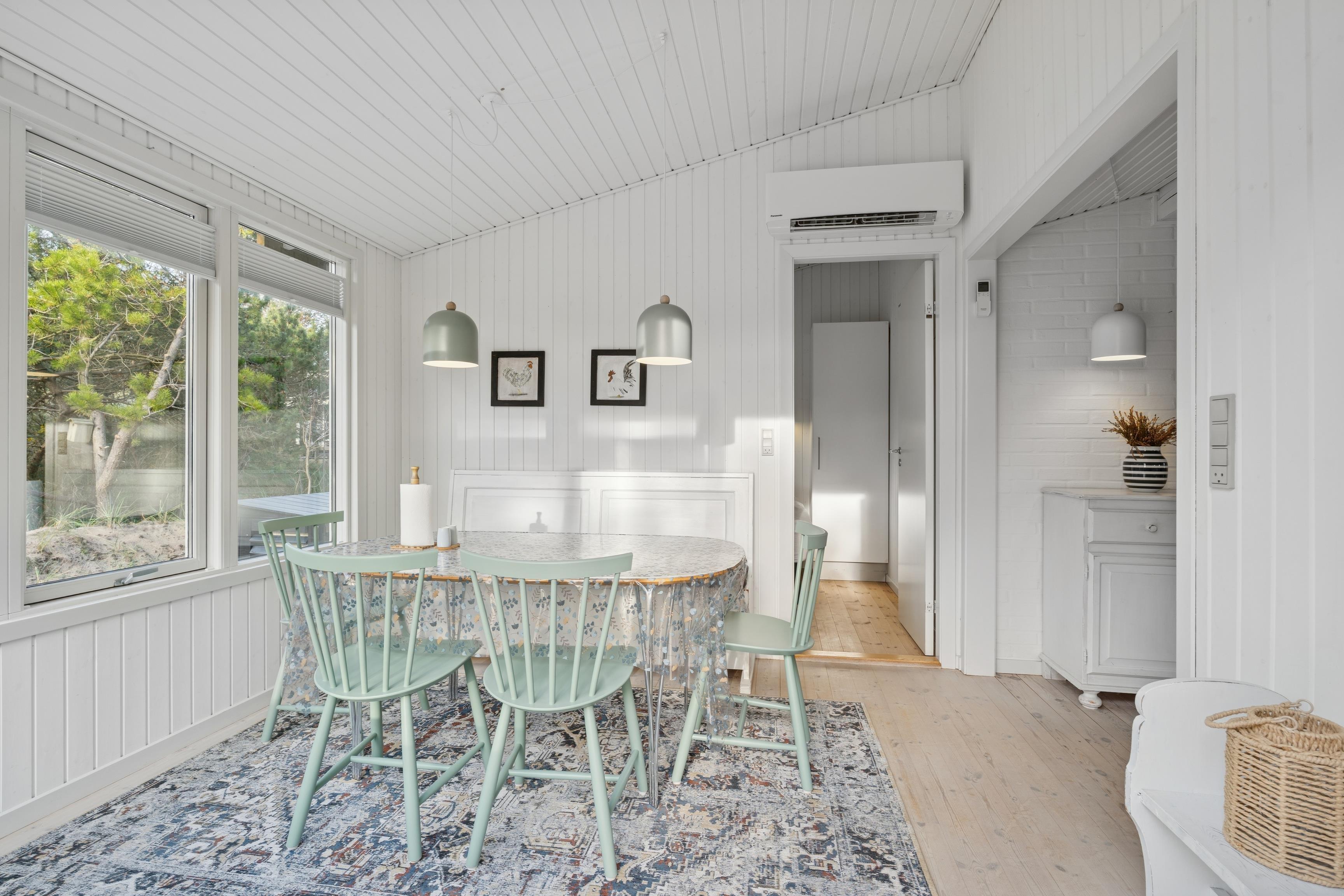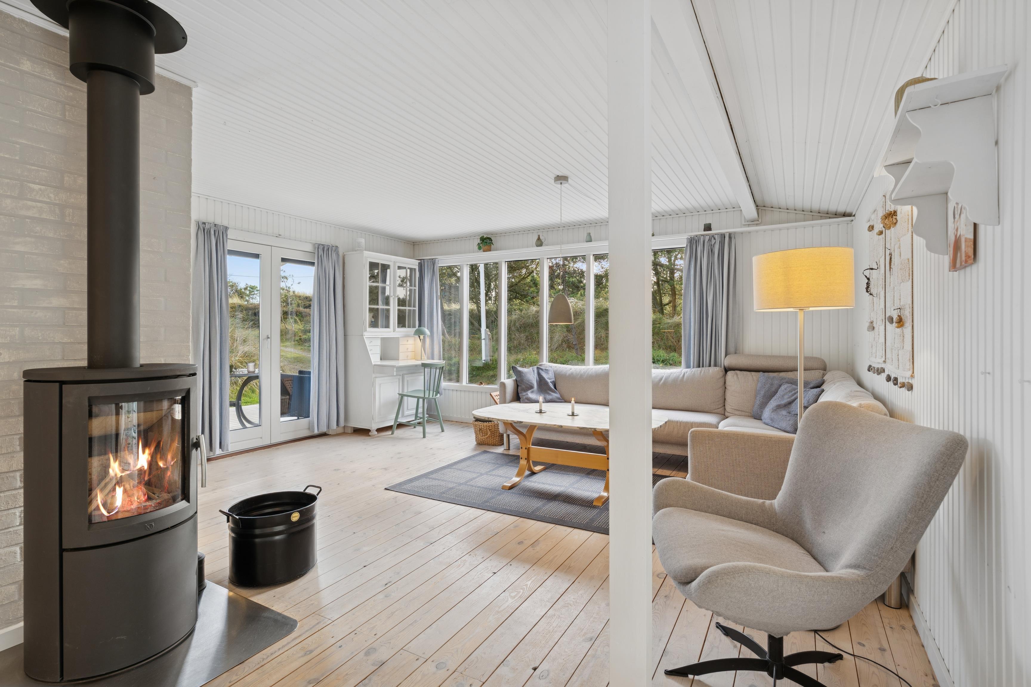 Sommerhuset på Sneppedalen 9 er ideelt til en familie eller et par, der ønsker en afslappet ferie i naturskønne omgivelser. Indretningen er lys, venlig og fuld af personlighed – her er der tænkt på hyggen i hver en detalje.